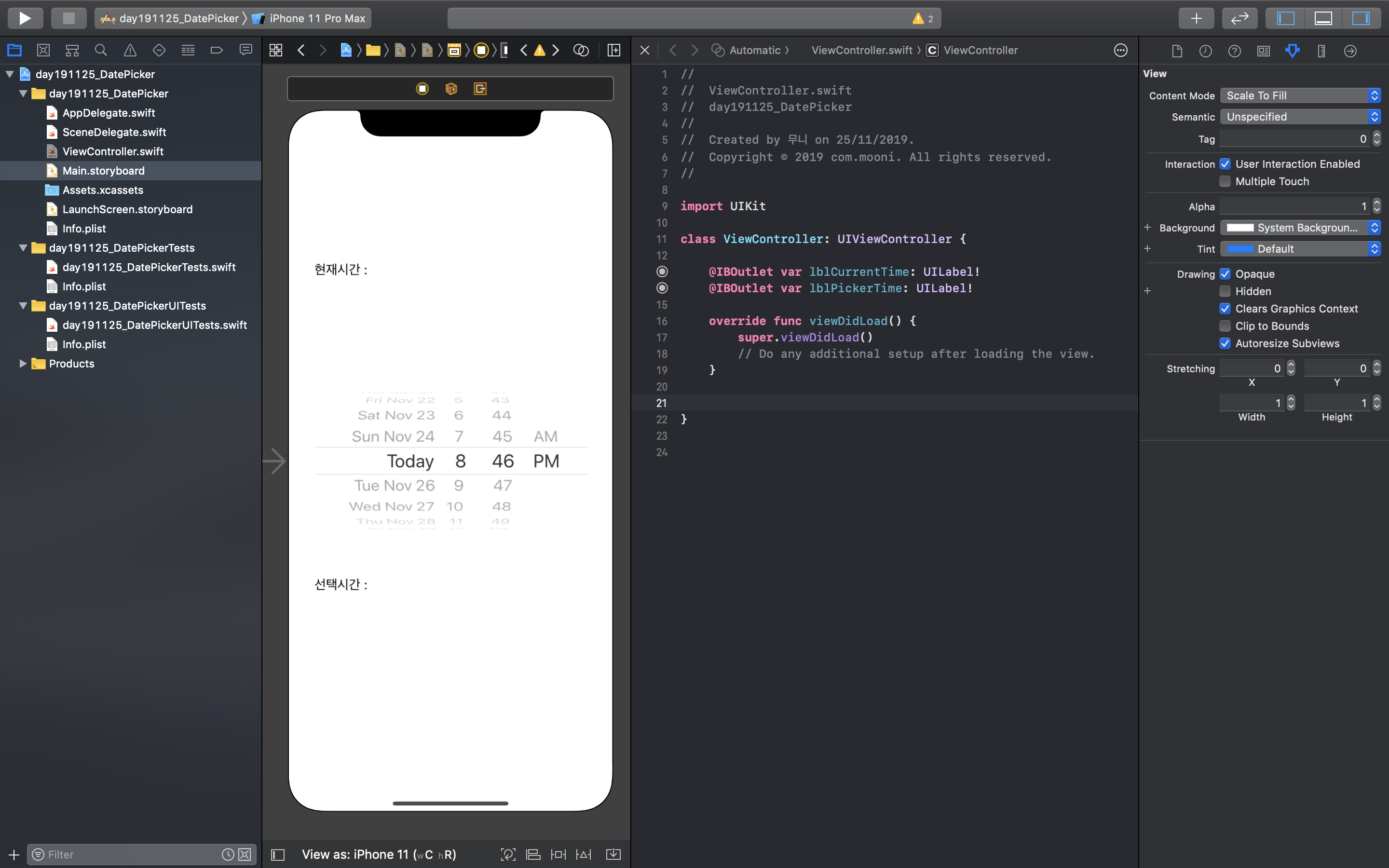 moonibot 2019. 11. 25. 21:55Xcode(버전11.2.1)를 이용하여 데이트 피커(Date Picker) 앱을 만든다:)