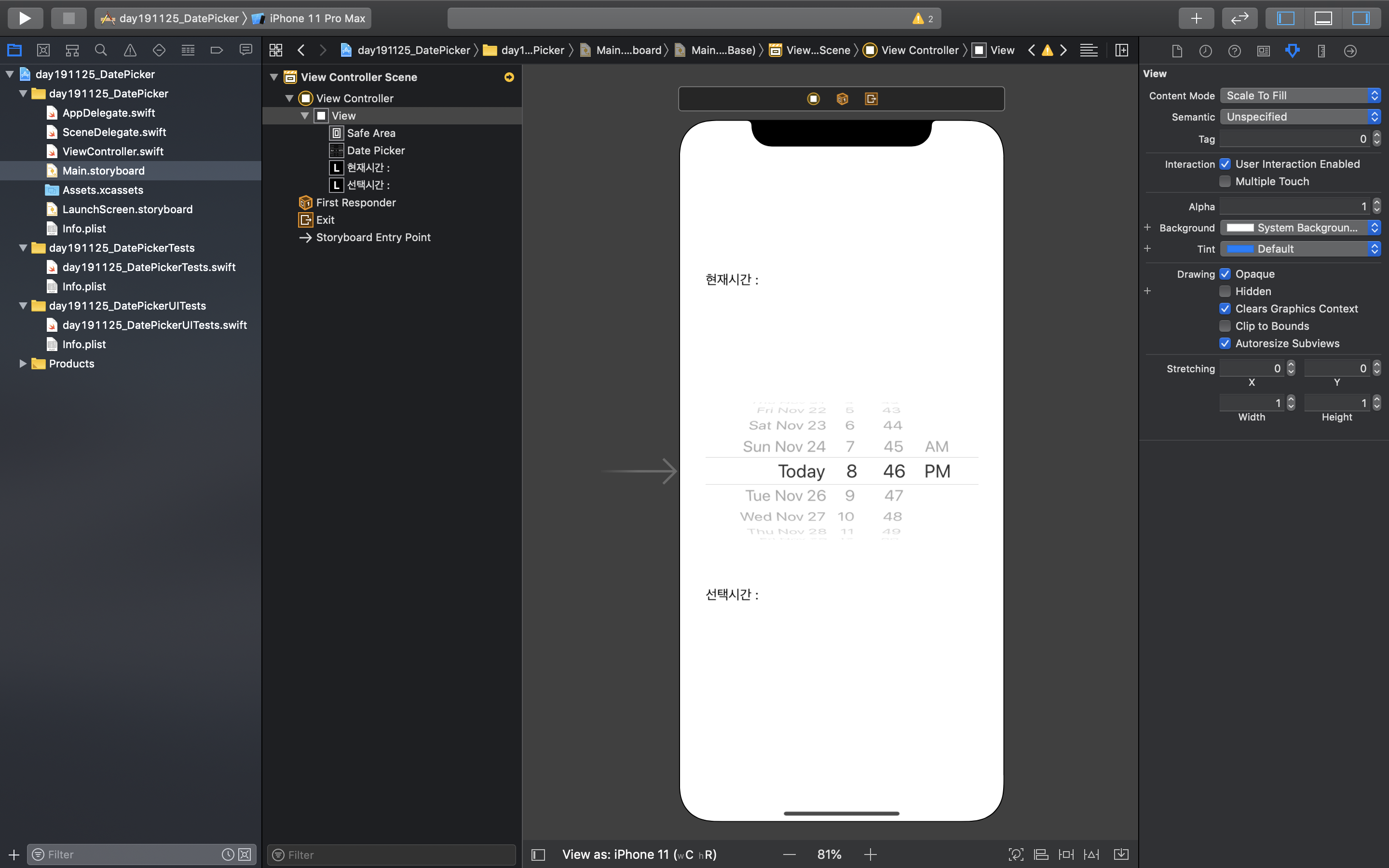 - 스토리보드 데이트 피커(Date Picker) 앱 화면 구성