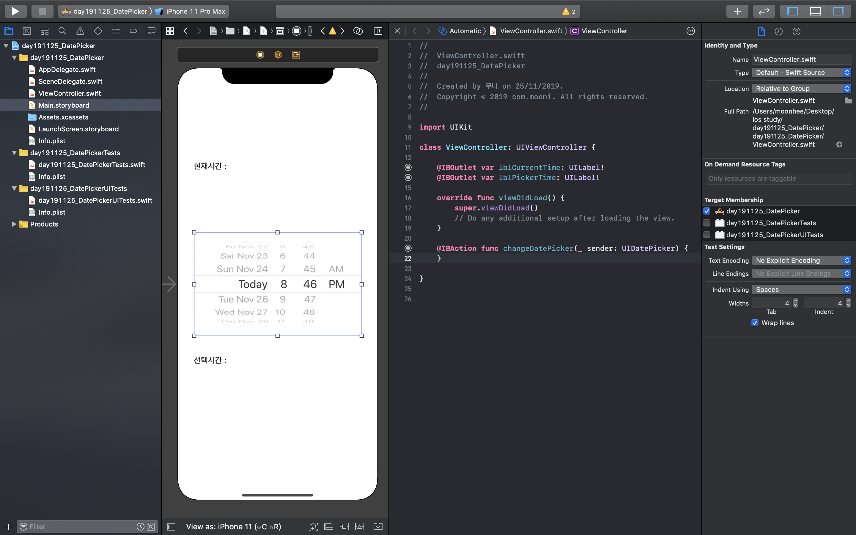 @IBOutlet var lblPickerTime: UILabel! // 선택시간 라벨의 아웃렛 변수