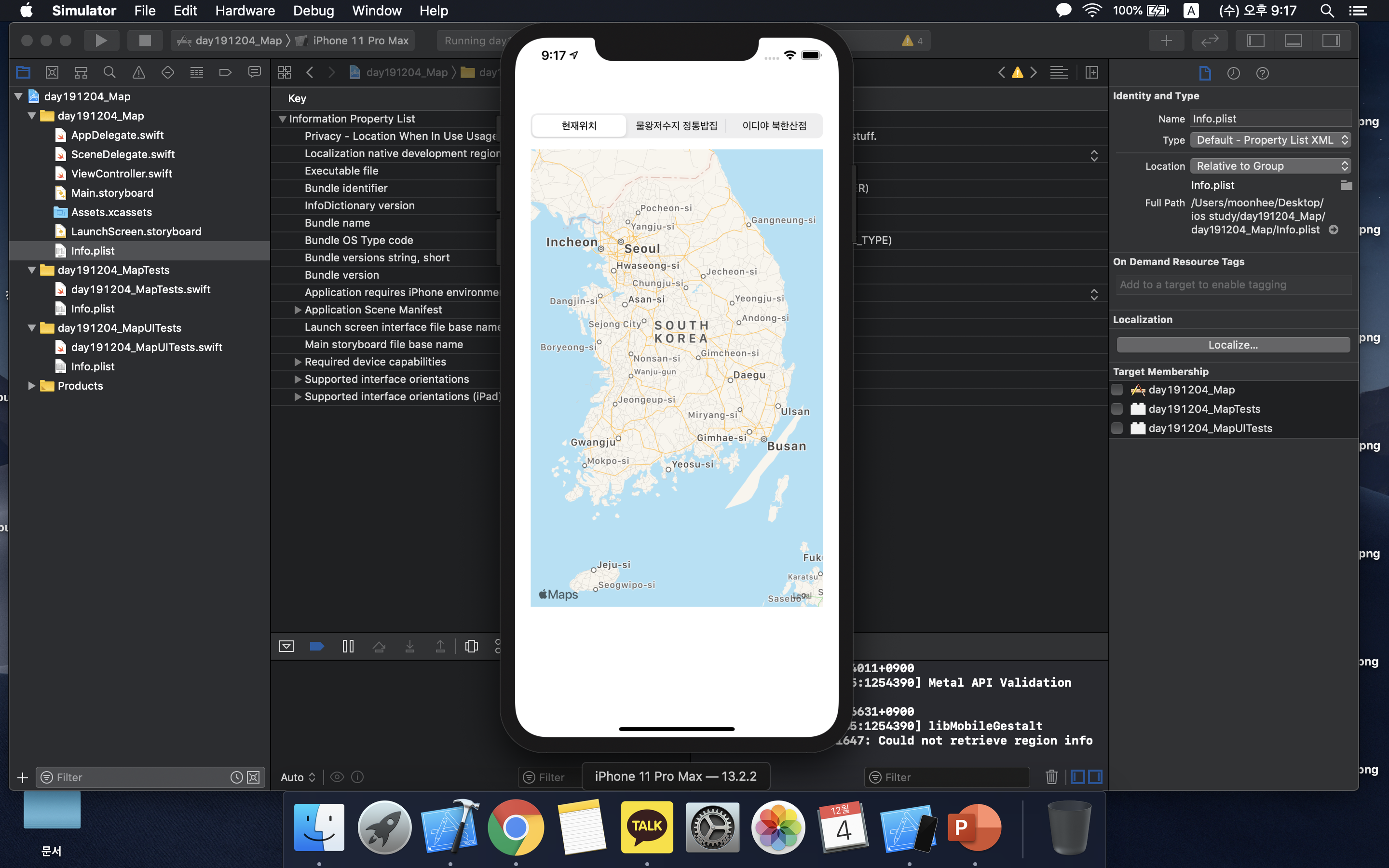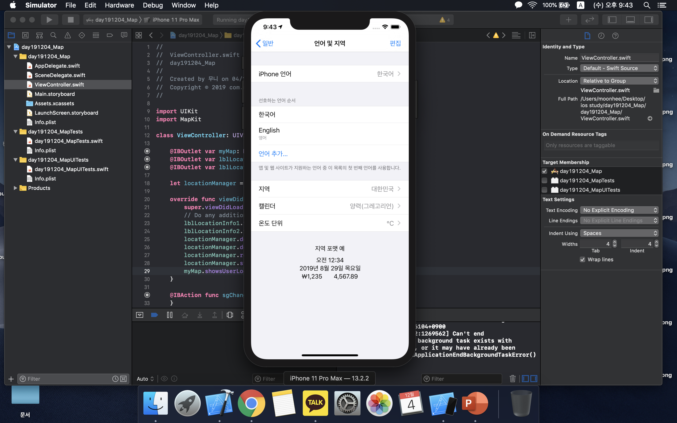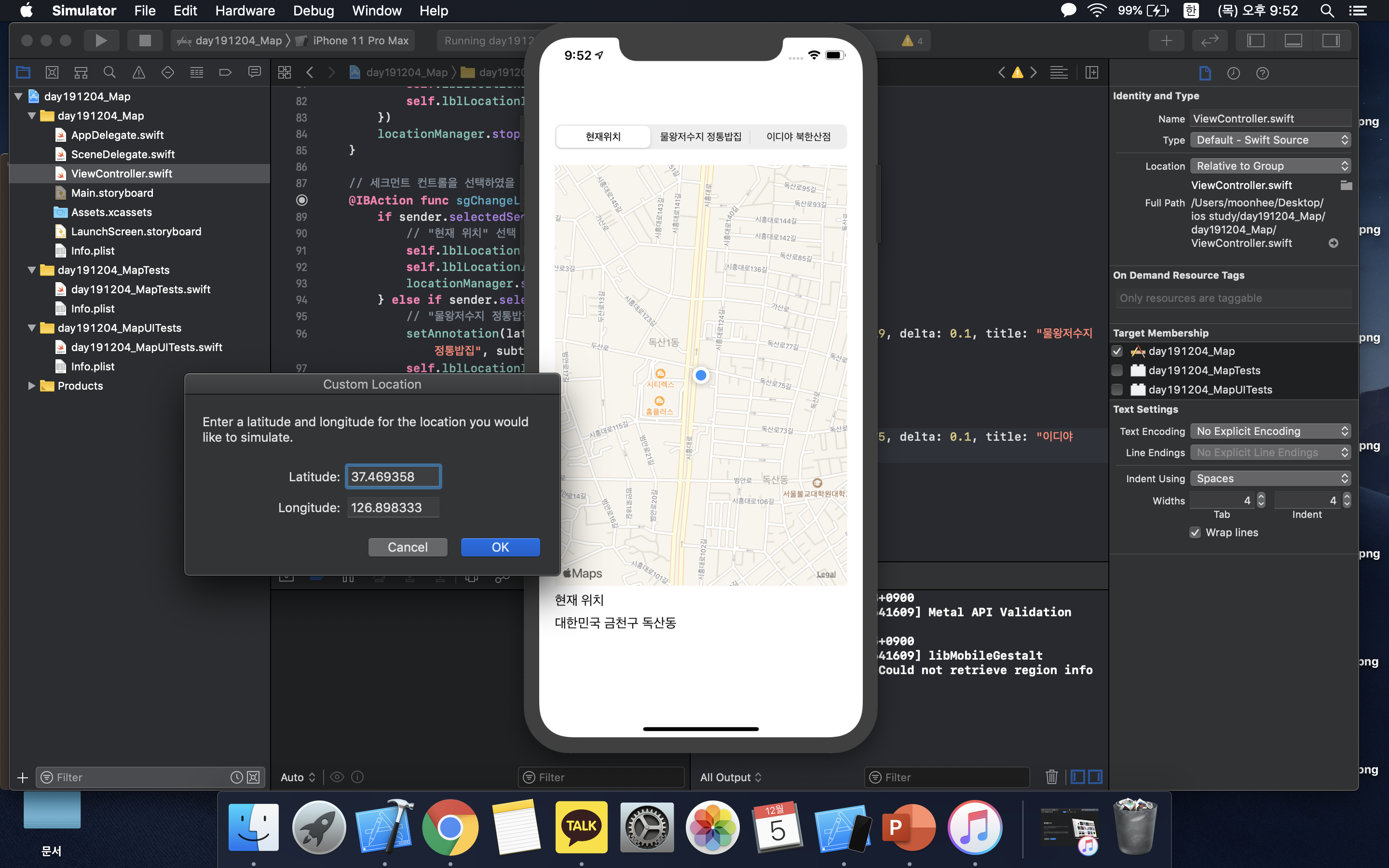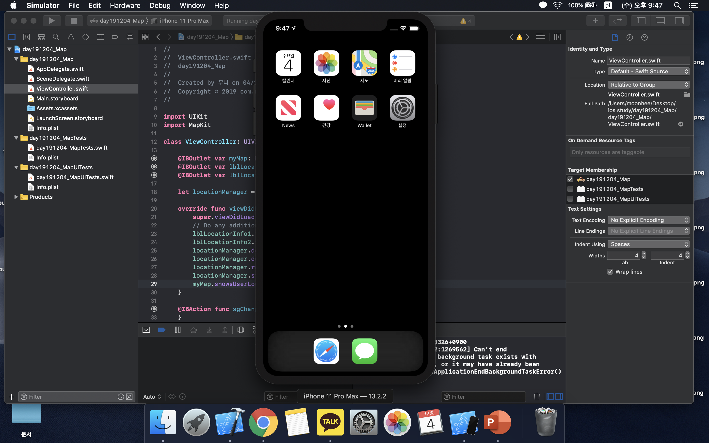 Xcode(버전11.2.1)를 이용하여 맵 뷰(Map View) 지도 앱을 만든다:)