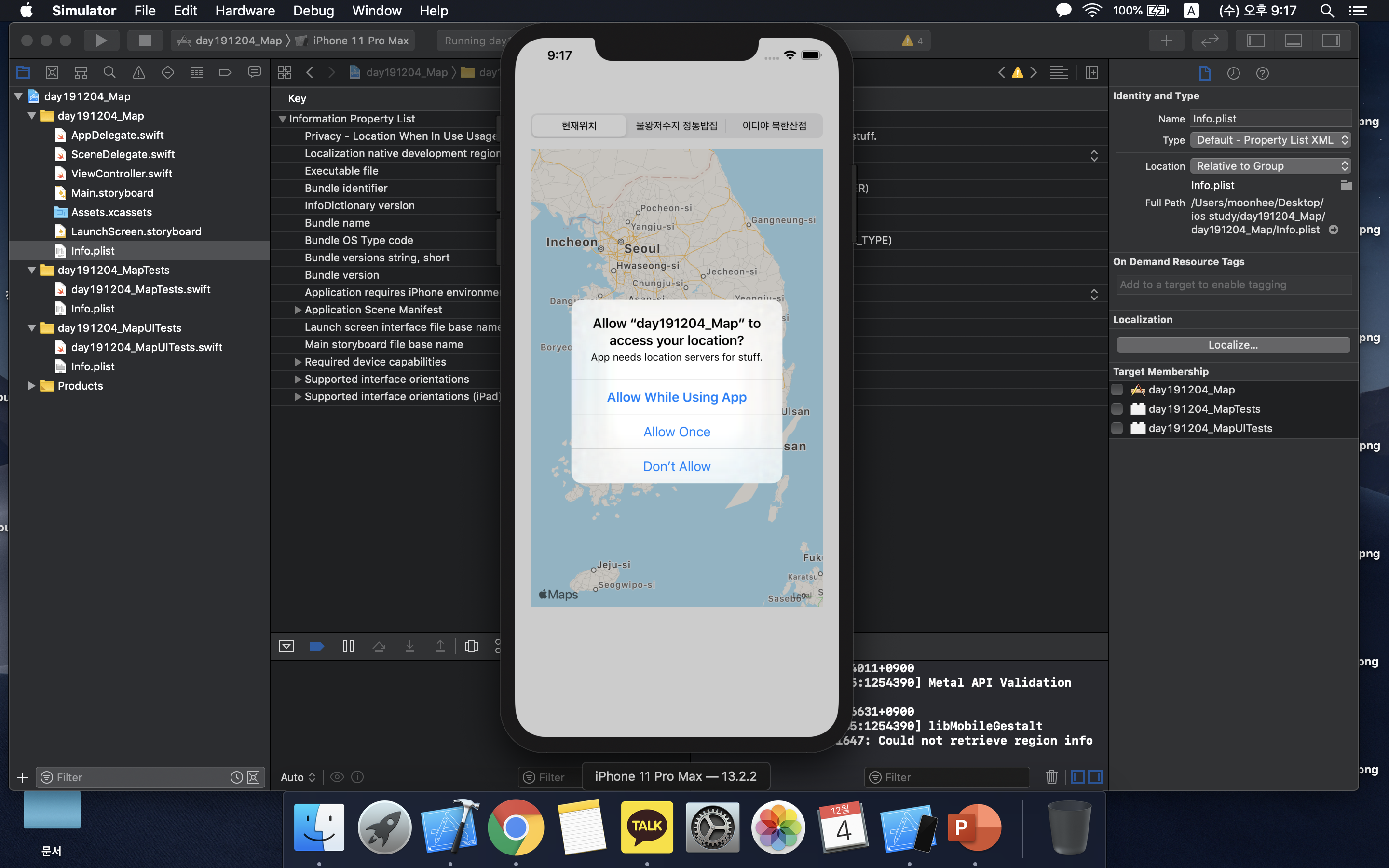Allow while Using App을 눌러 앱을 사용하는 동안 위치 접근을 허용했다.