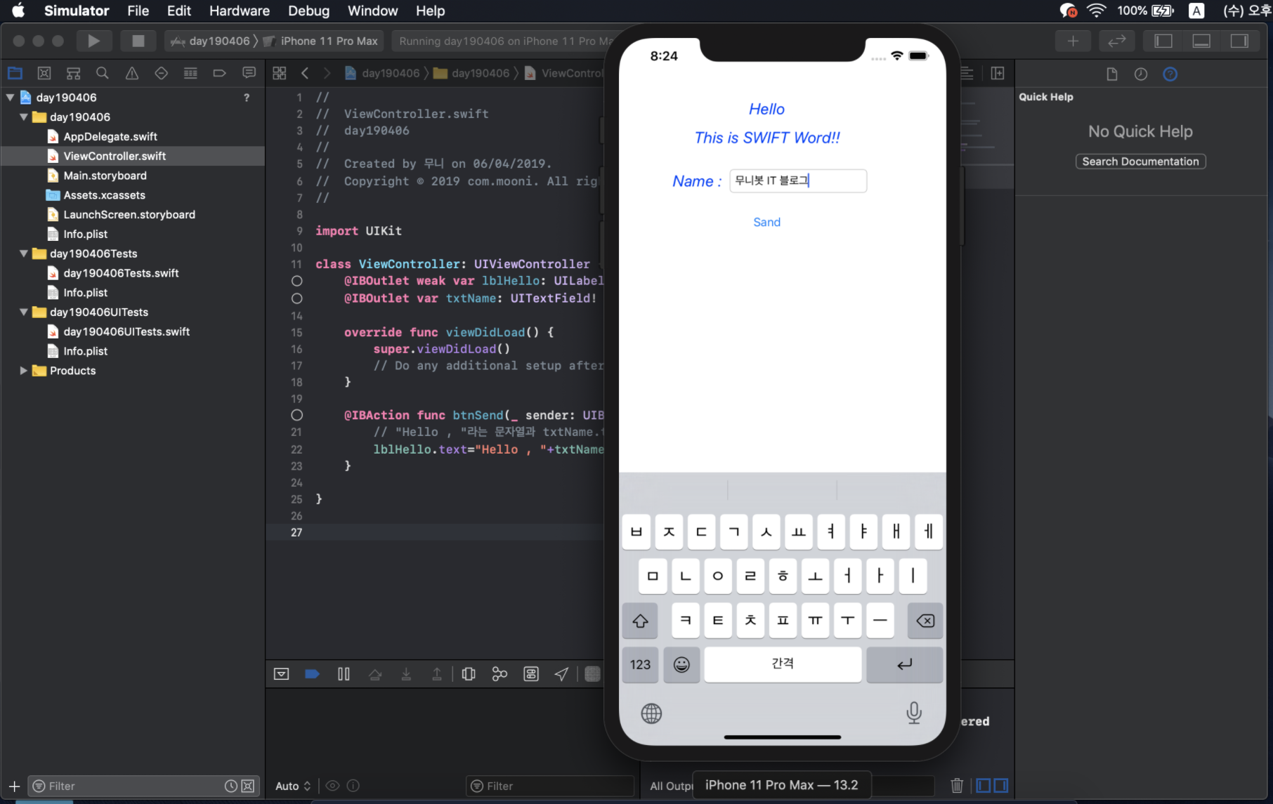 Xcode(버전11.2)를 이용하여 Hello Word앱을 만든다:)