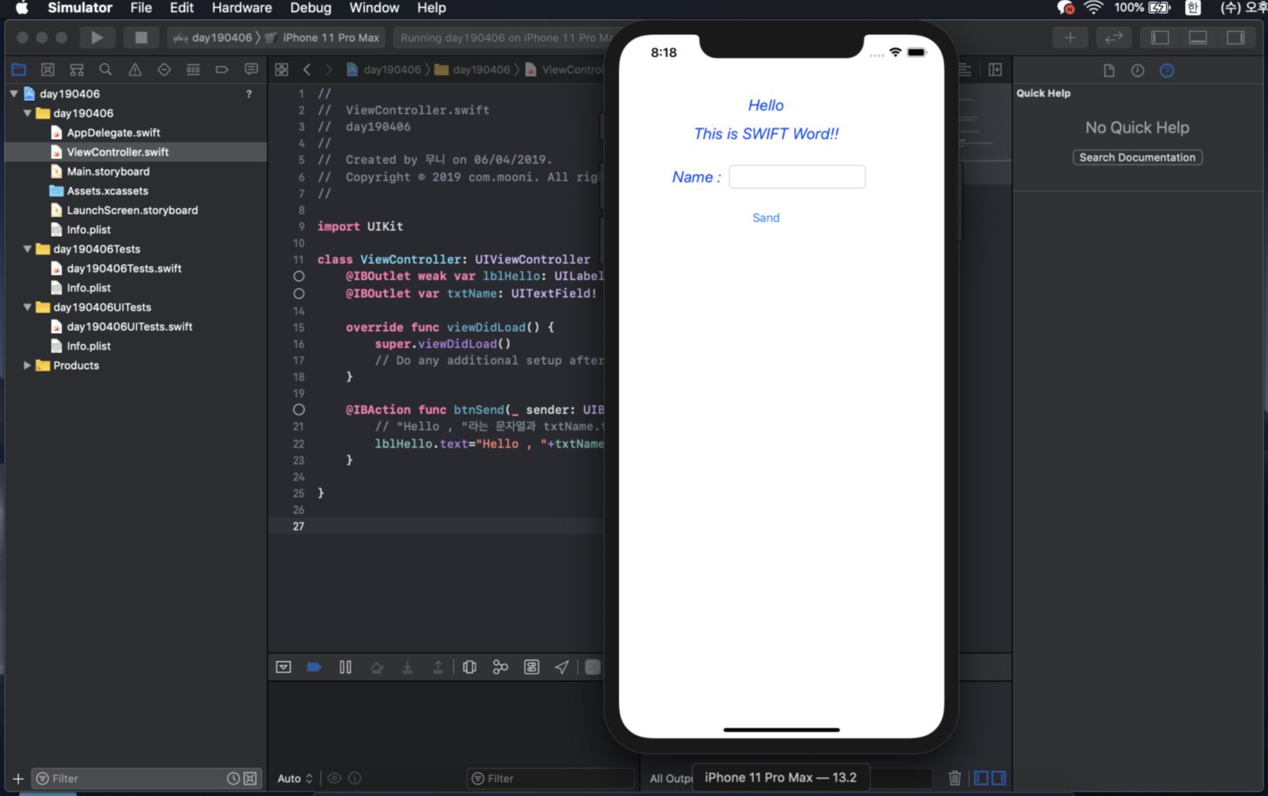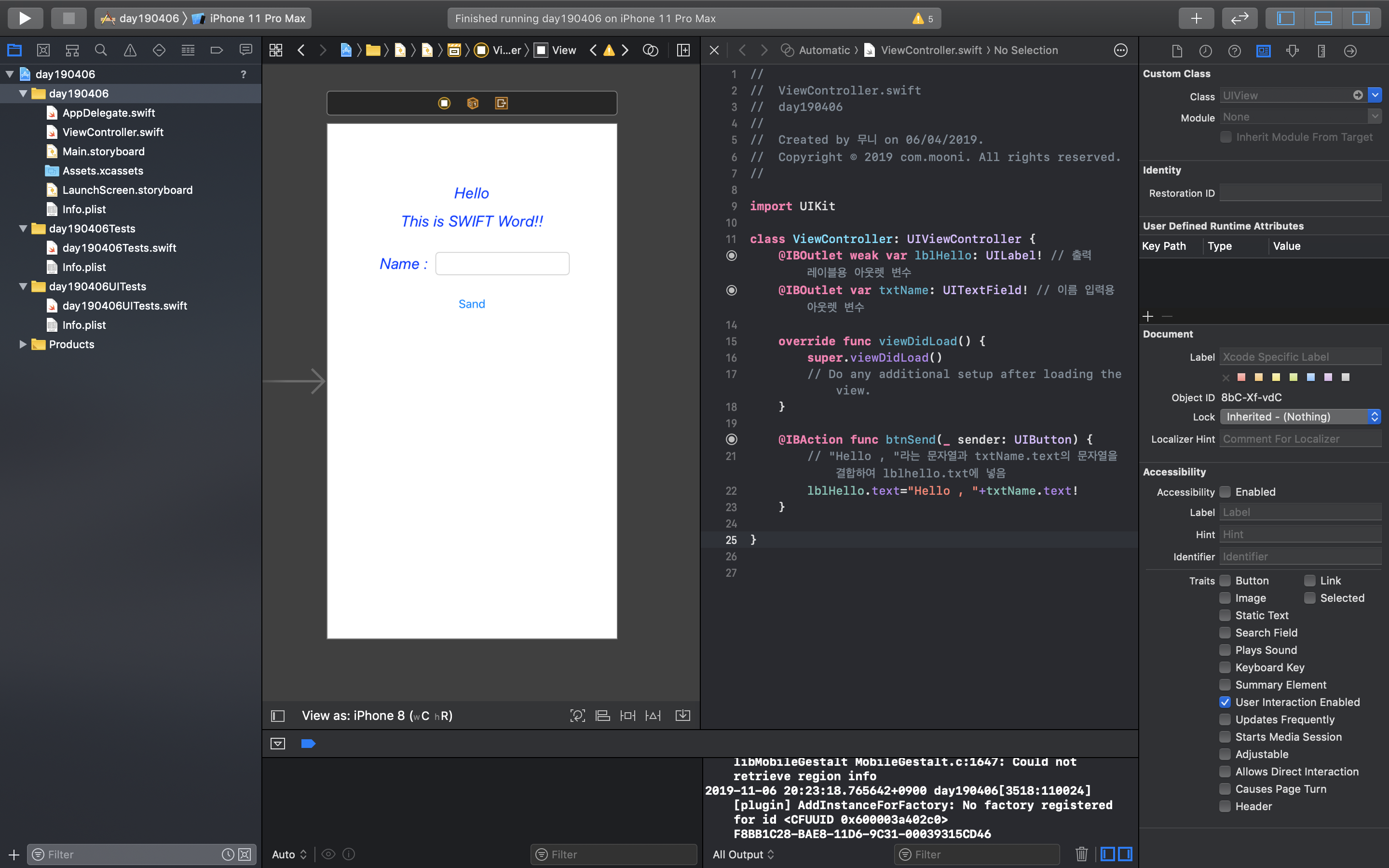 @IBOutlet var txtName: UITextField! // 이름 입력용 아웃렛 변수