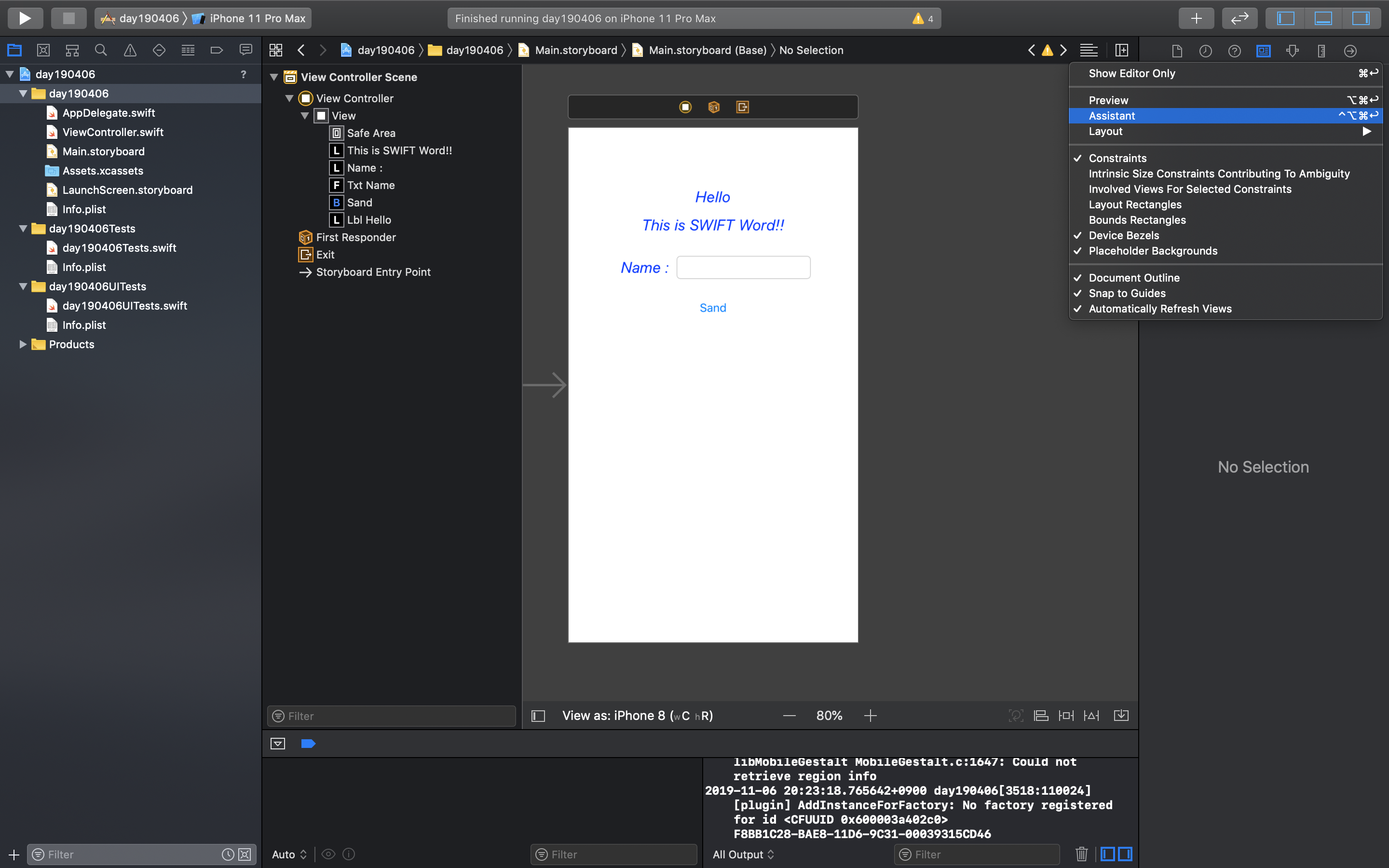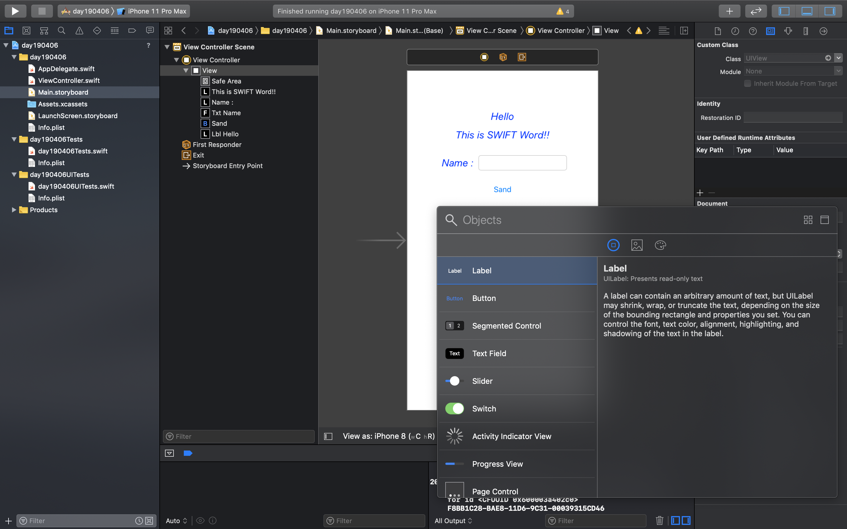 - 스토리보드로 Hello Word 앱 화면 구성
