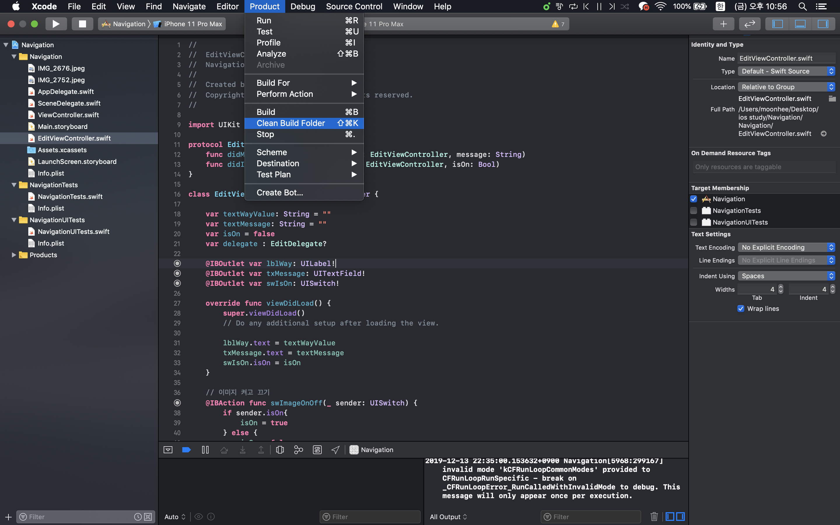 1) Product -> Clean Build Folder
