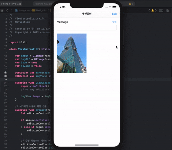 [iOS/swift] 내비게이션 컨트롤러 (Navigation Controller) 앱 v2, 이미지 확대 축소 기능 추가하기
