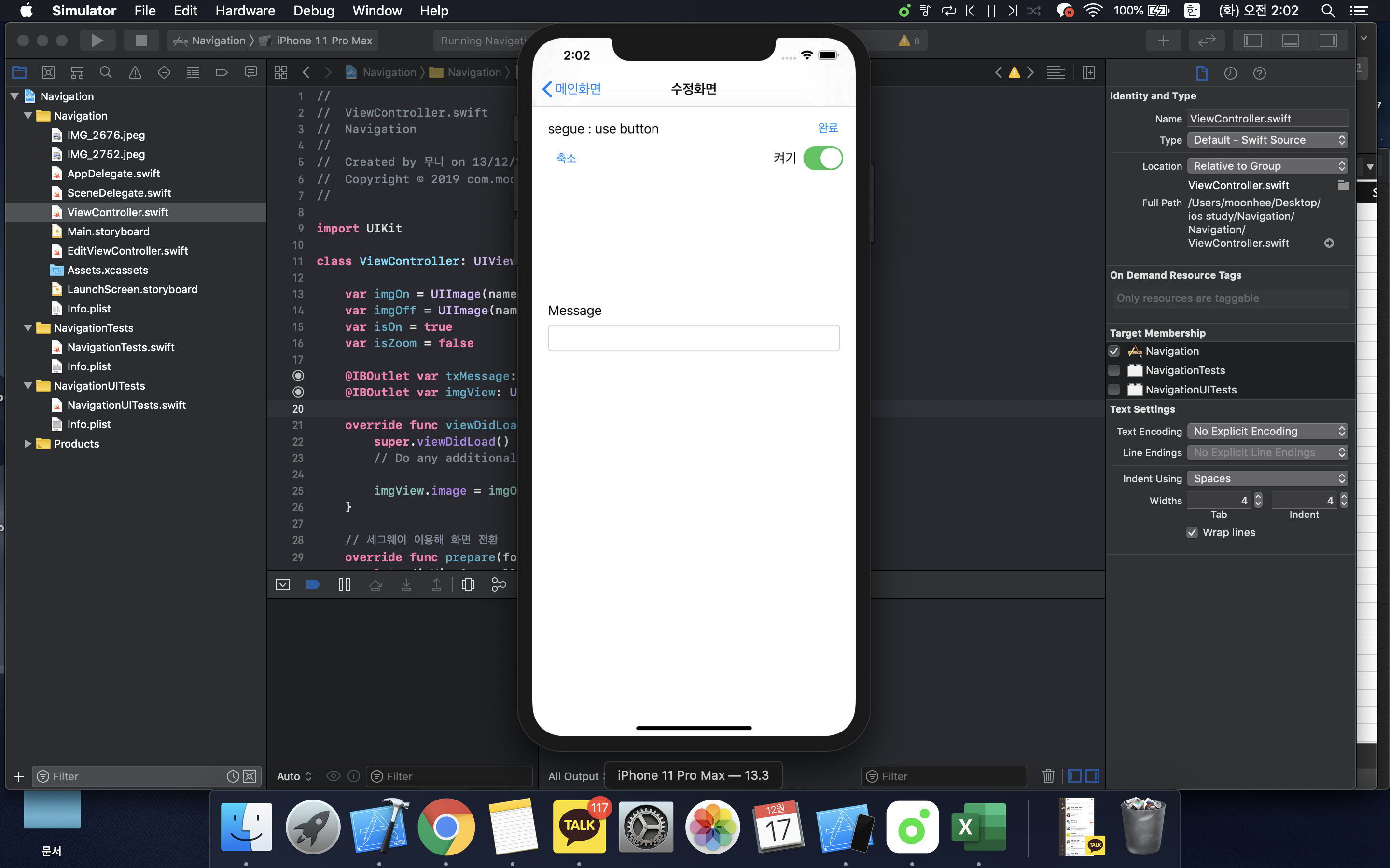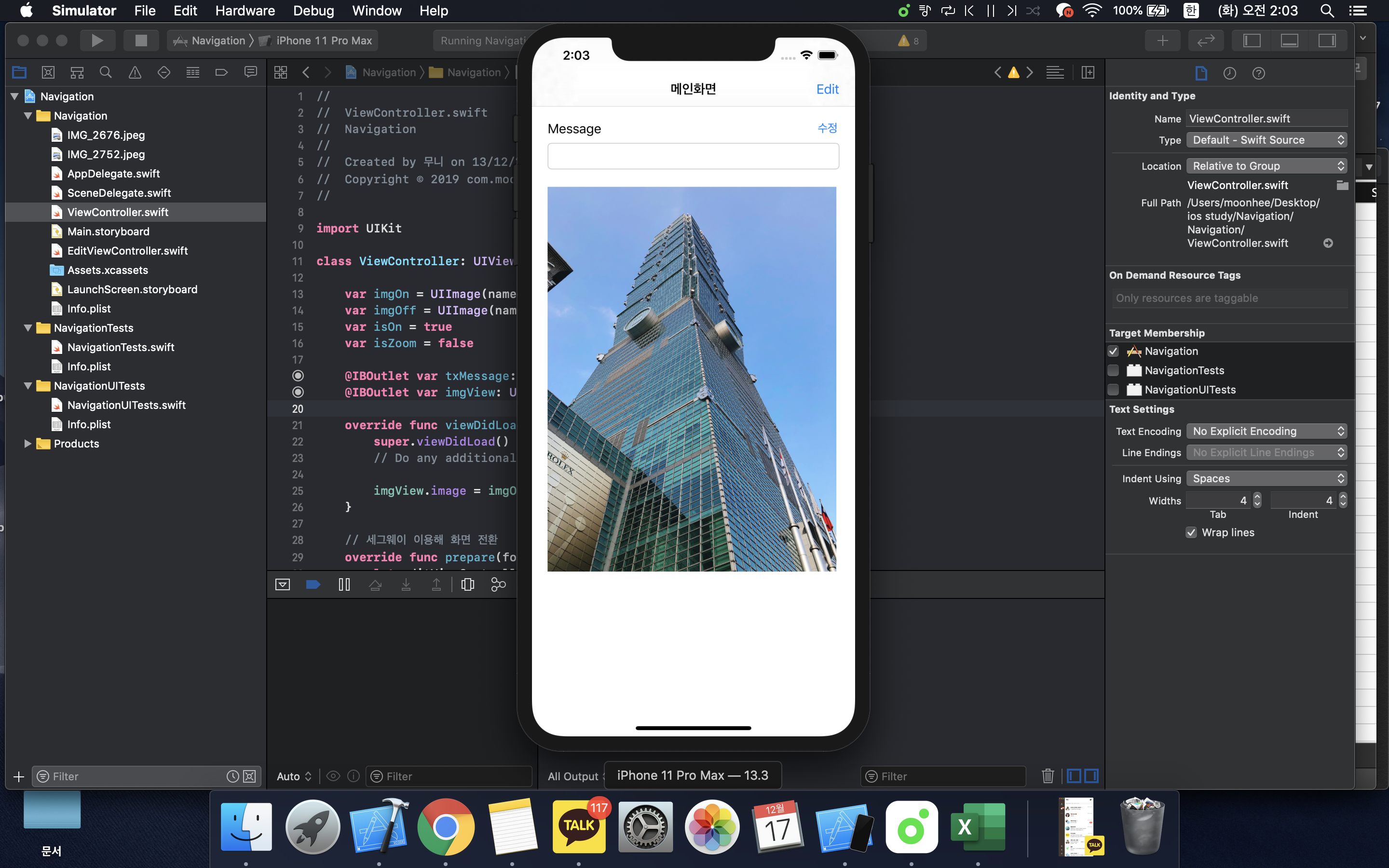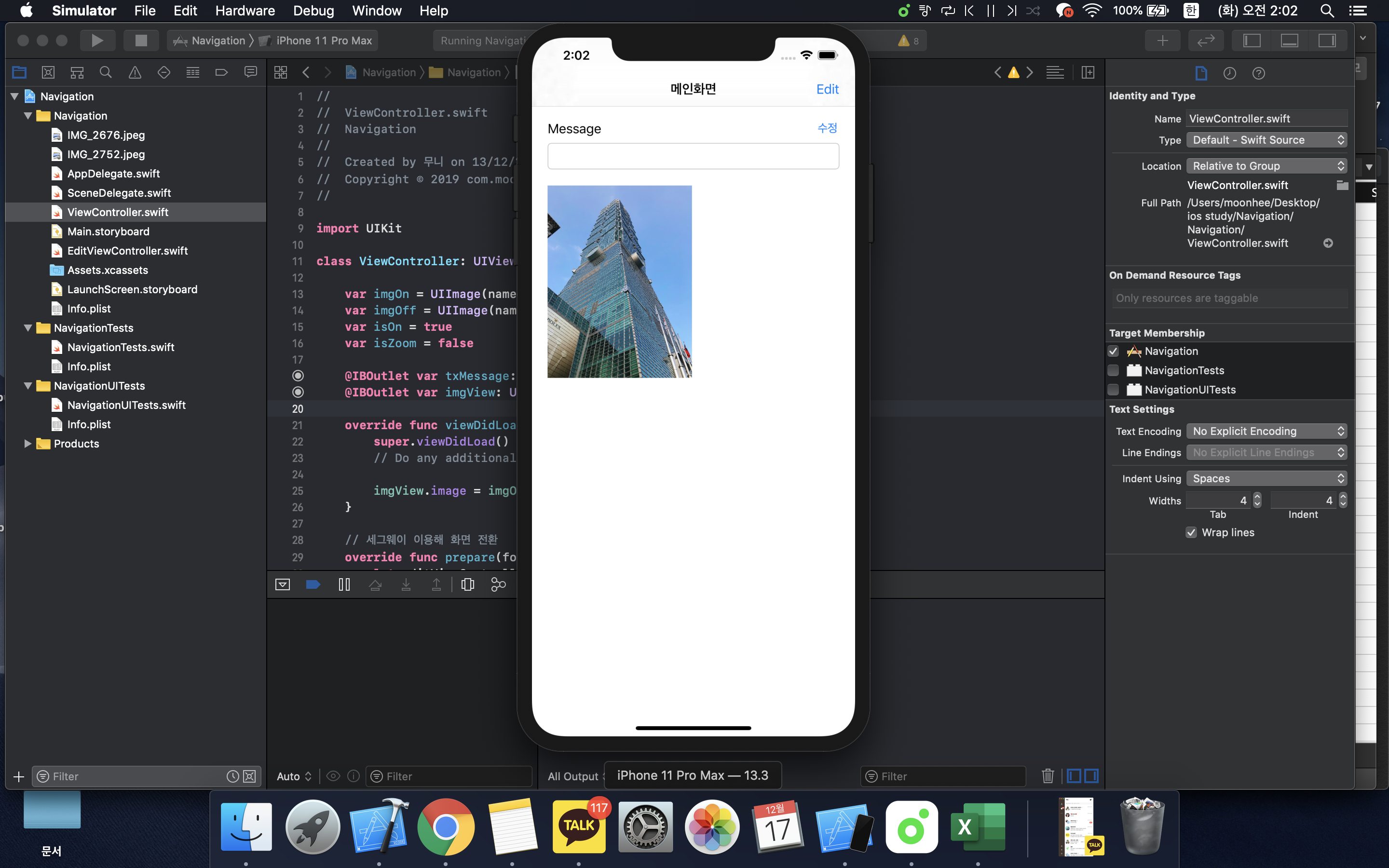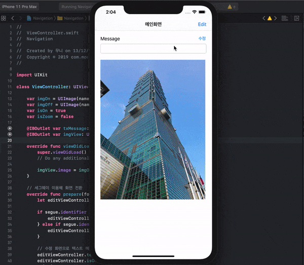 moonibot 2019. 12. 17. 02:13Xcode(버전11.3)를 이용하여 만든 내비게이션 컨트롤러(Navigation) 앱 v2을 만든다:)