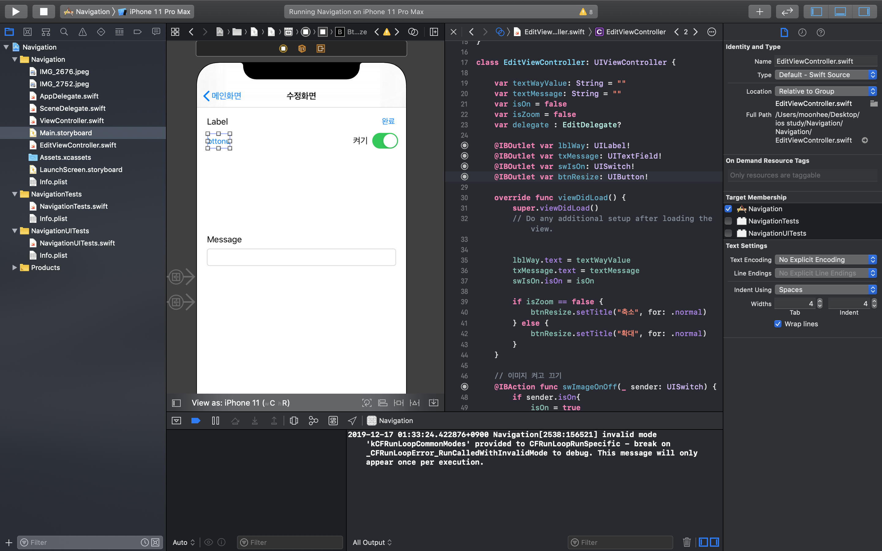 | [iOS/swift] Error - an internal error occurred. editing functionality may be limited. (0) | 2019.12.13 |