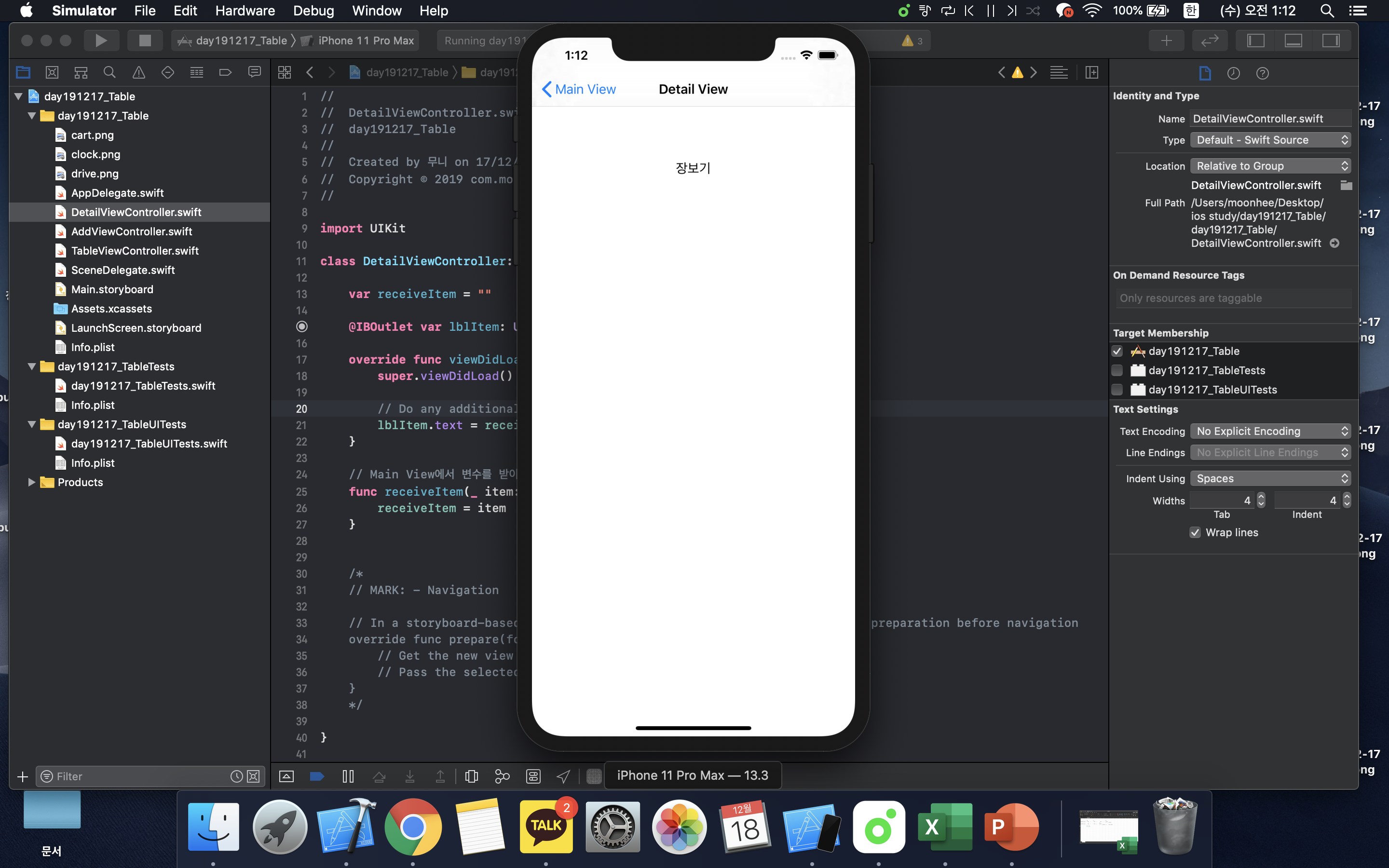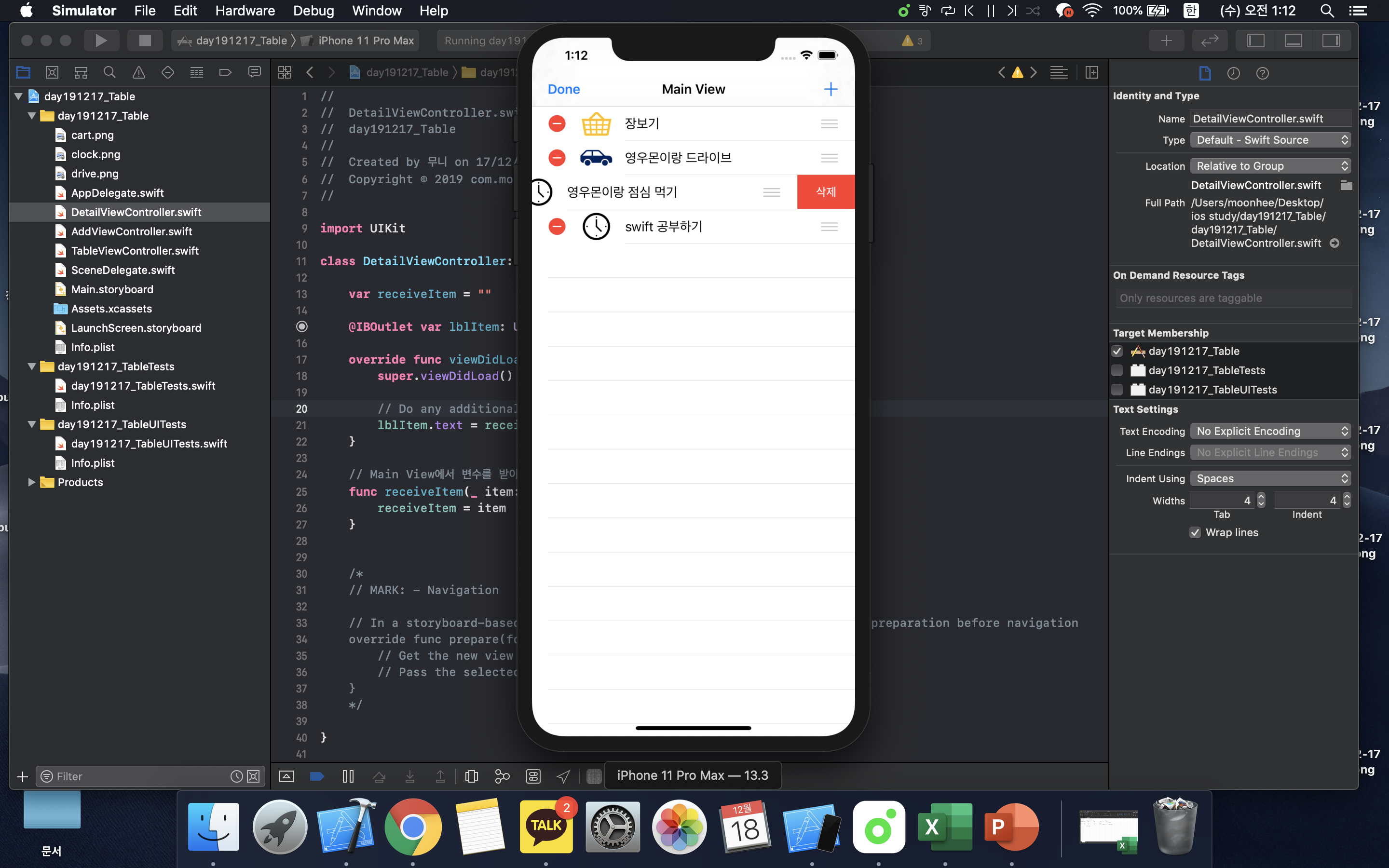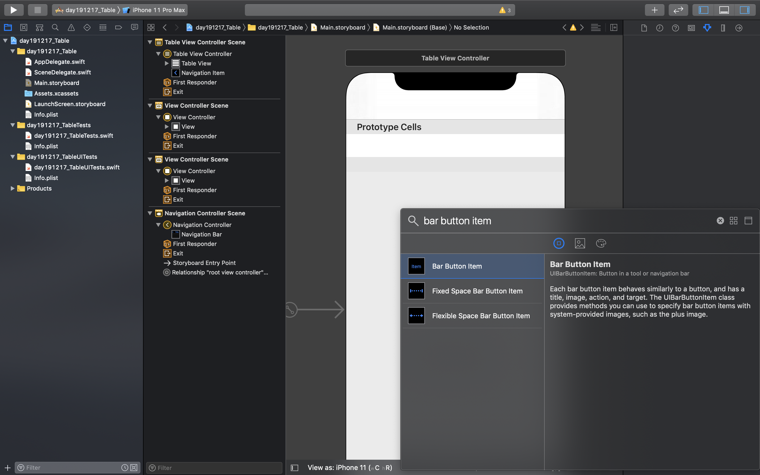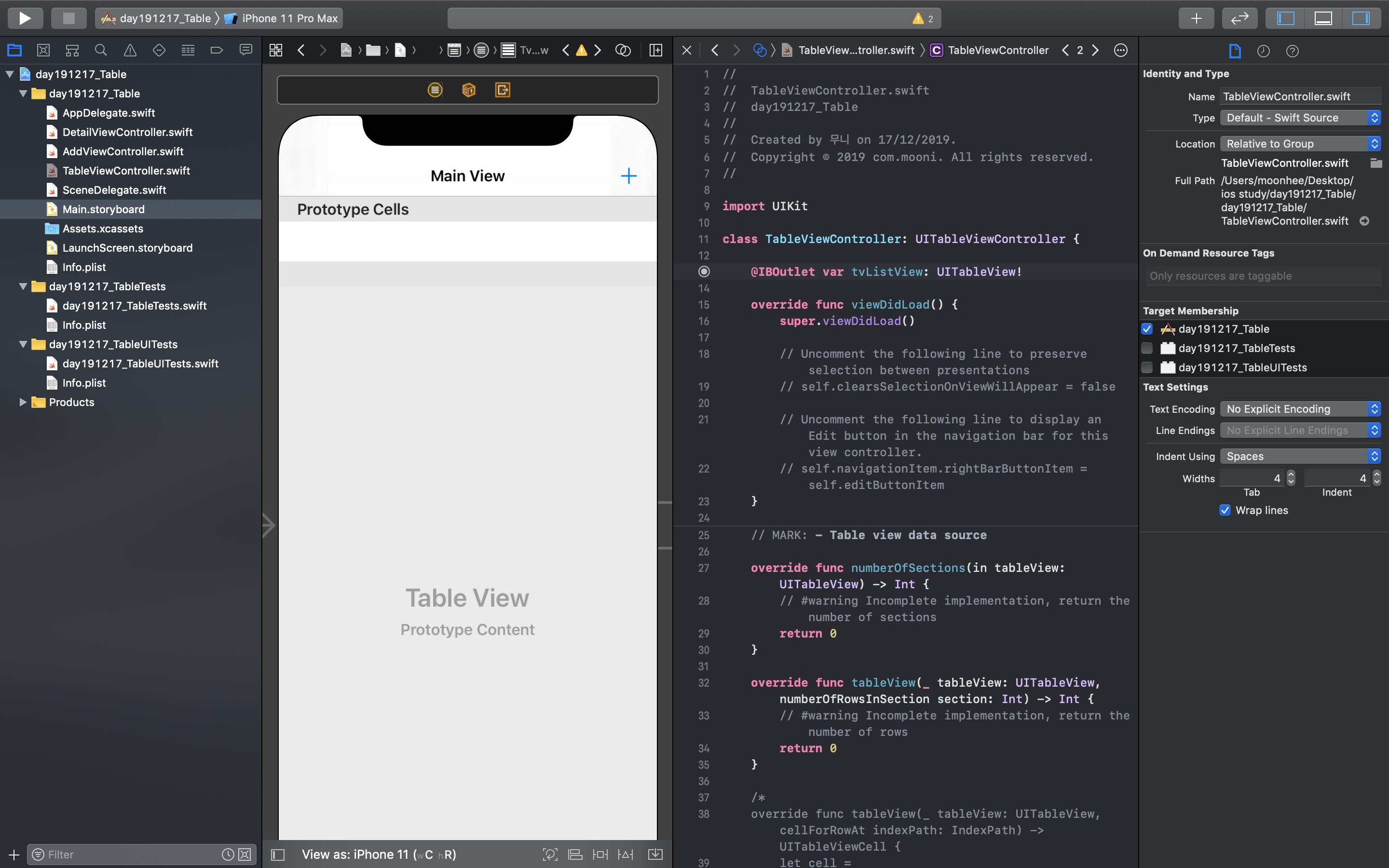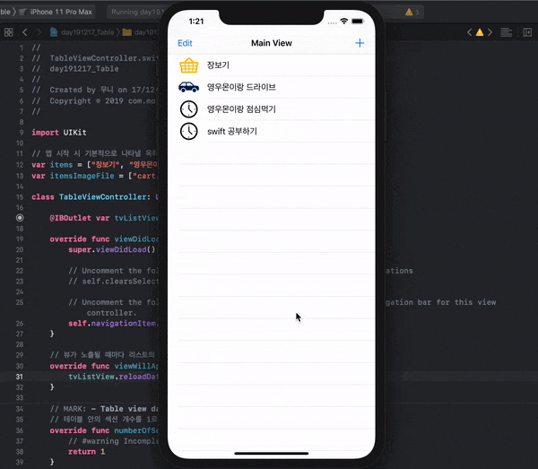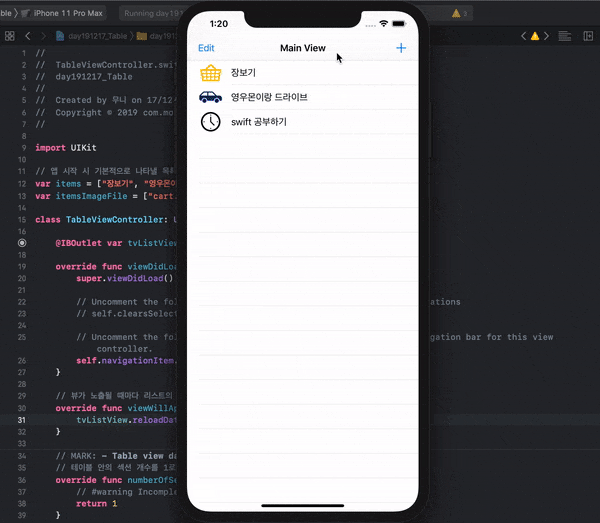 Xcode(버전11.3)를 이용하여 테이블 뷰 컨트롤러(Table View Controller) 할일 목록 앱을 만든다:)