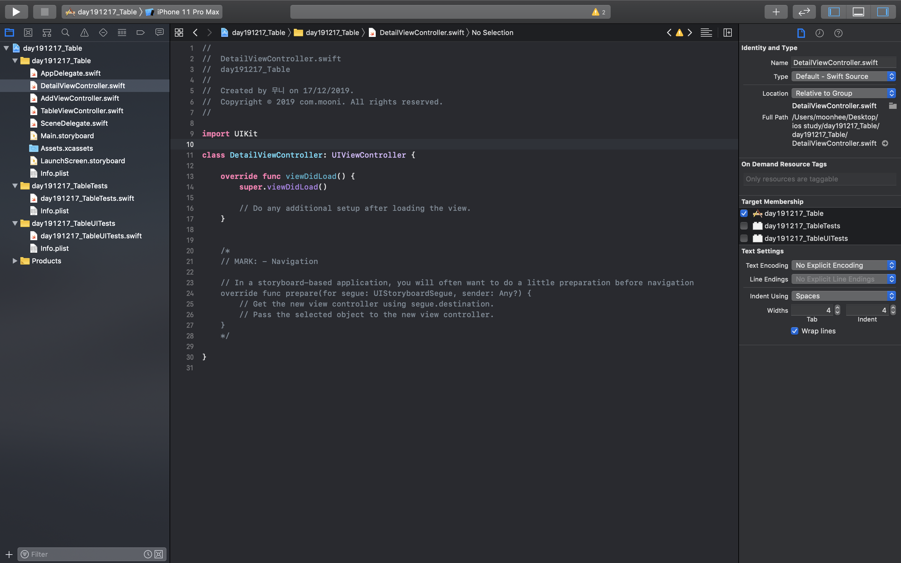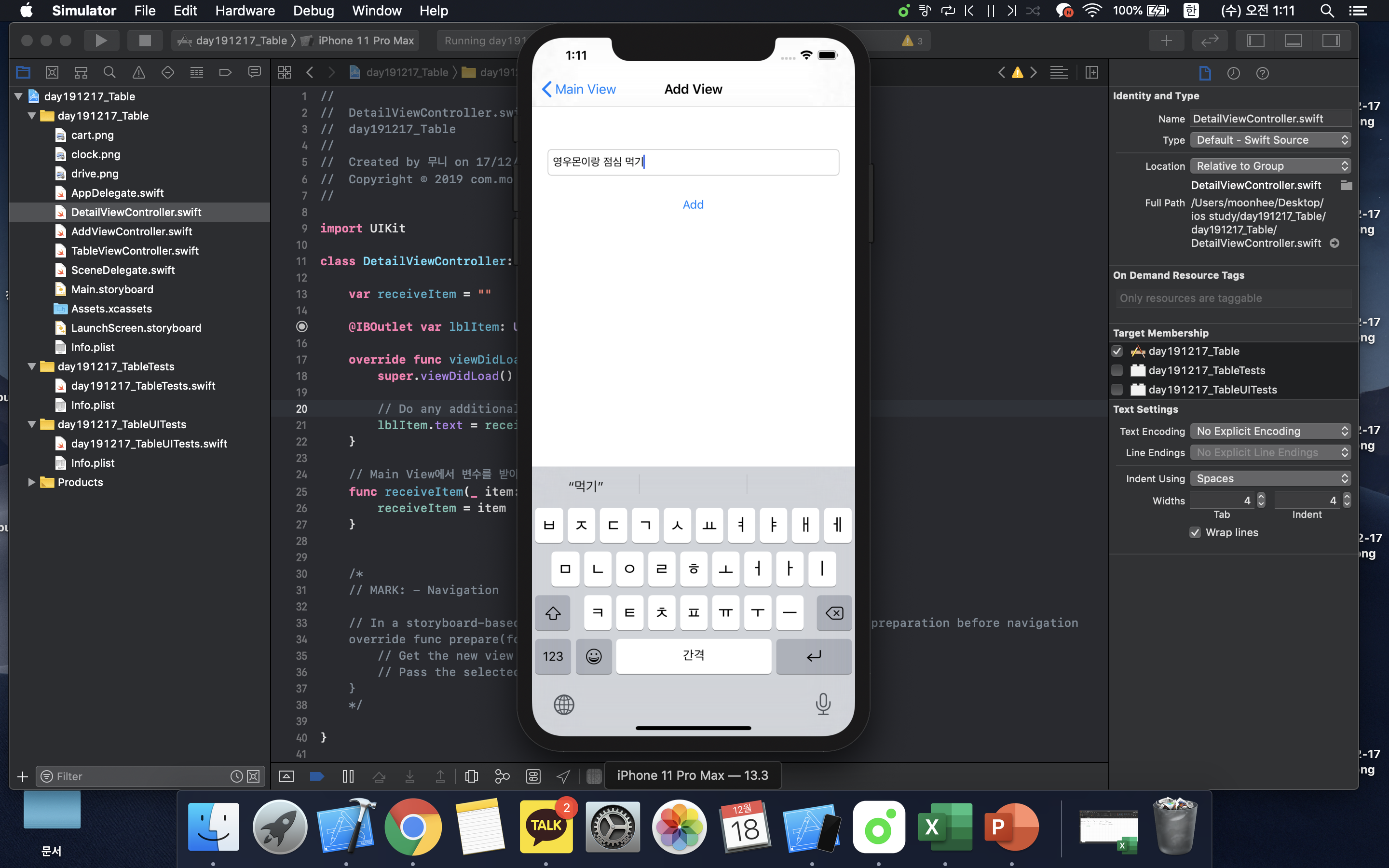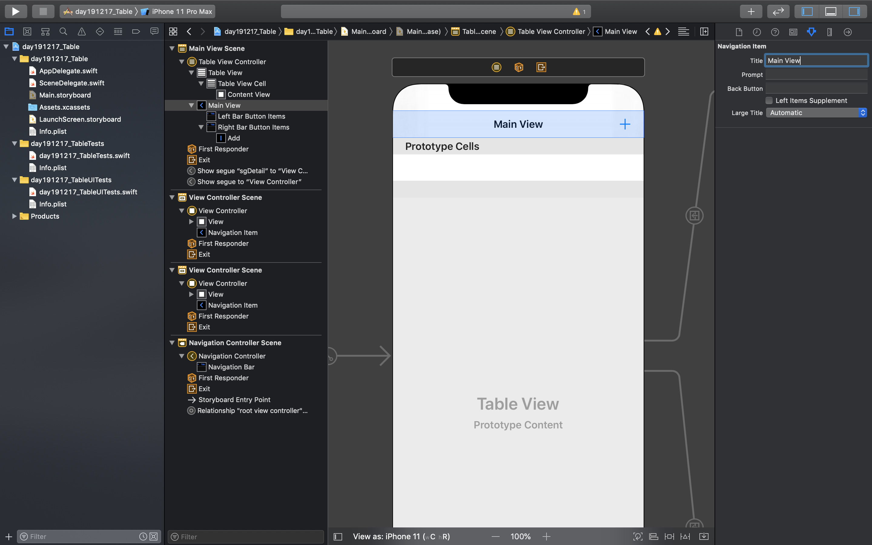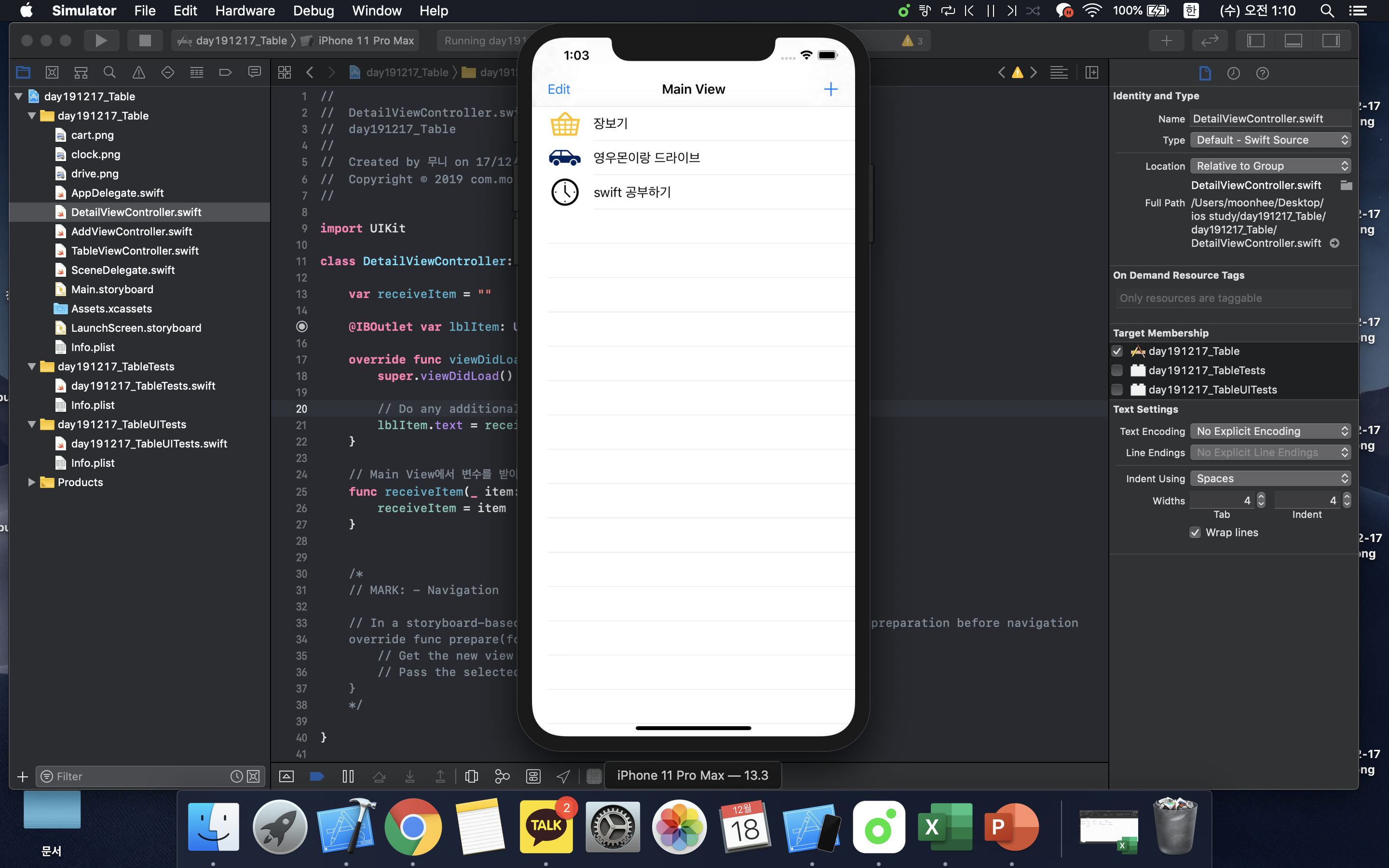 Xcode(버전11.3)를 이용하여 테이블 뷰 컨트롤러(Table View Controller) 할일 목록 앱을 만든다:)