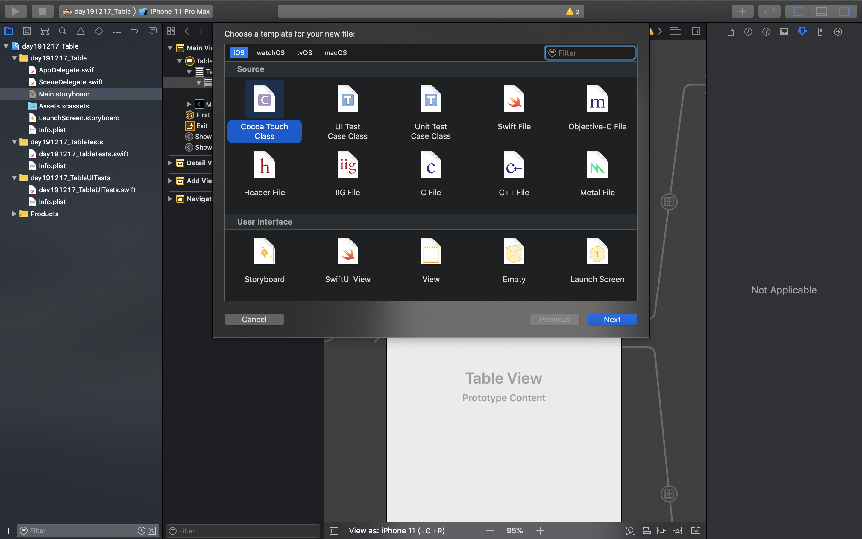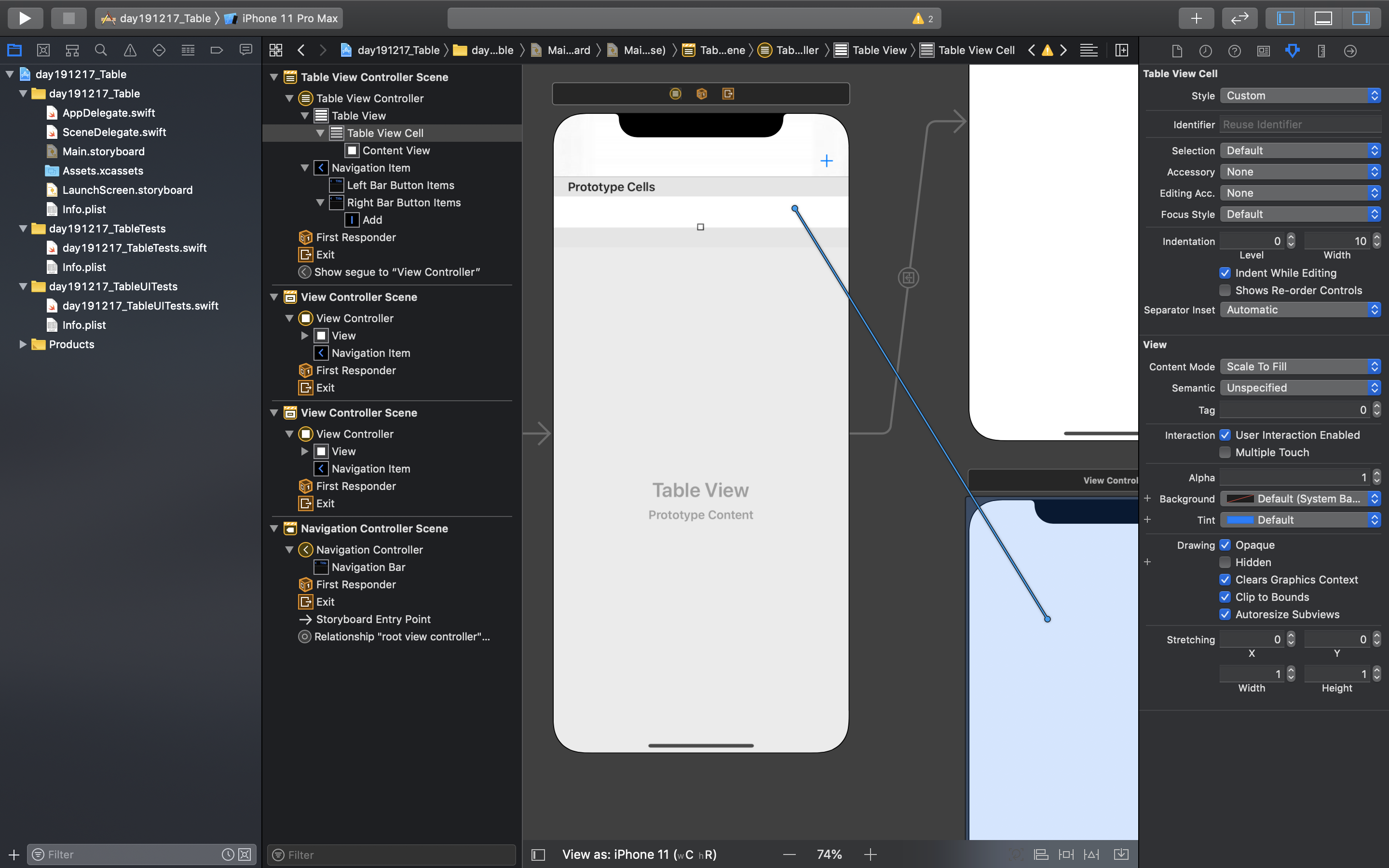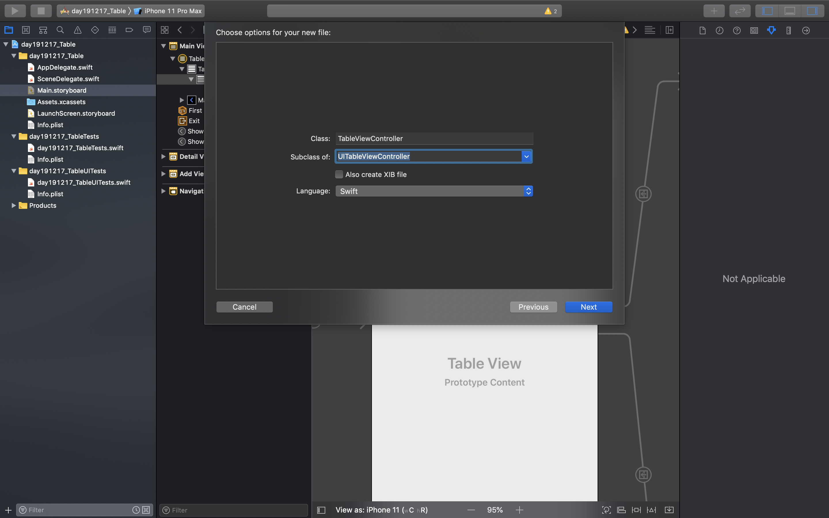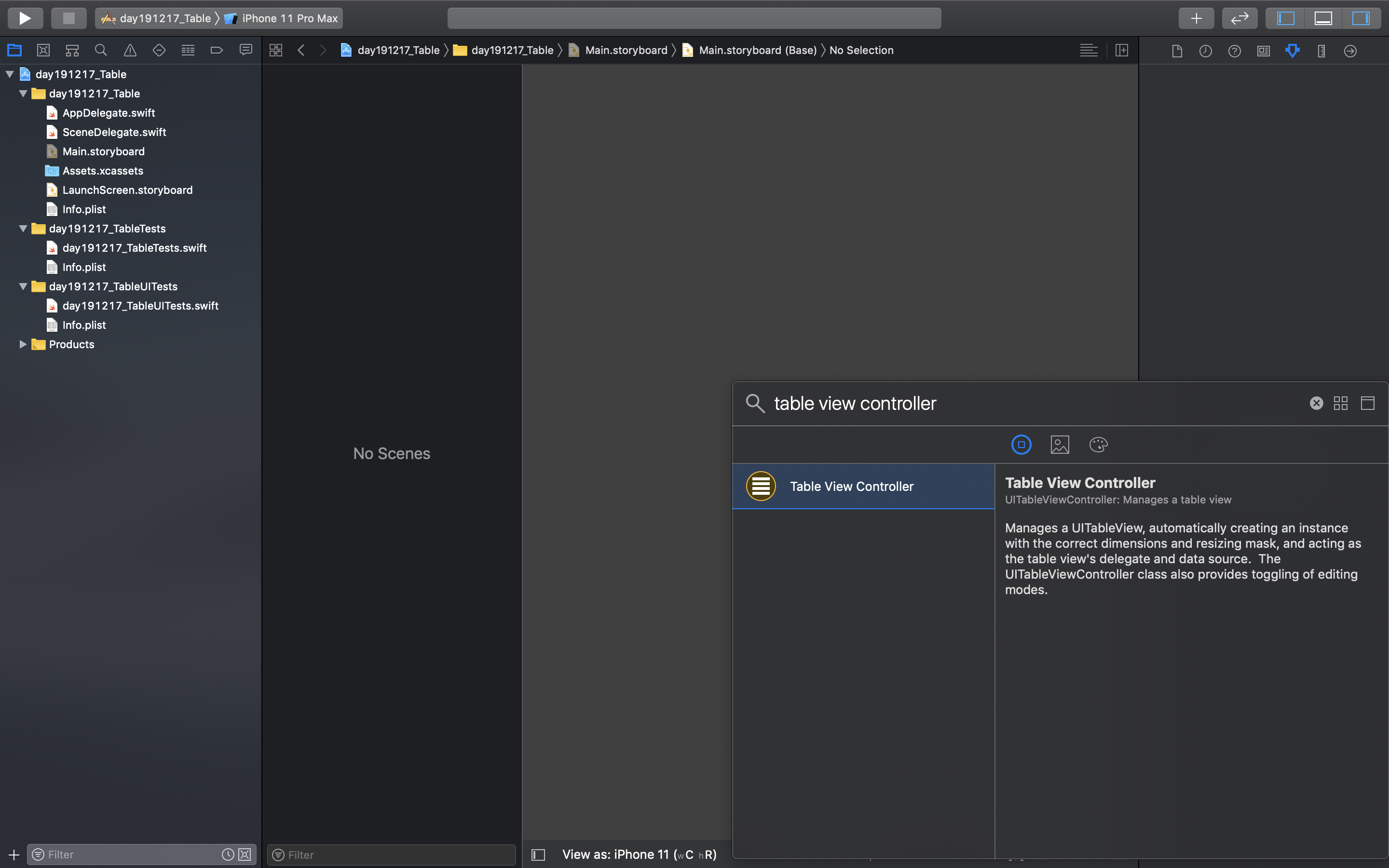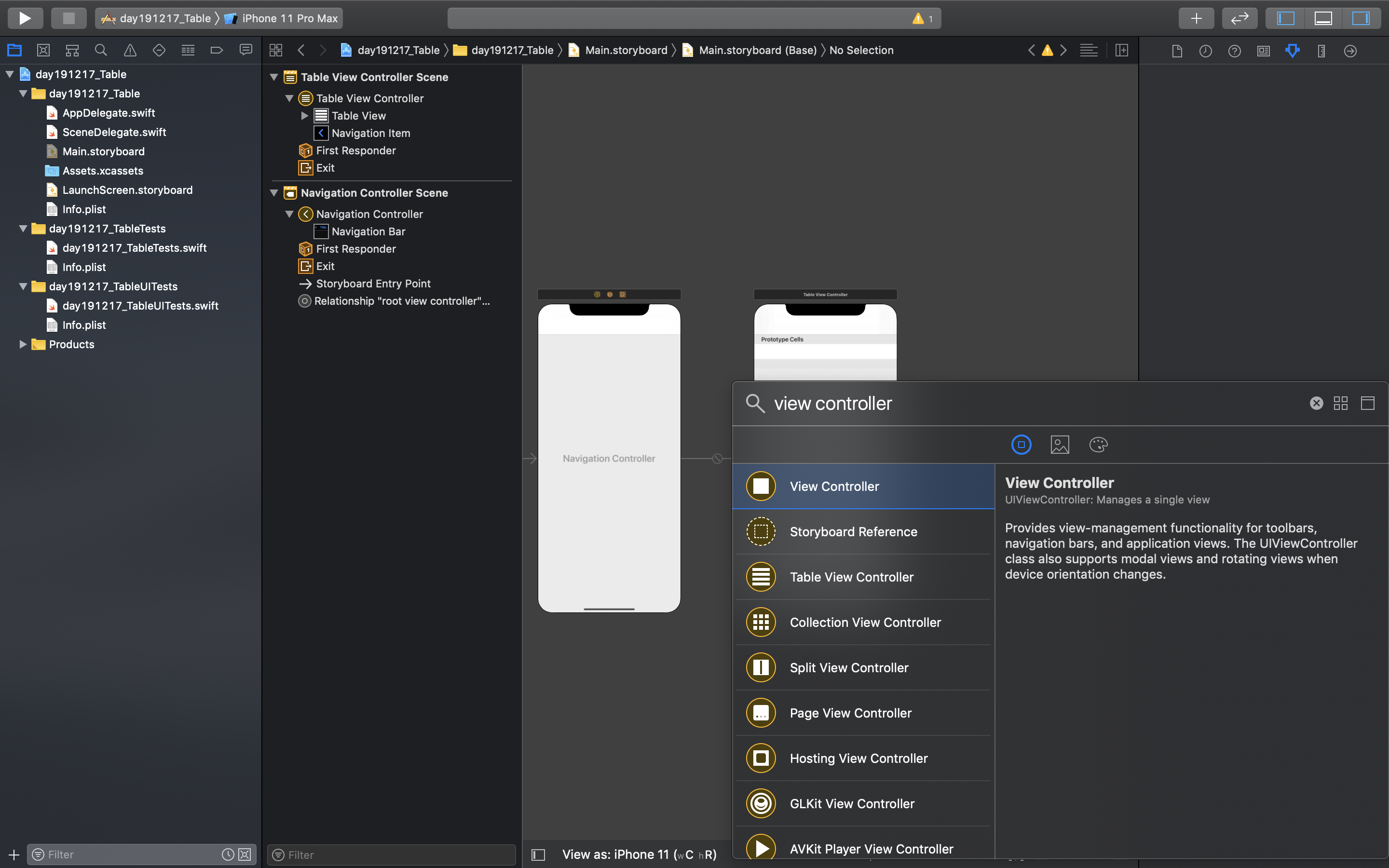 - 테이블 뷰 컨트롤러(Table View Controller) 추가