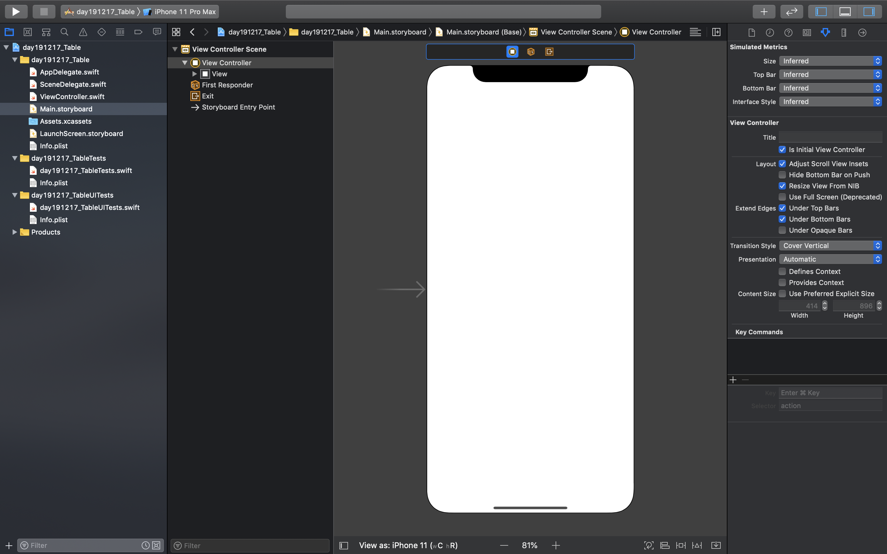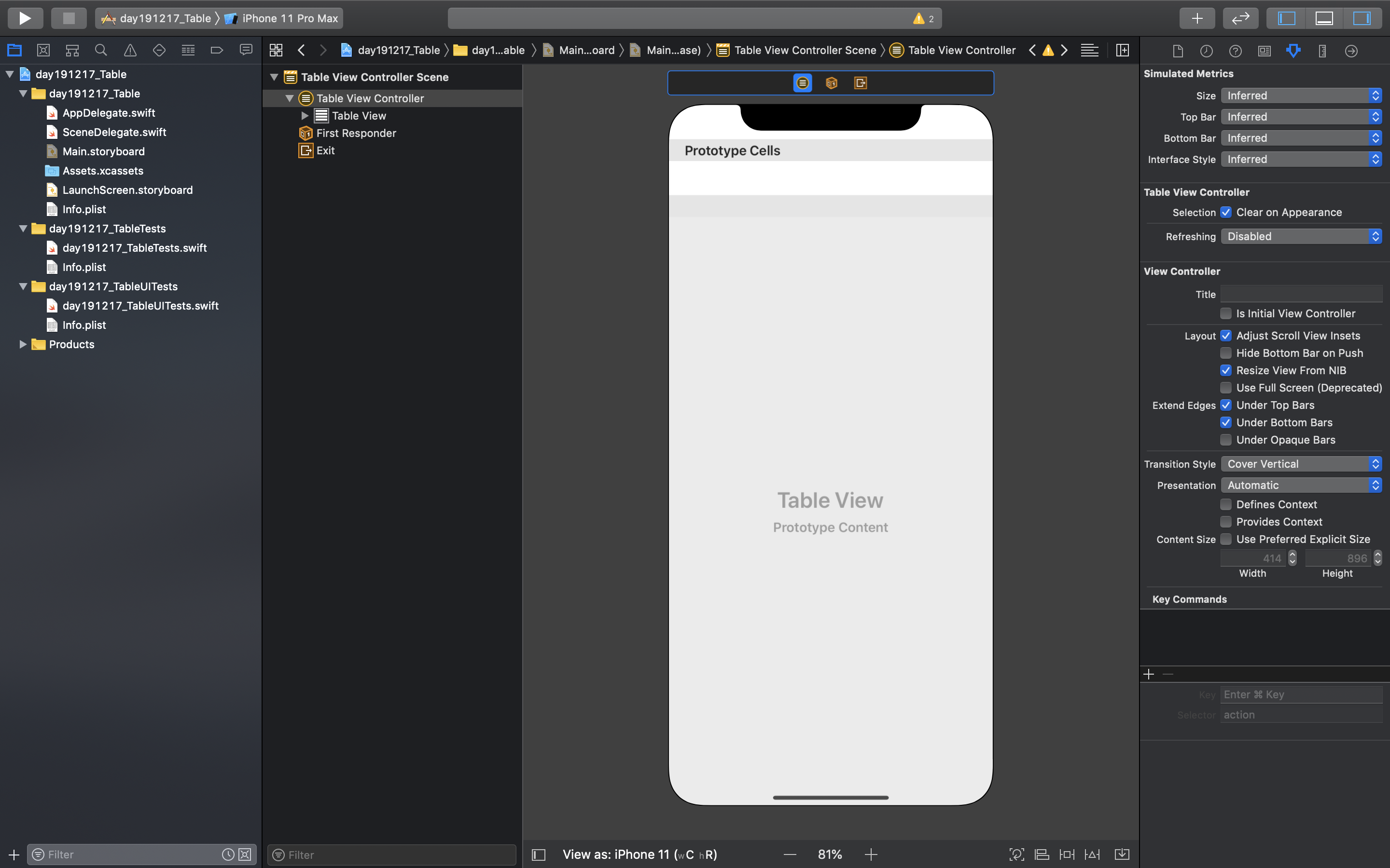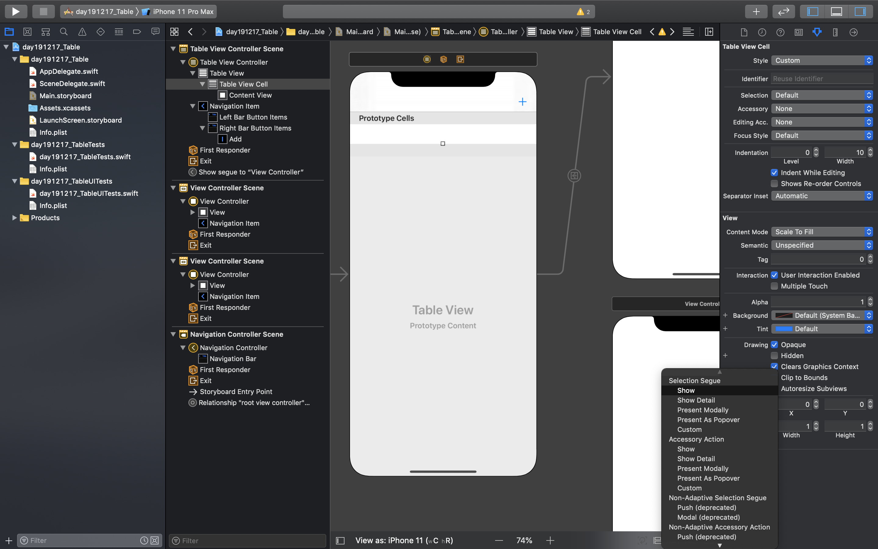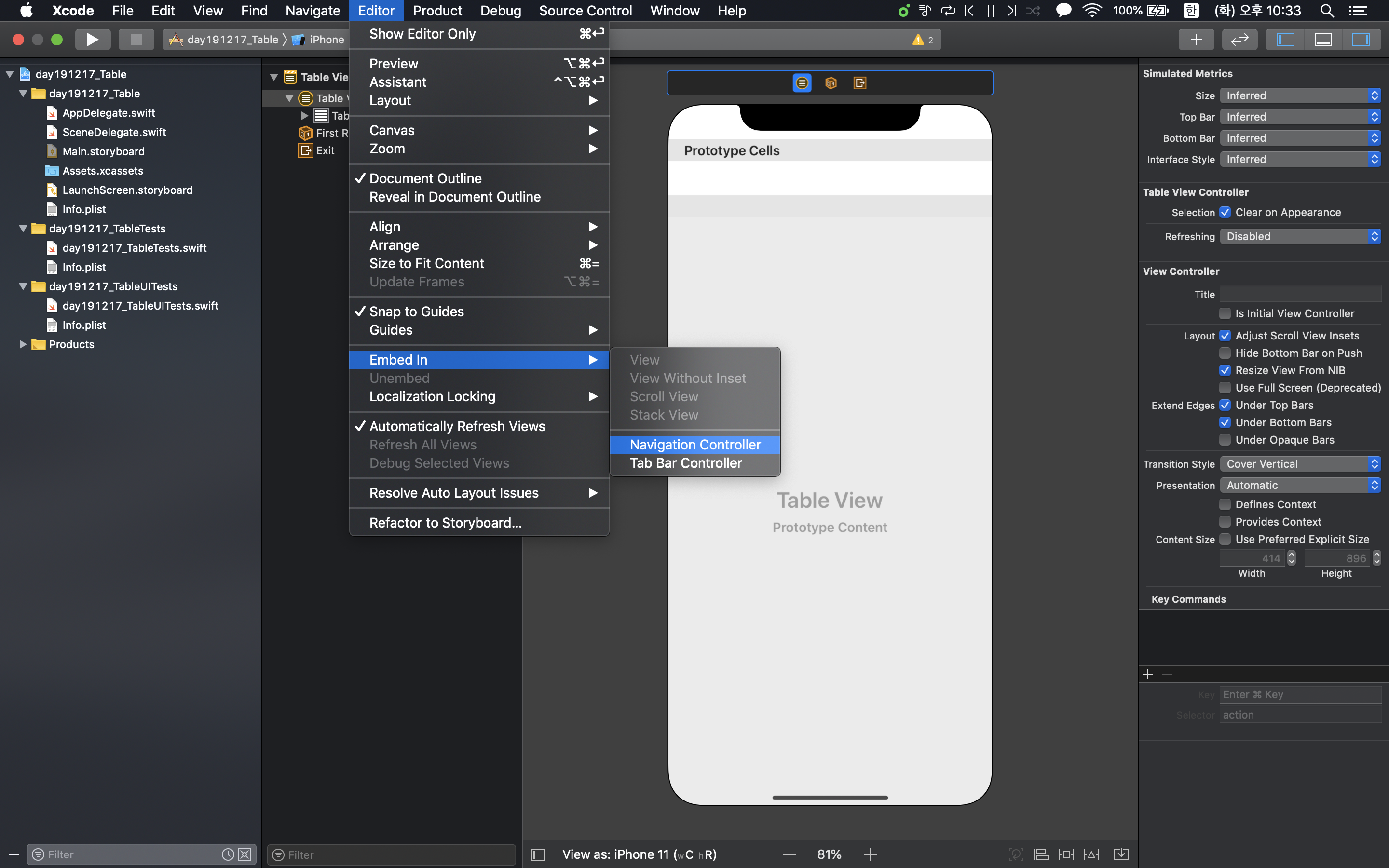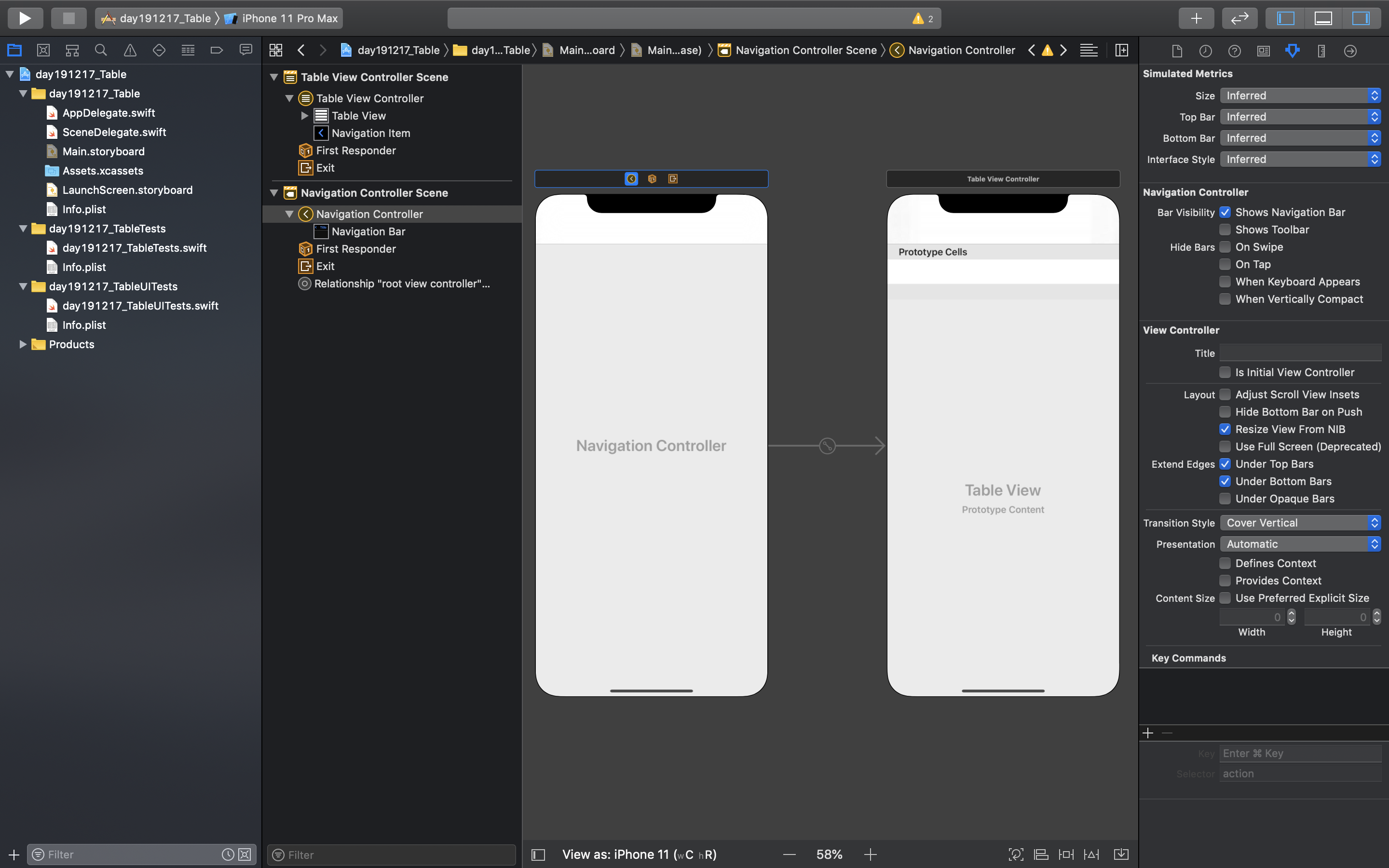 - 테이블 뷰 컨트롤러(Table View Controller) 추가