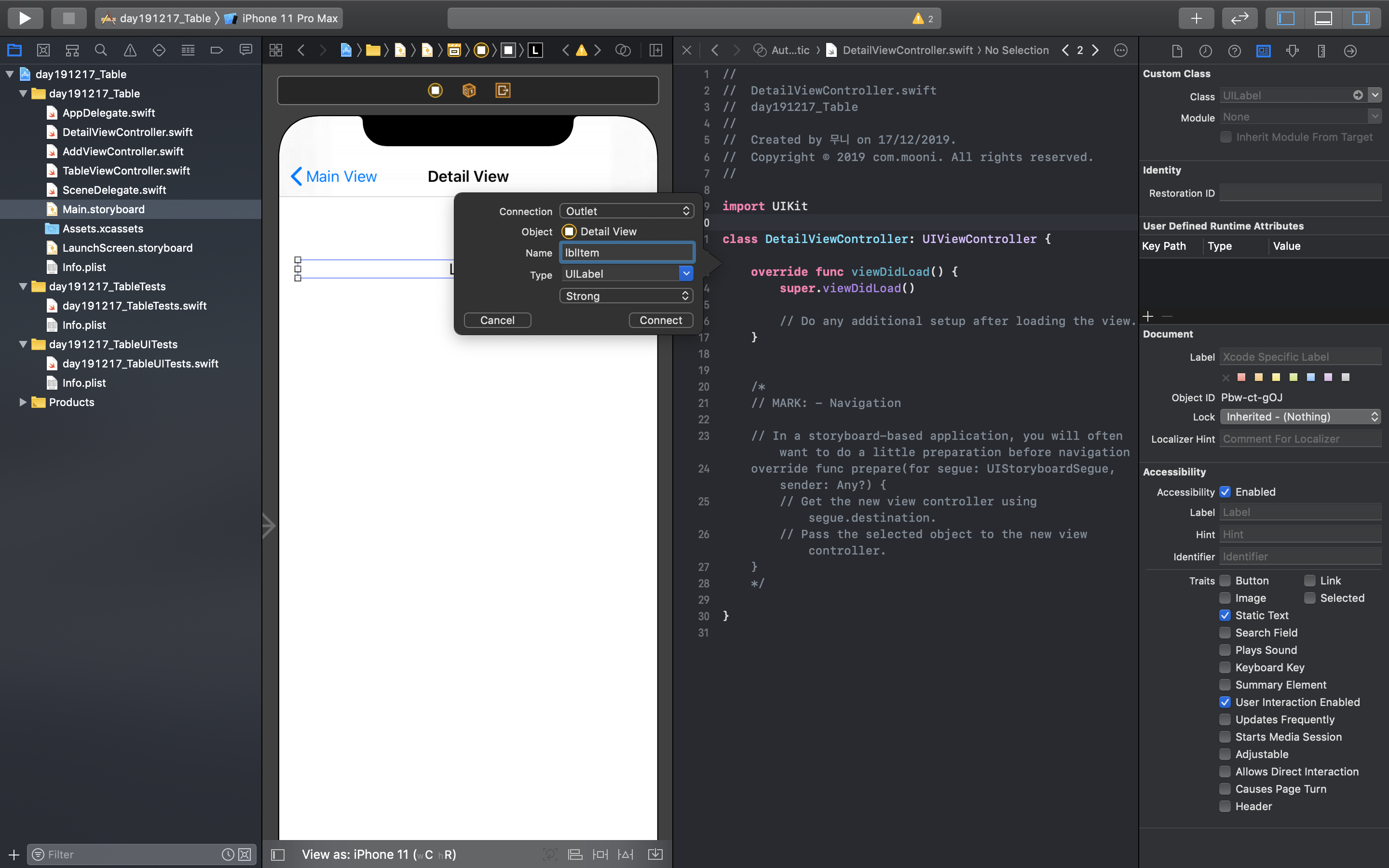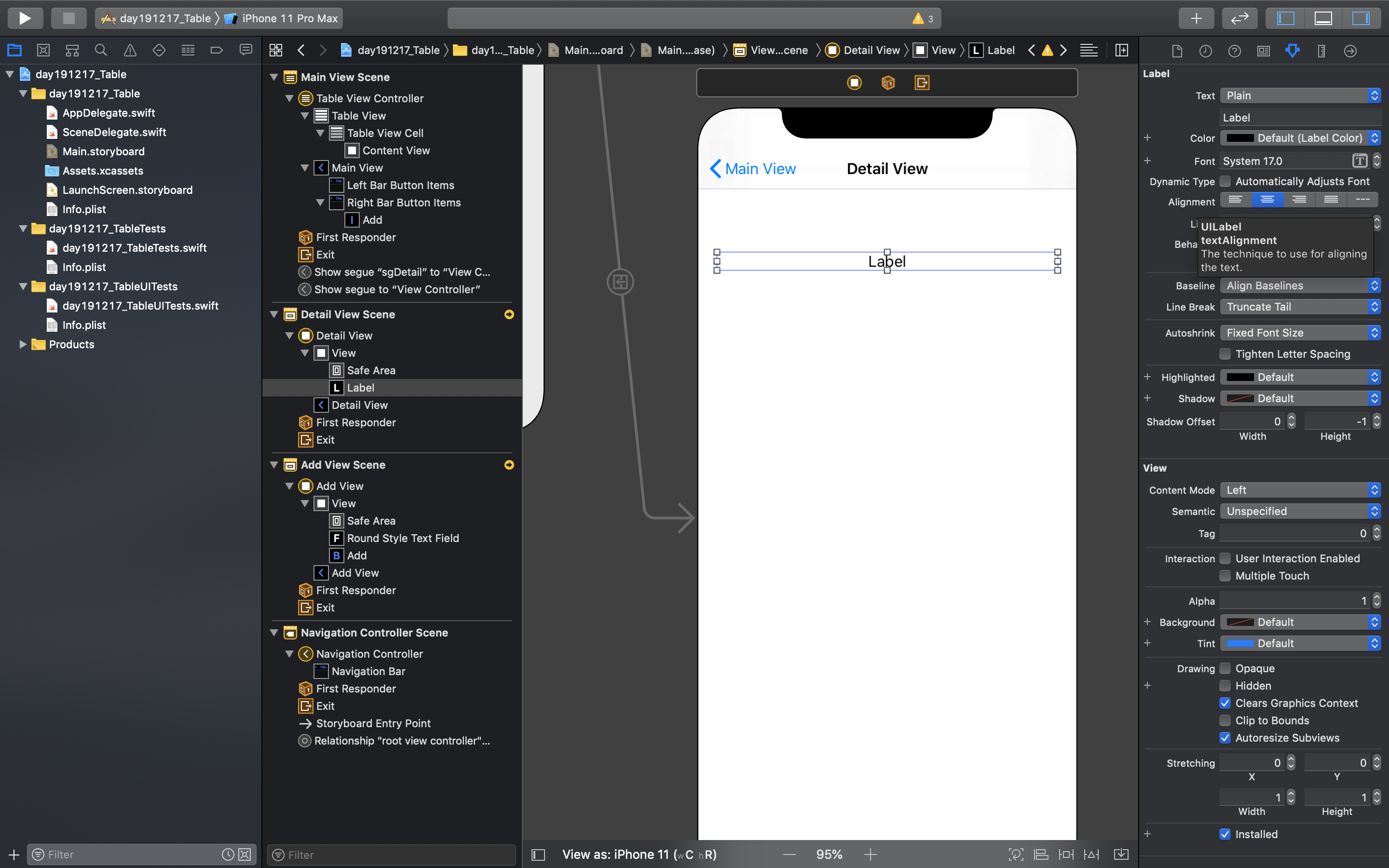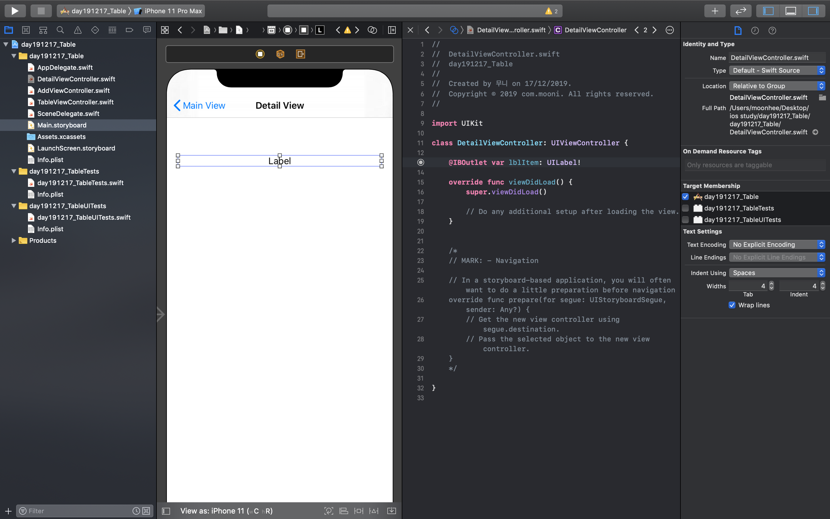 2) 'Detail View' 뷰 컨트롤러에 label 추가한다.