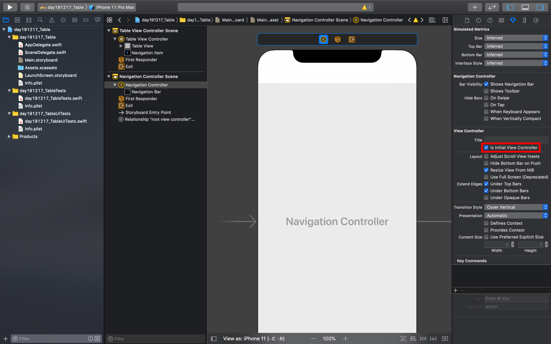 앱이 실행될 때 처음으로 가야 할 뷰 컨트롤러를 내비게이션 컨트롤러로 선택