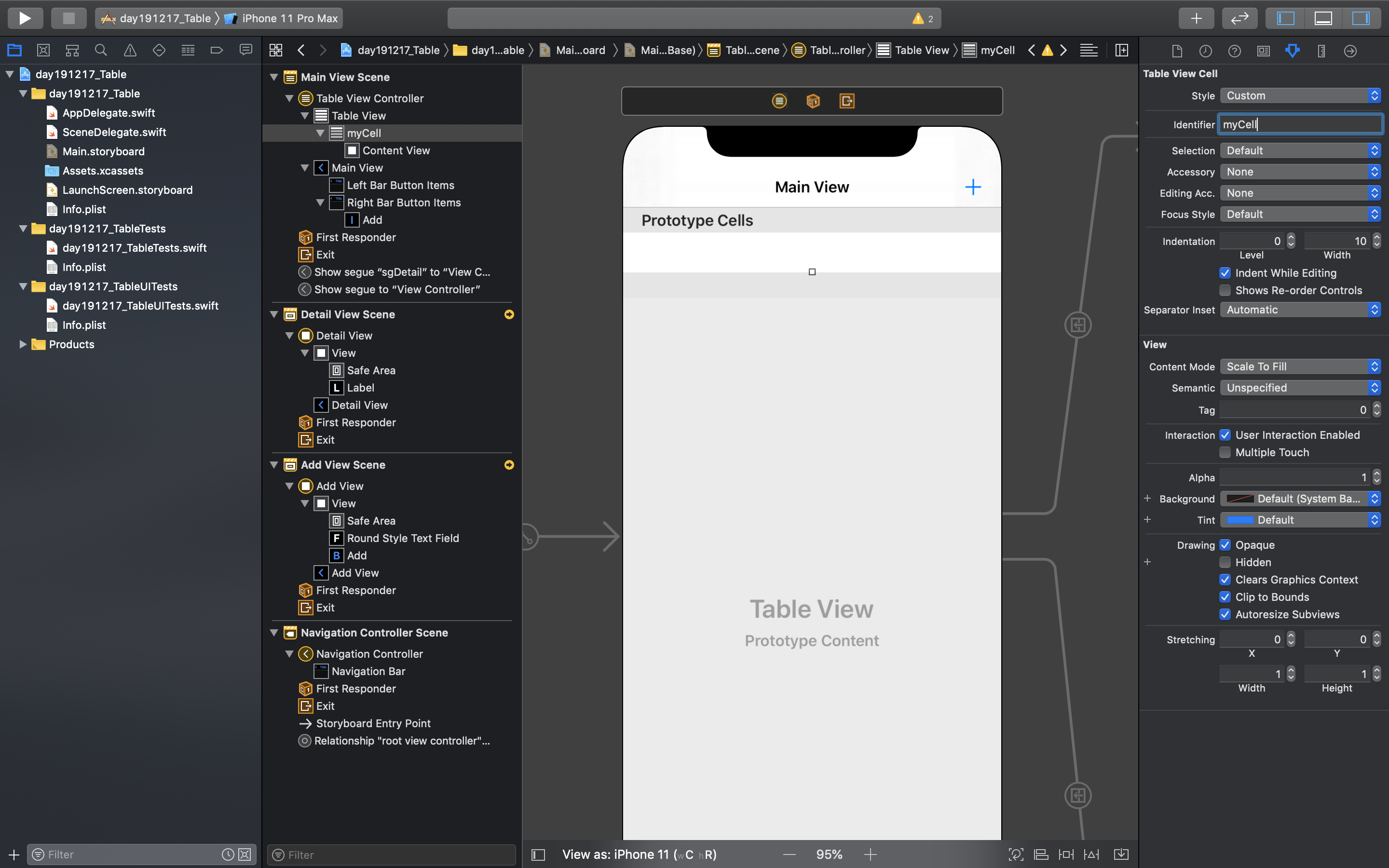 Attribute Inspector -> Identifer -> 'myCell' 입력