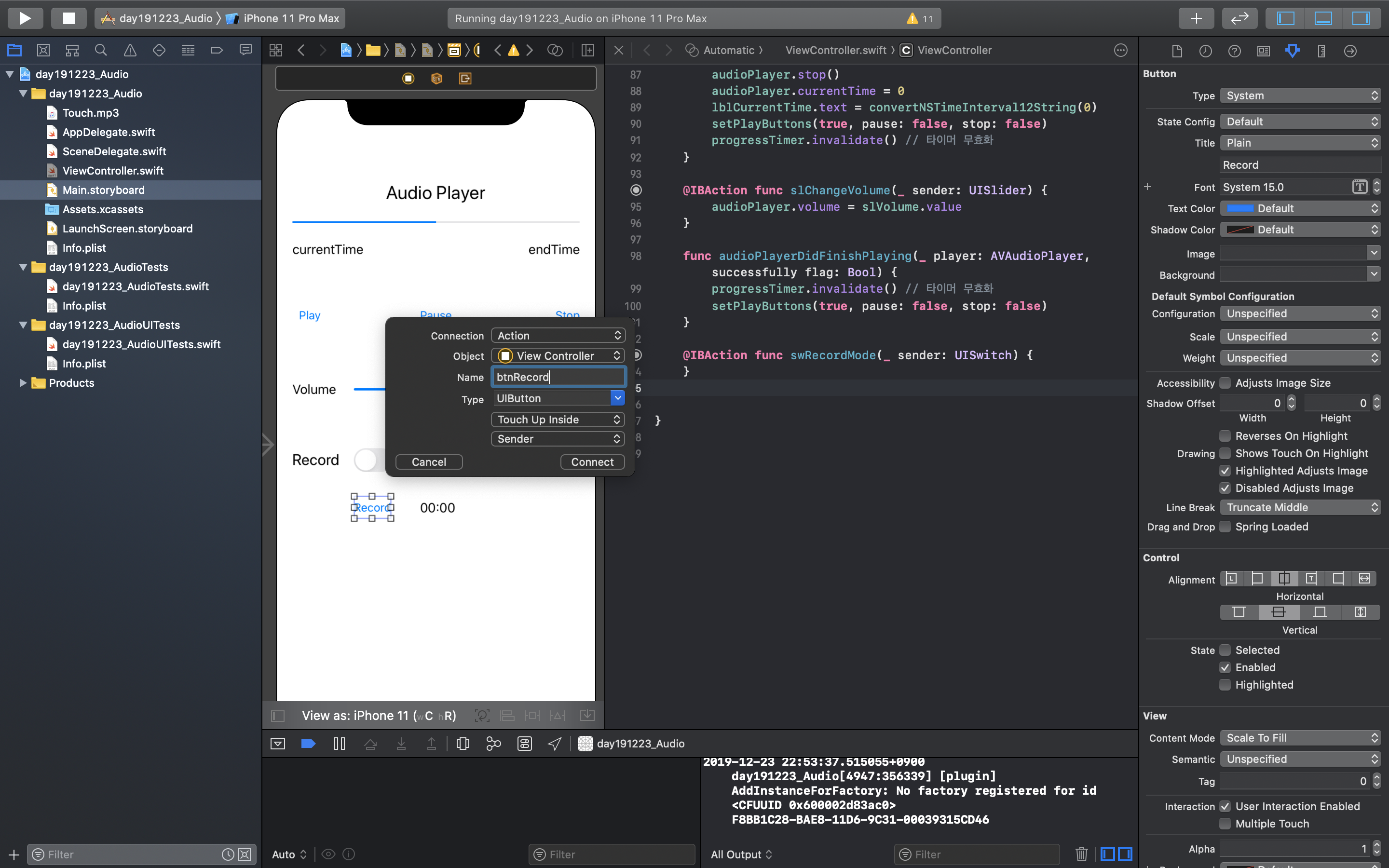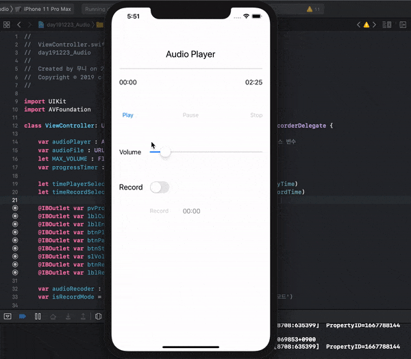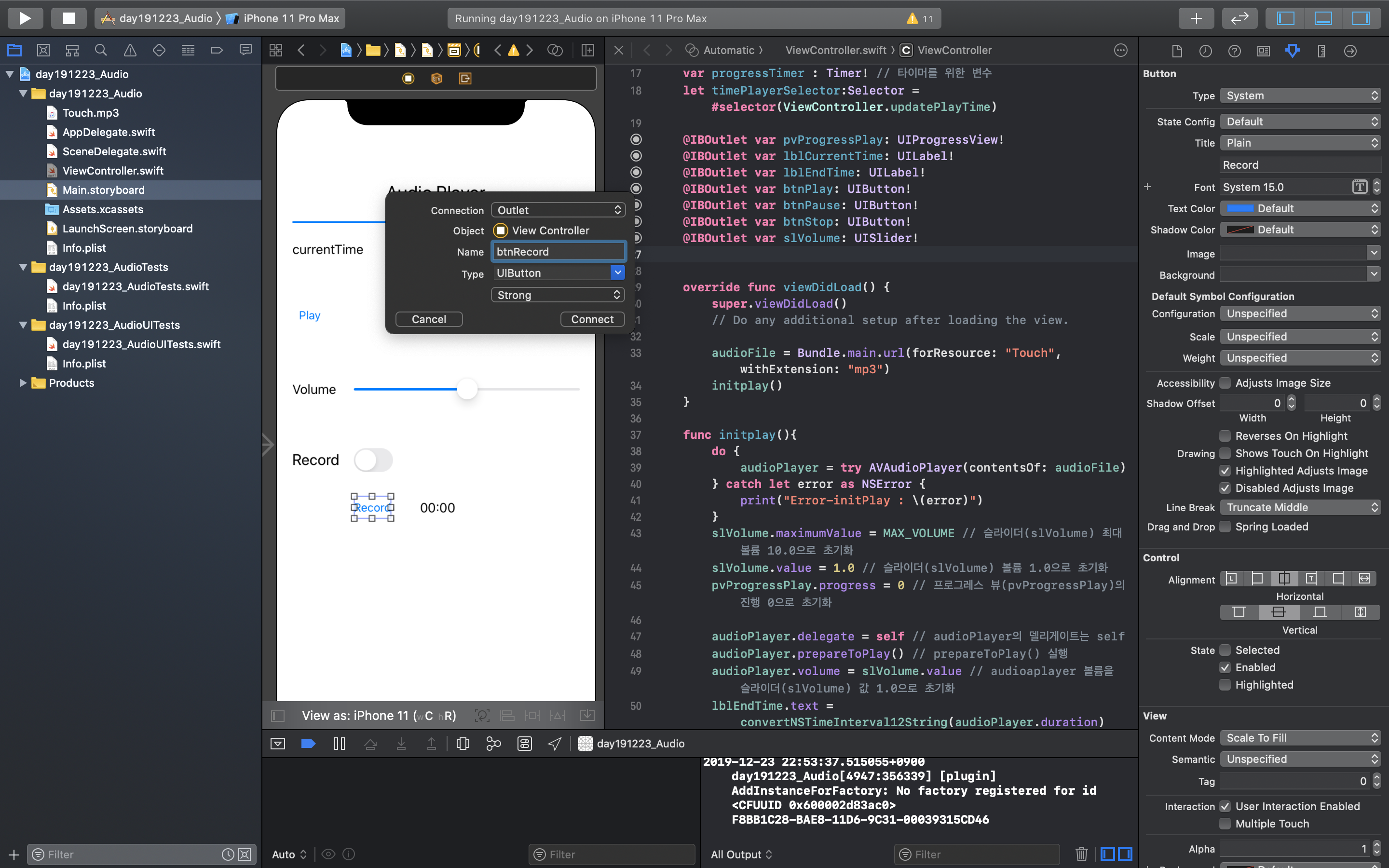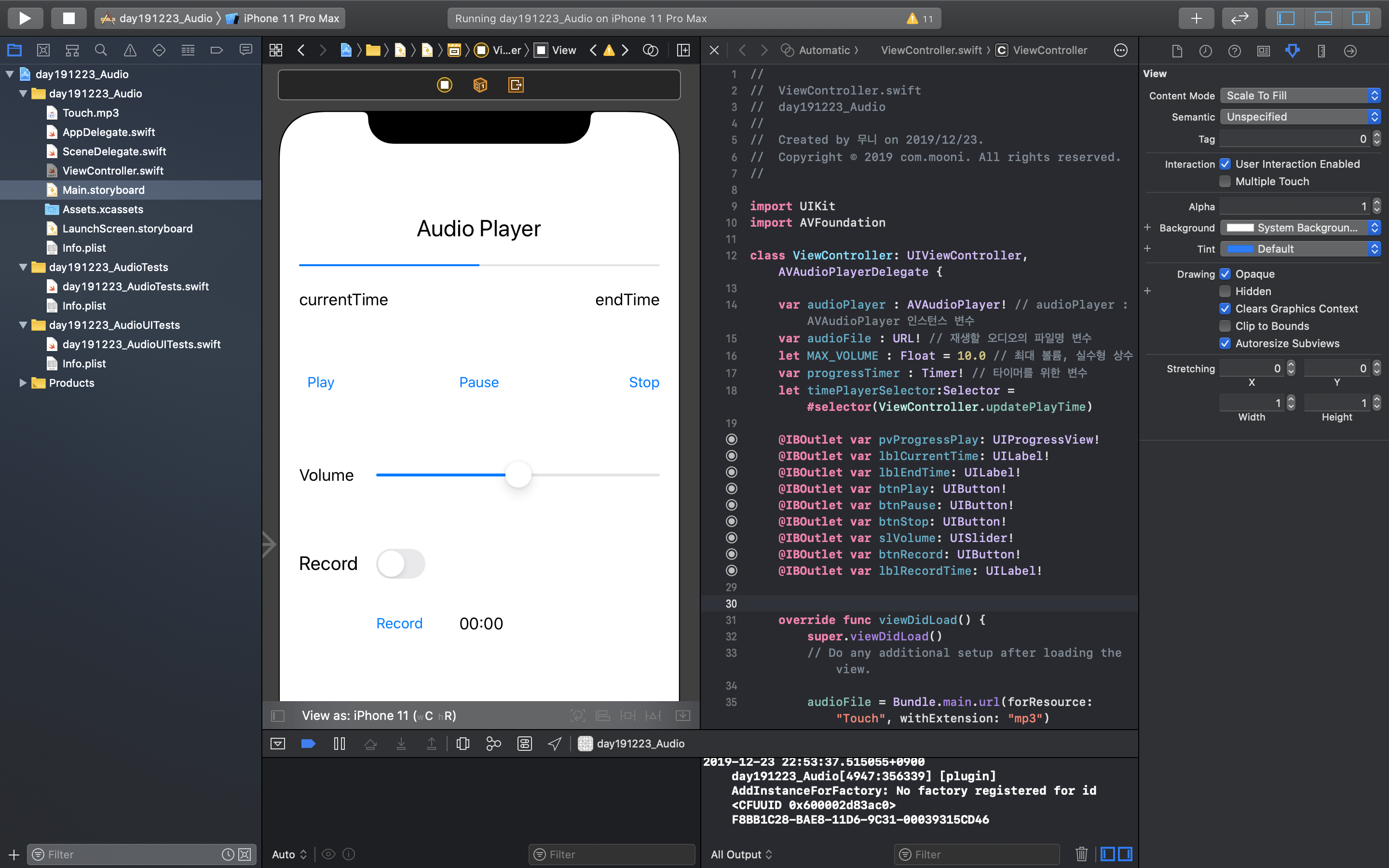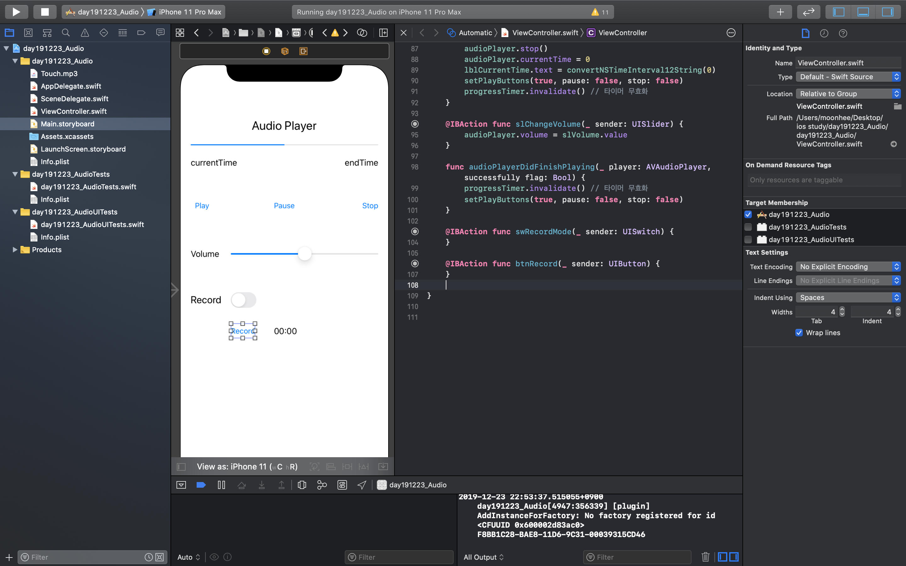 Xcode(버전11.3)를 AVAudioPlayer 음악(오디오) 재생 및 녹음 앱을 만든다:)