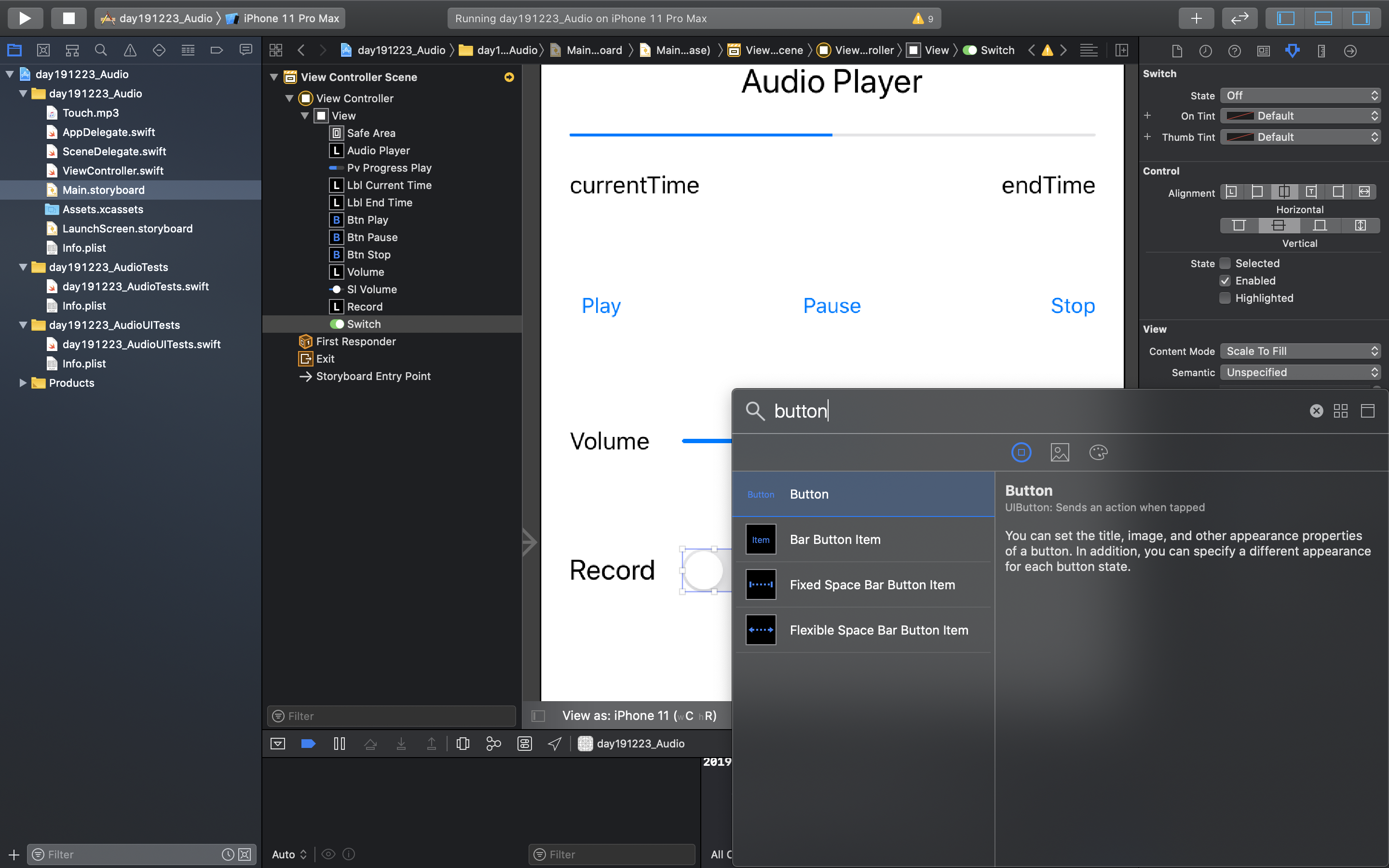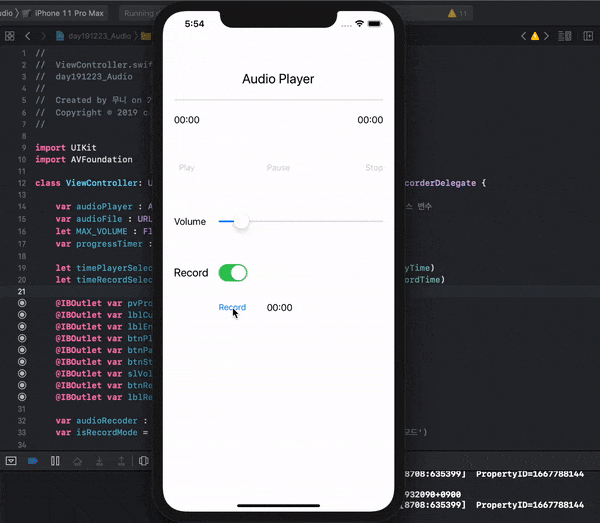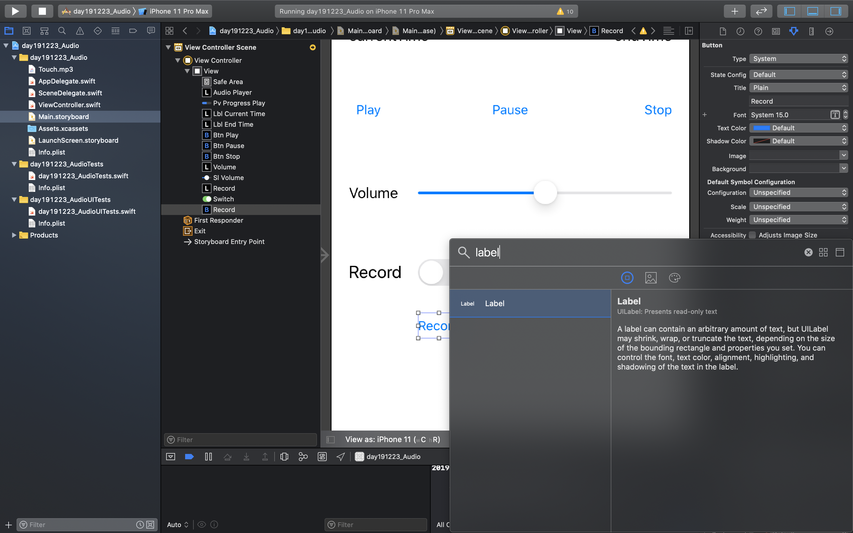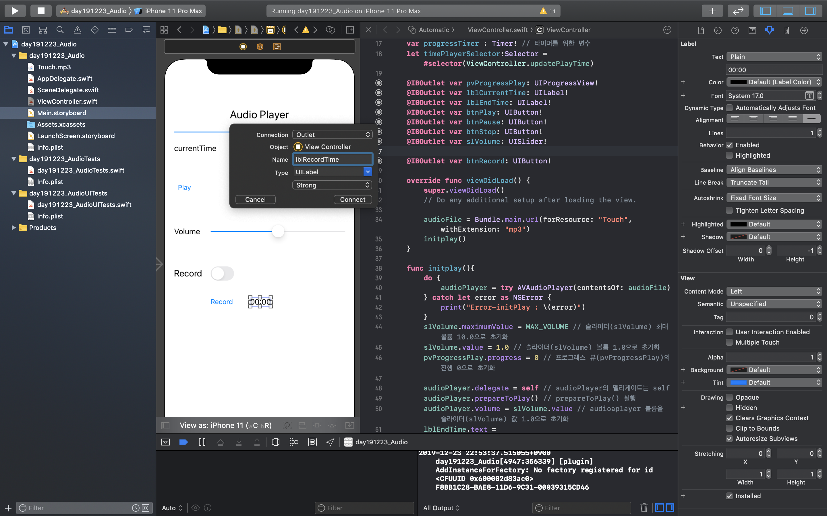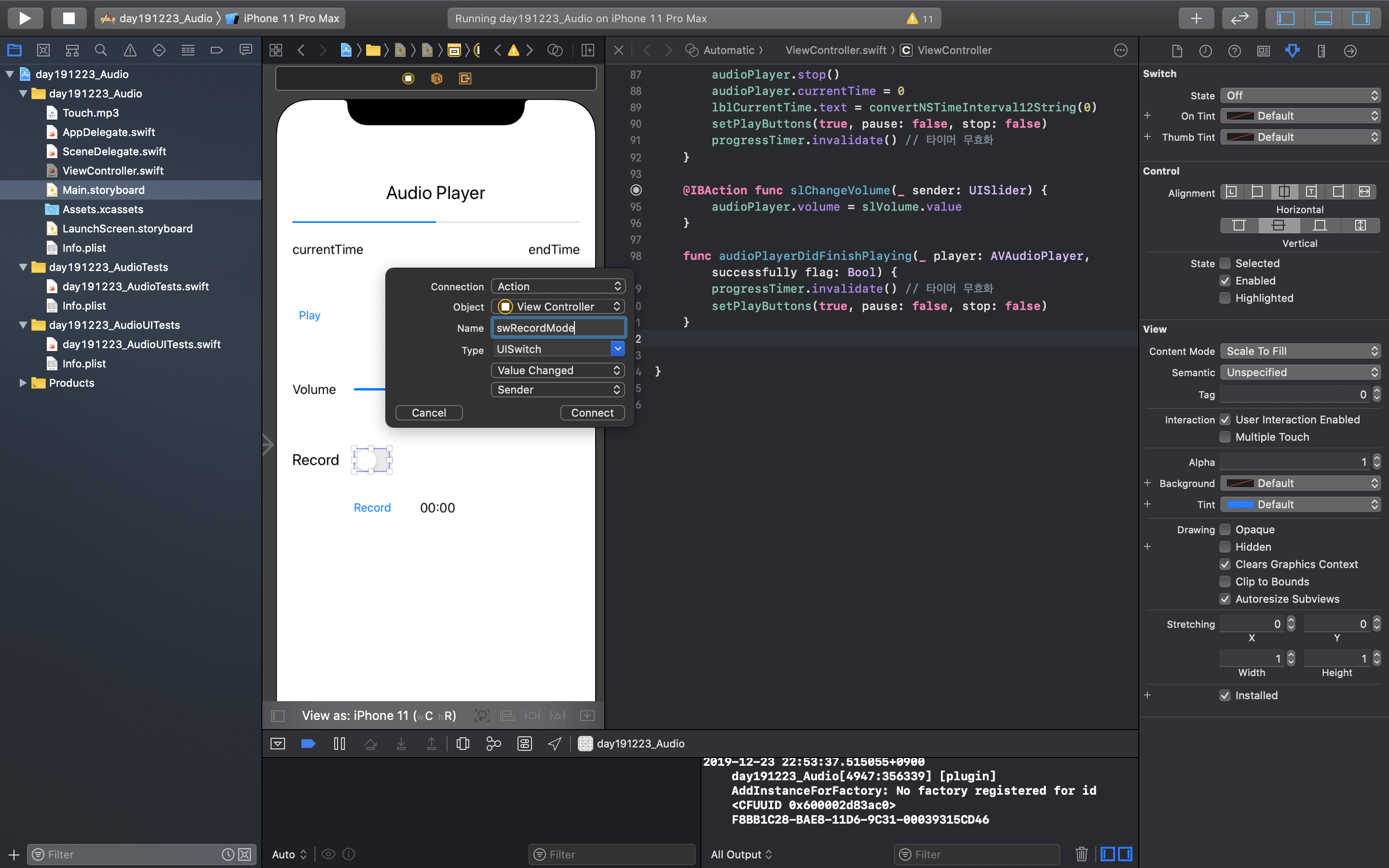 Xcode(버전11.3)를 AVAudioPlayer 음악(오디오) 재생 및 녹음 앱을 만든다:)