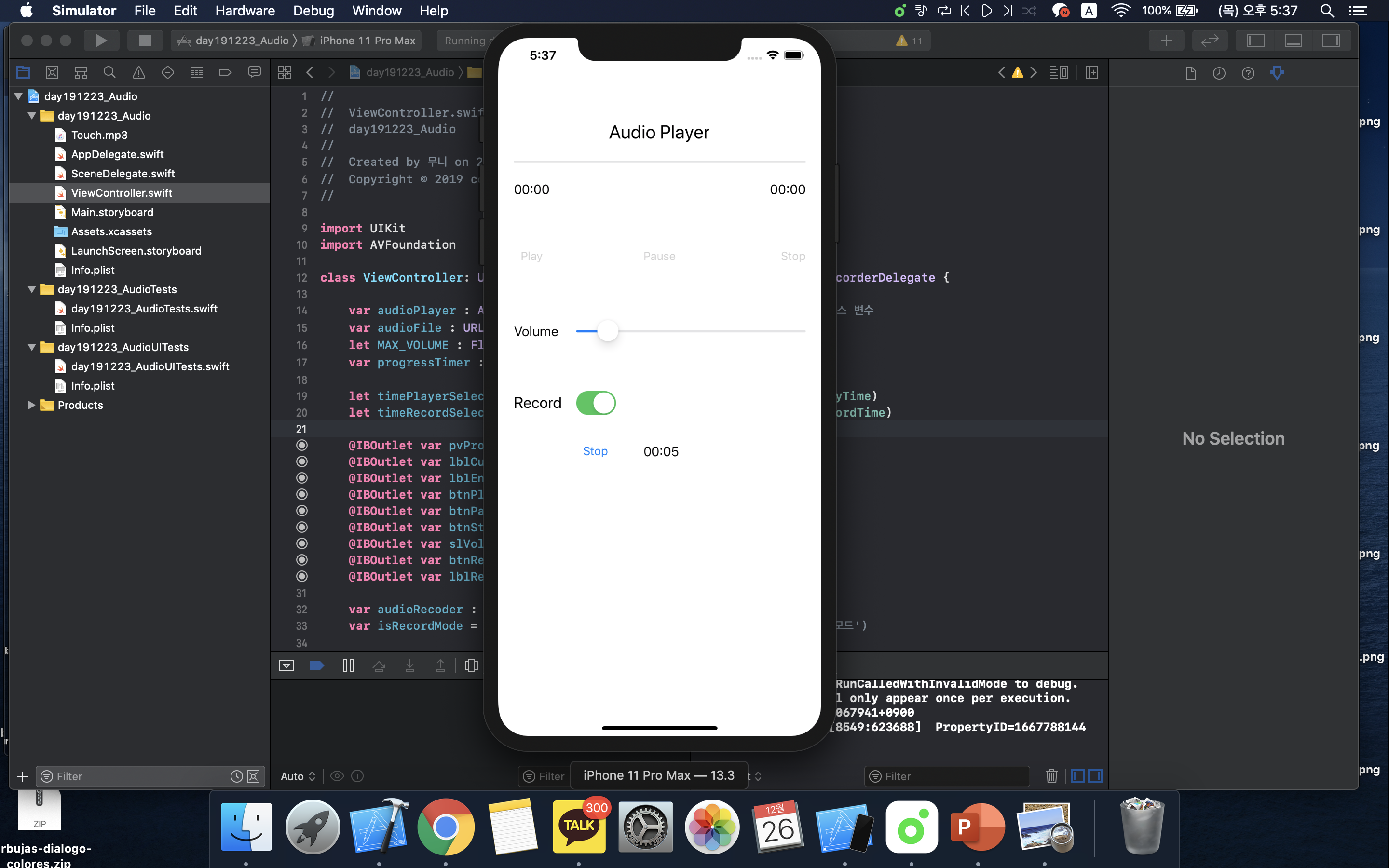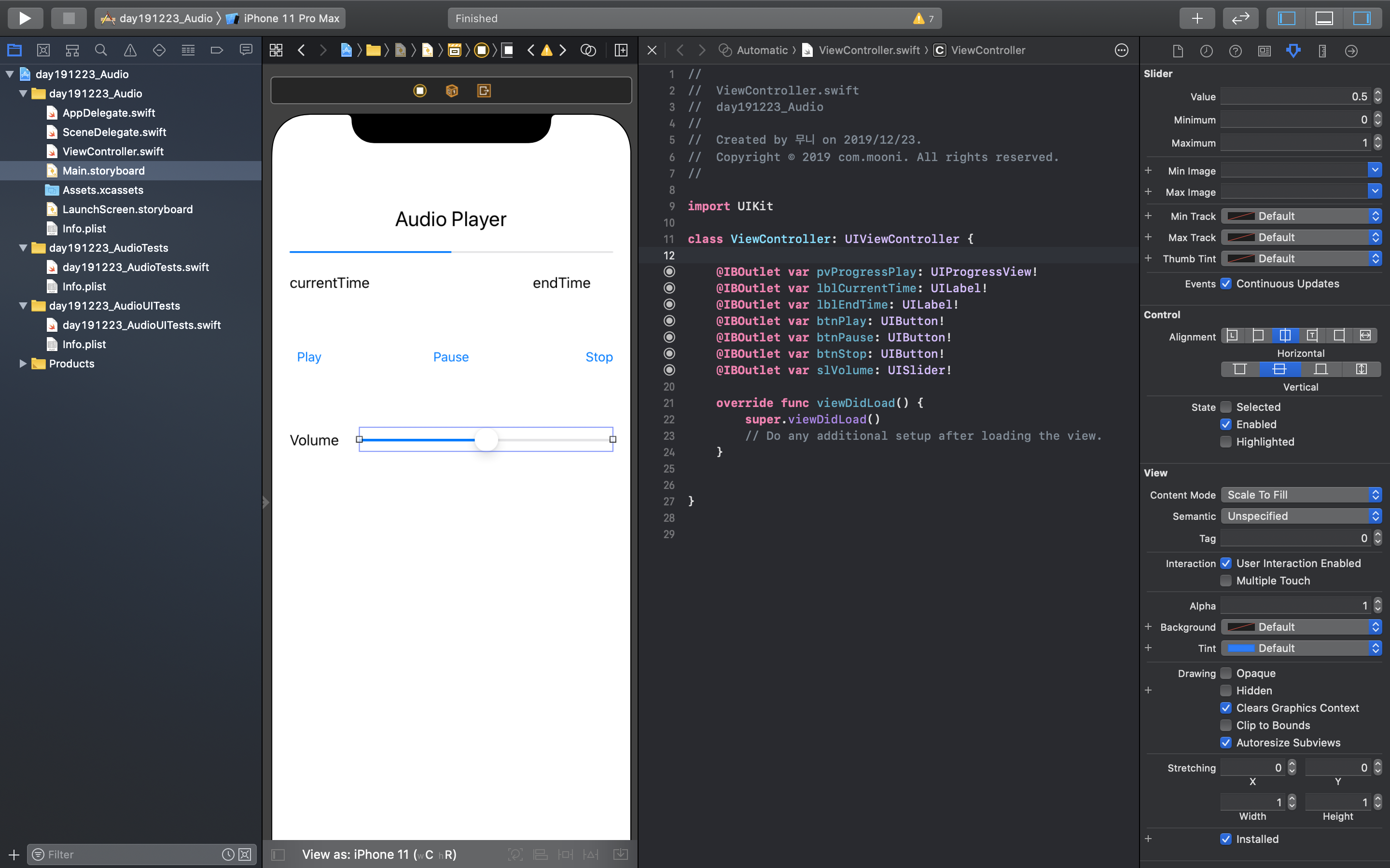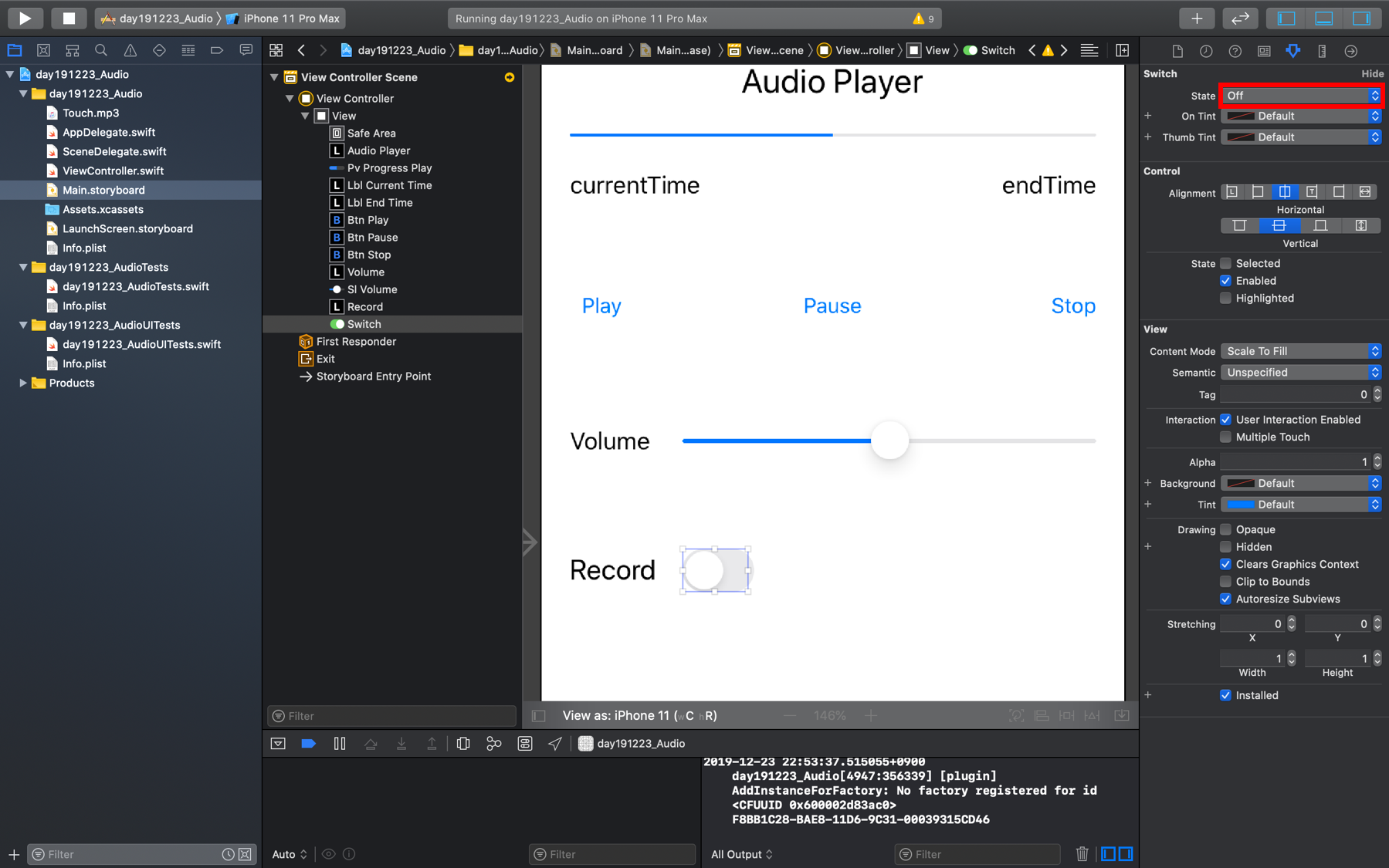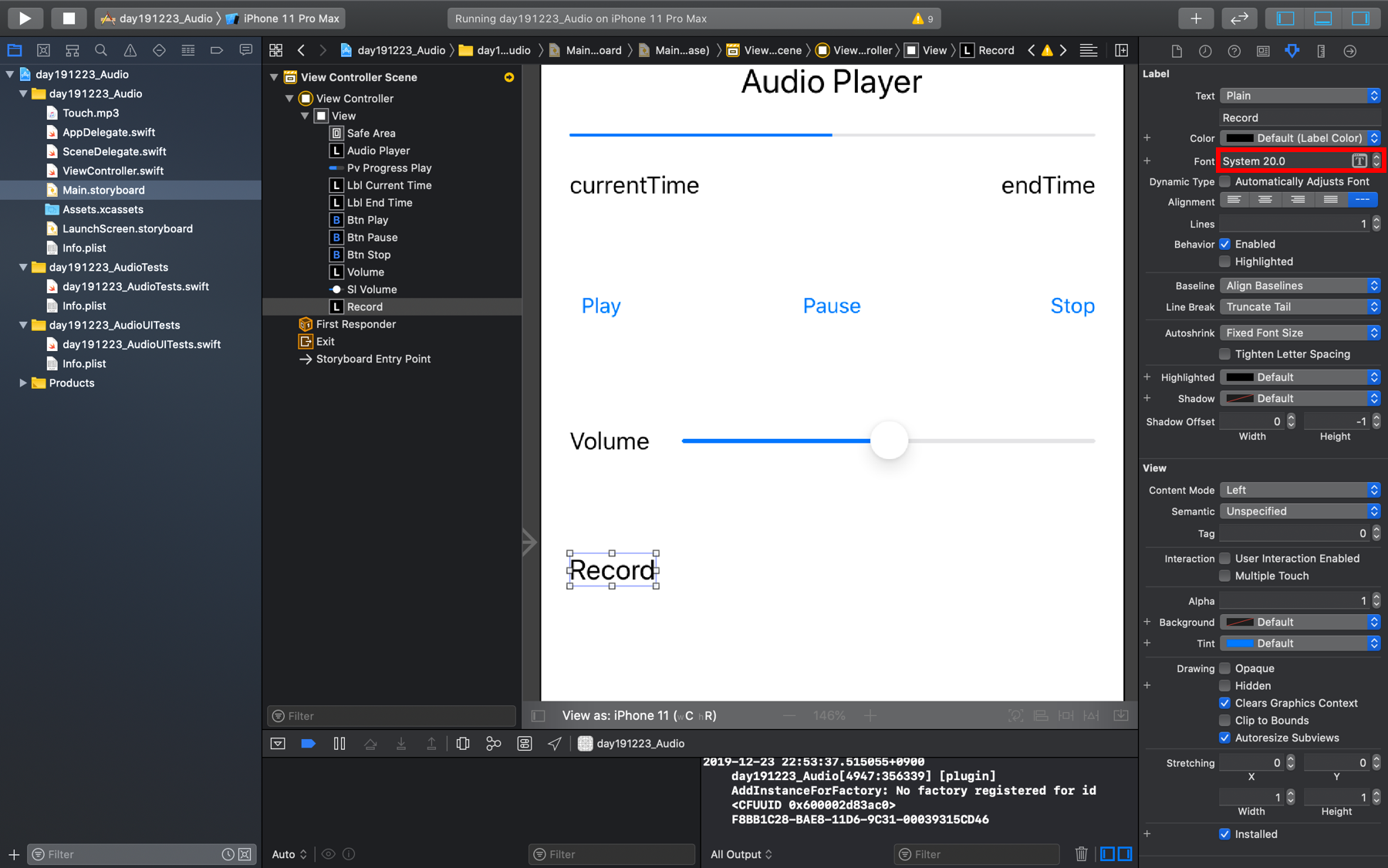 Xcode(버전11.3)를 AVAudioPlayer 음악(오디오) 재생 및 녹음 앱을 만든다:)