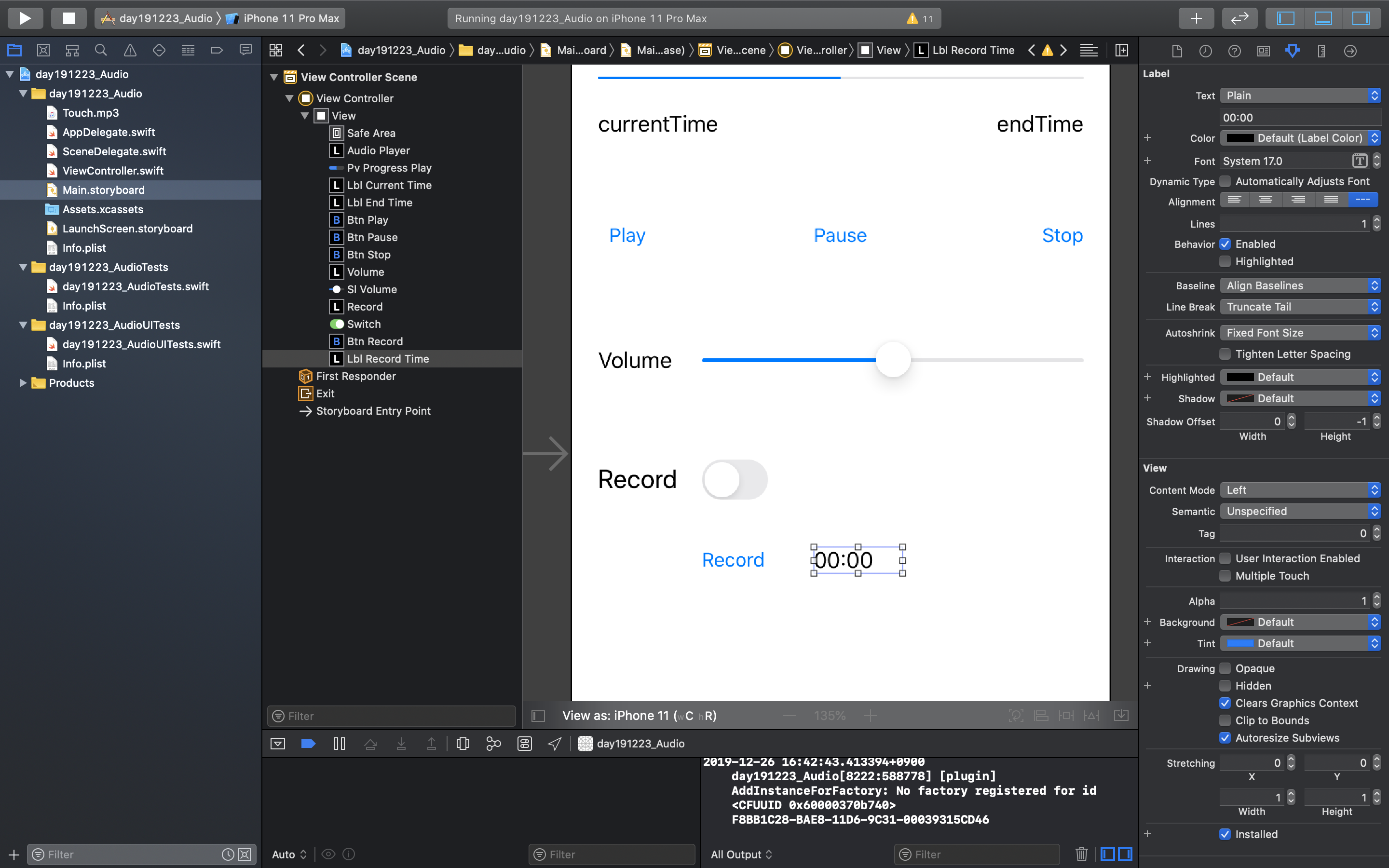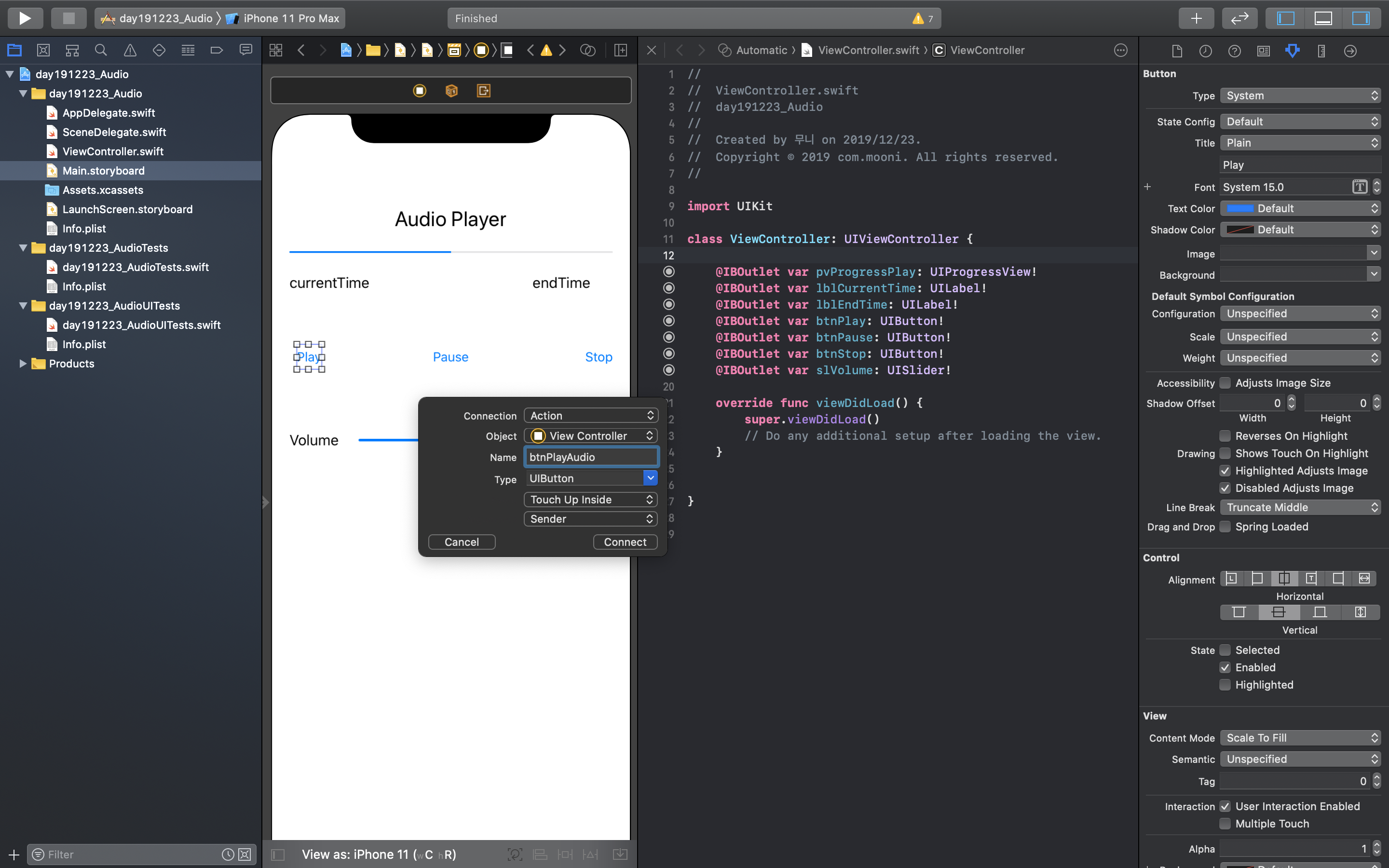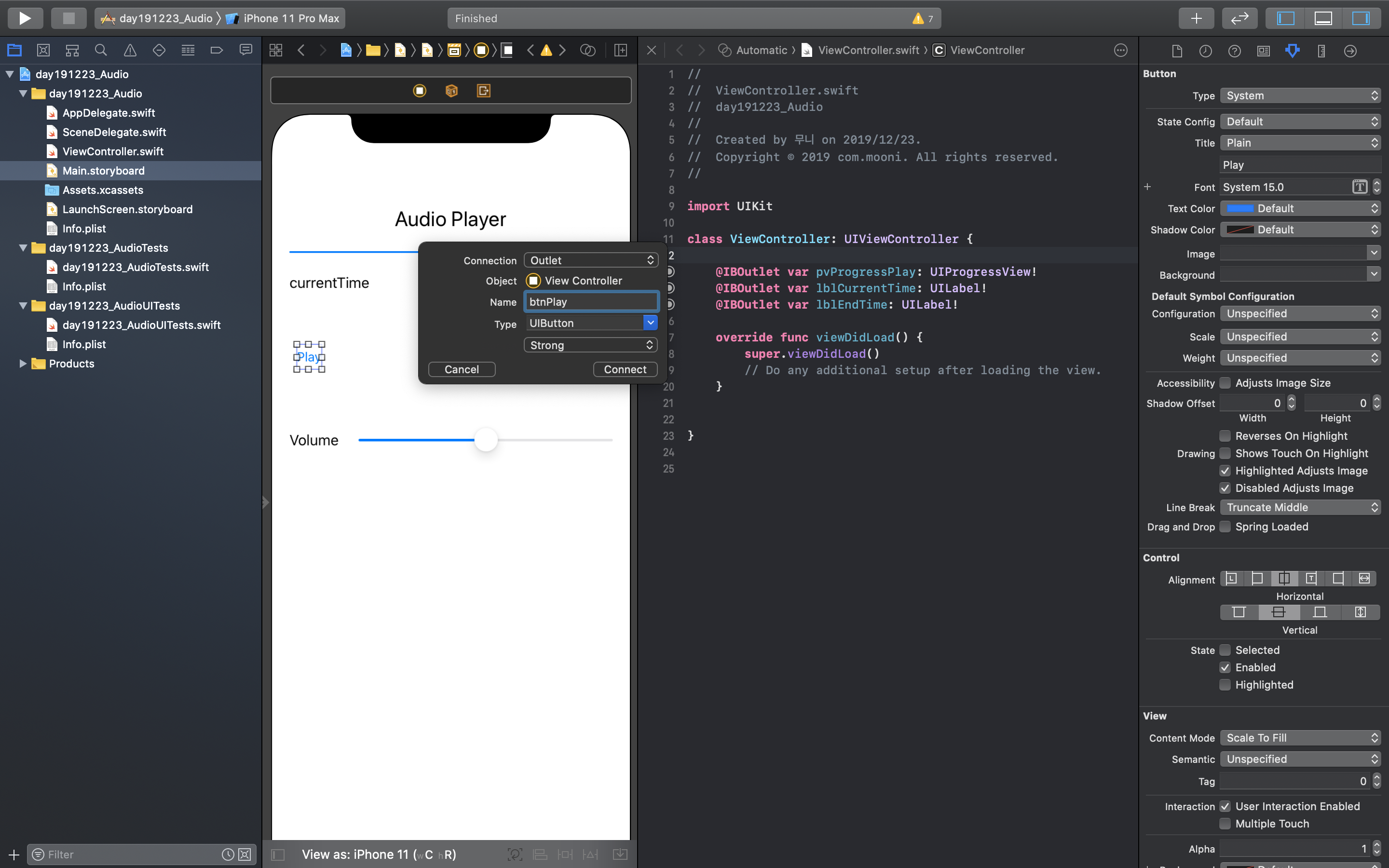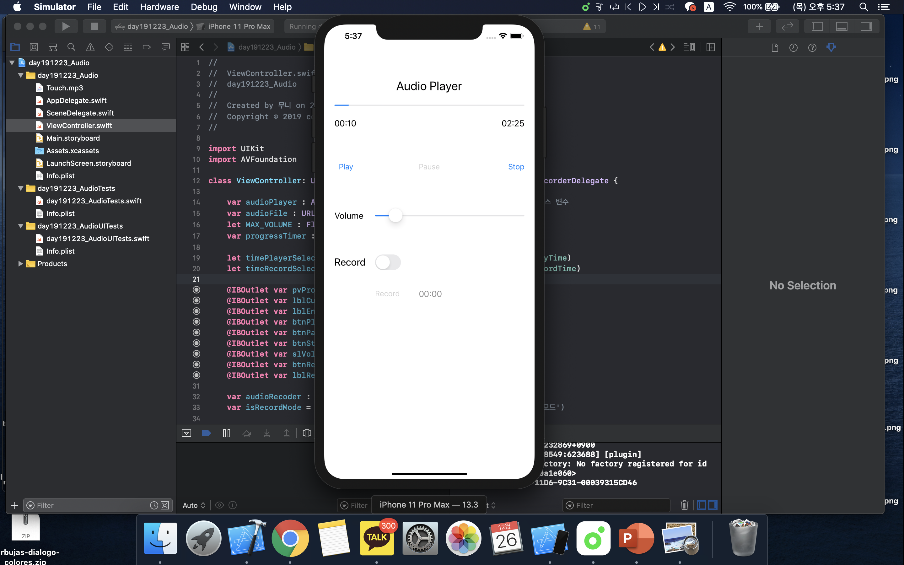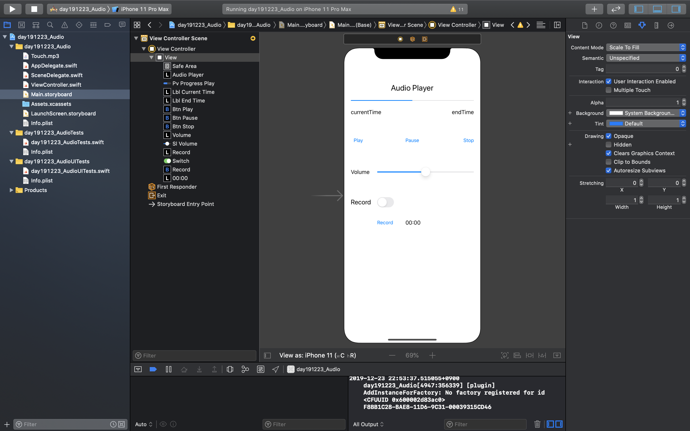 Xcode(버전11.3)를 AVAudioPlayer 음악(오디오) 재생 및 녹음 앱을 만든다:)