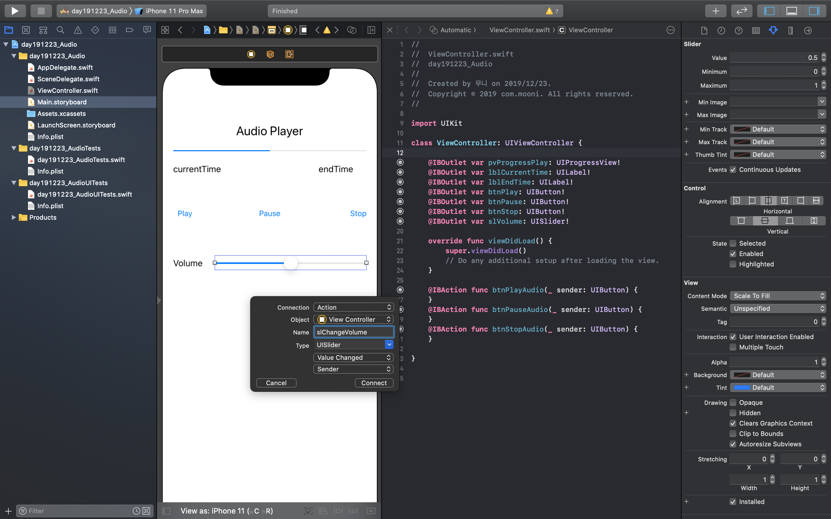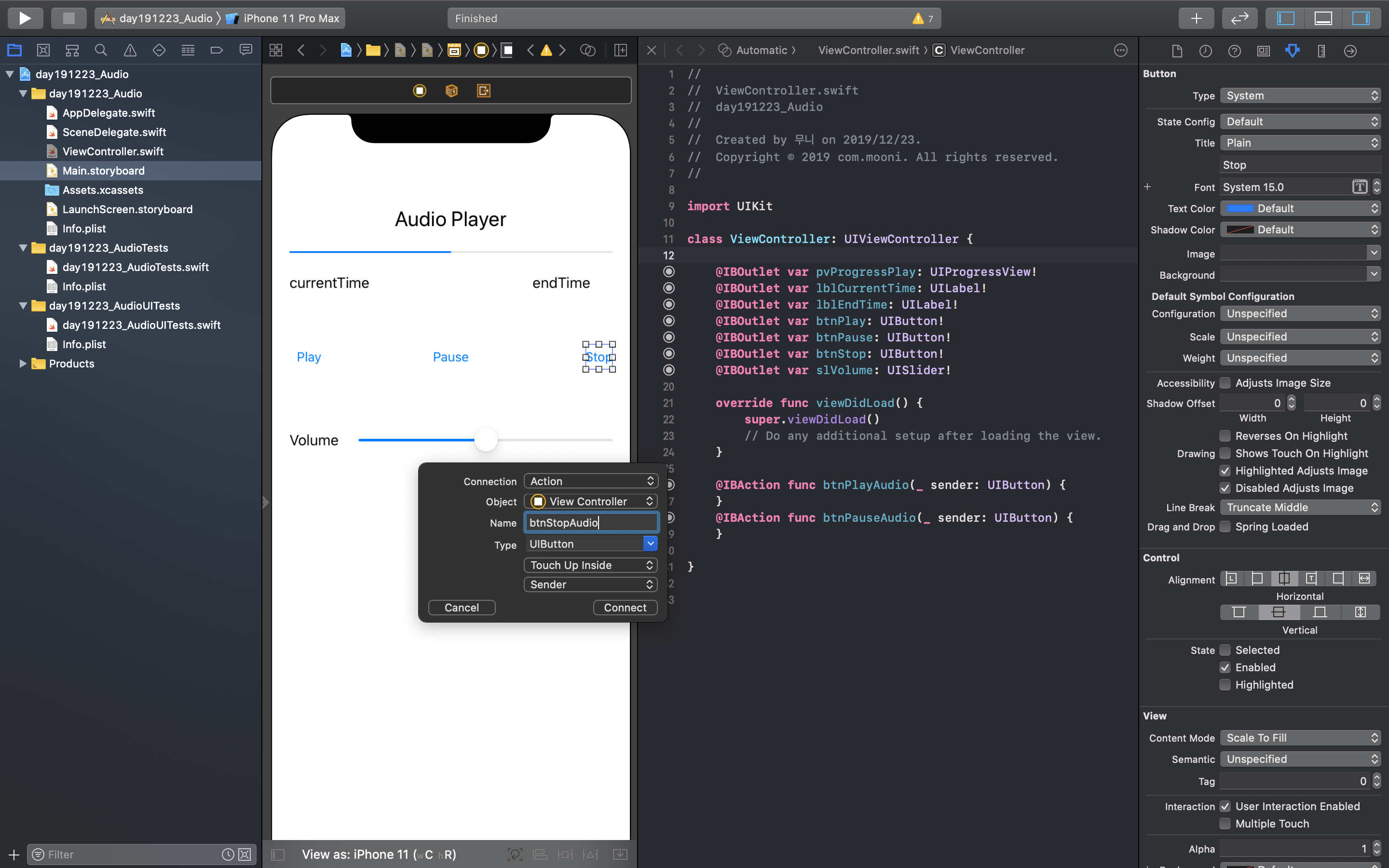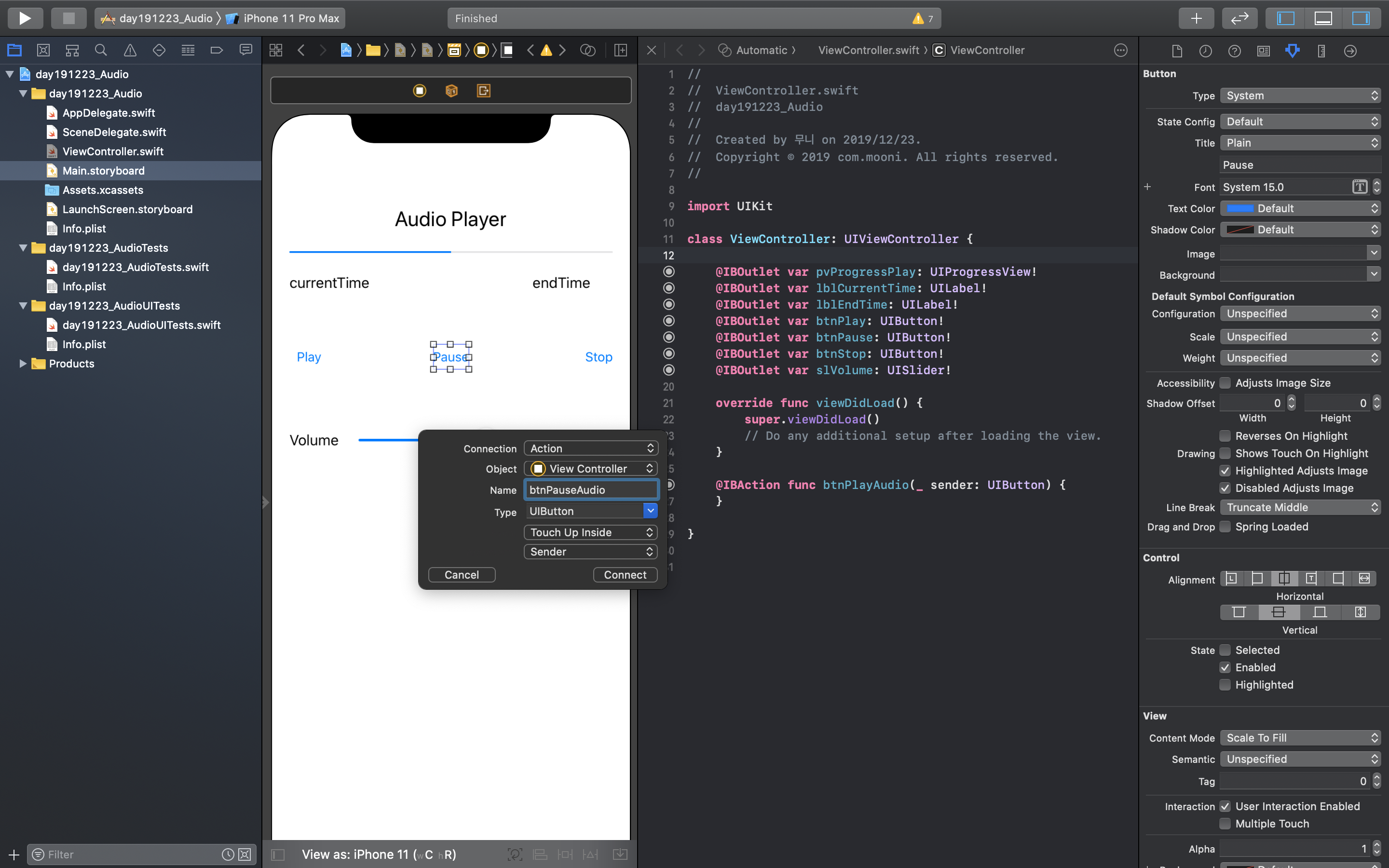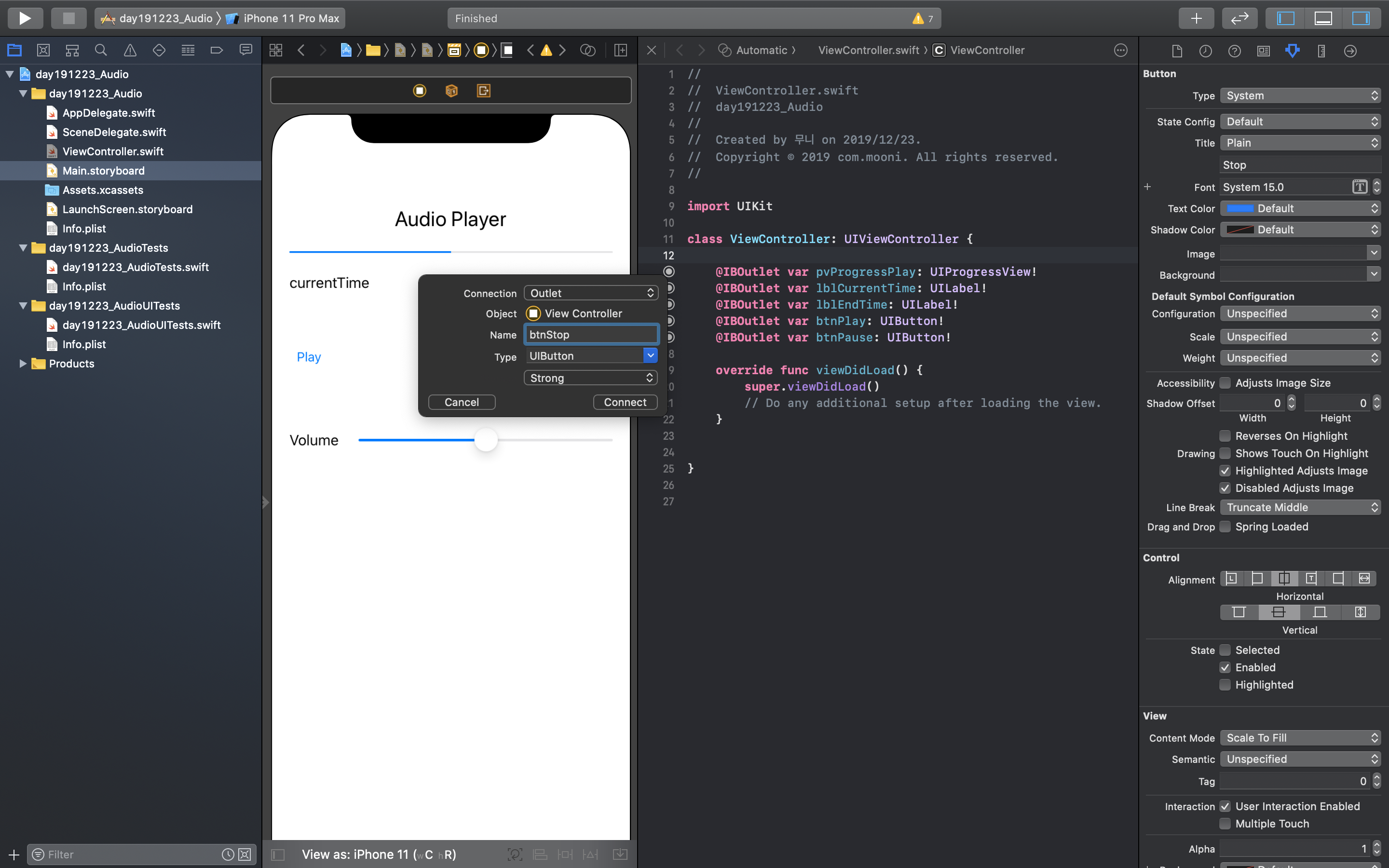 Xcode(버전11.3)를 AVAudioPlayer 음악(오디오) 재생 및 녹음 앱을 만든다:)