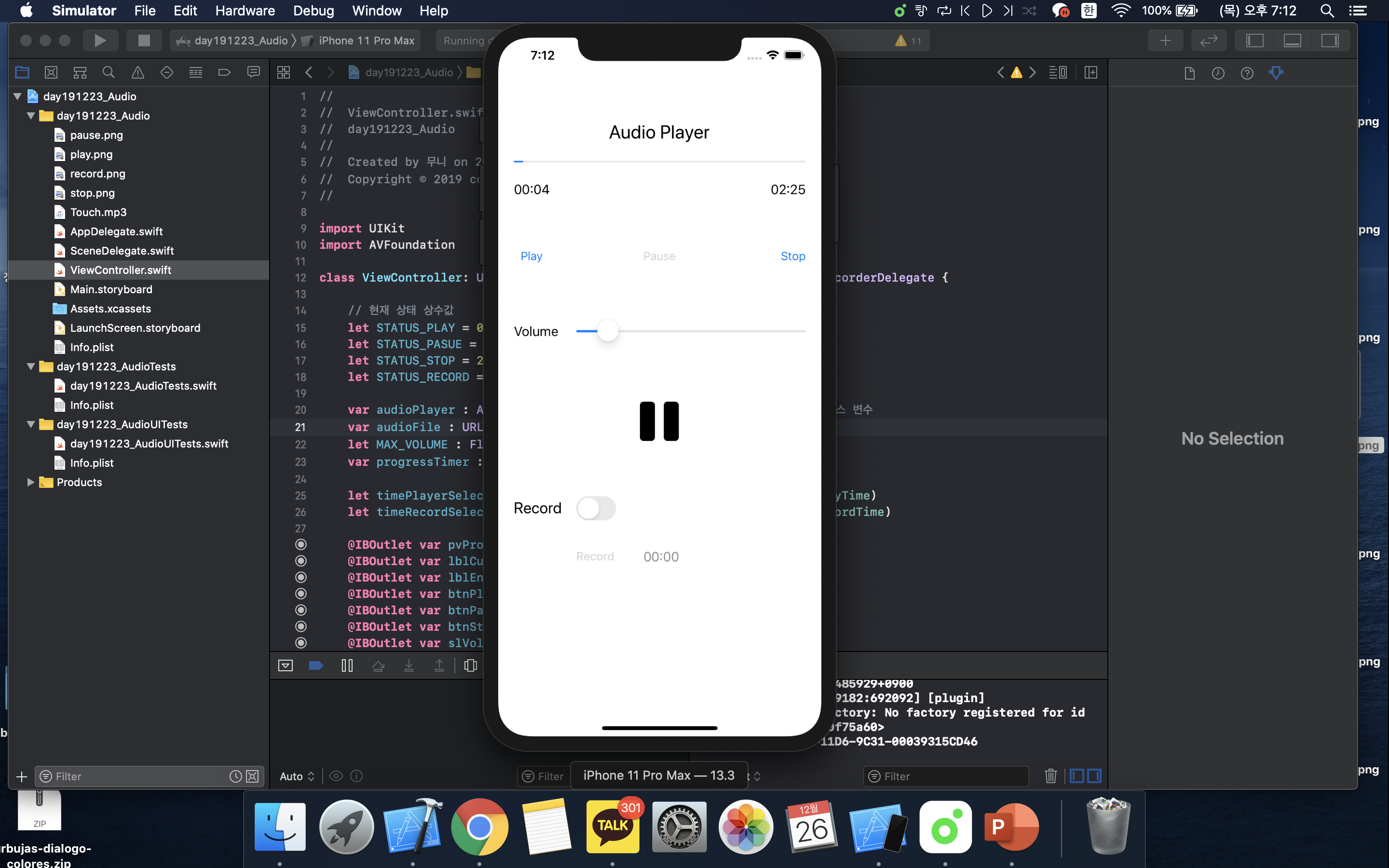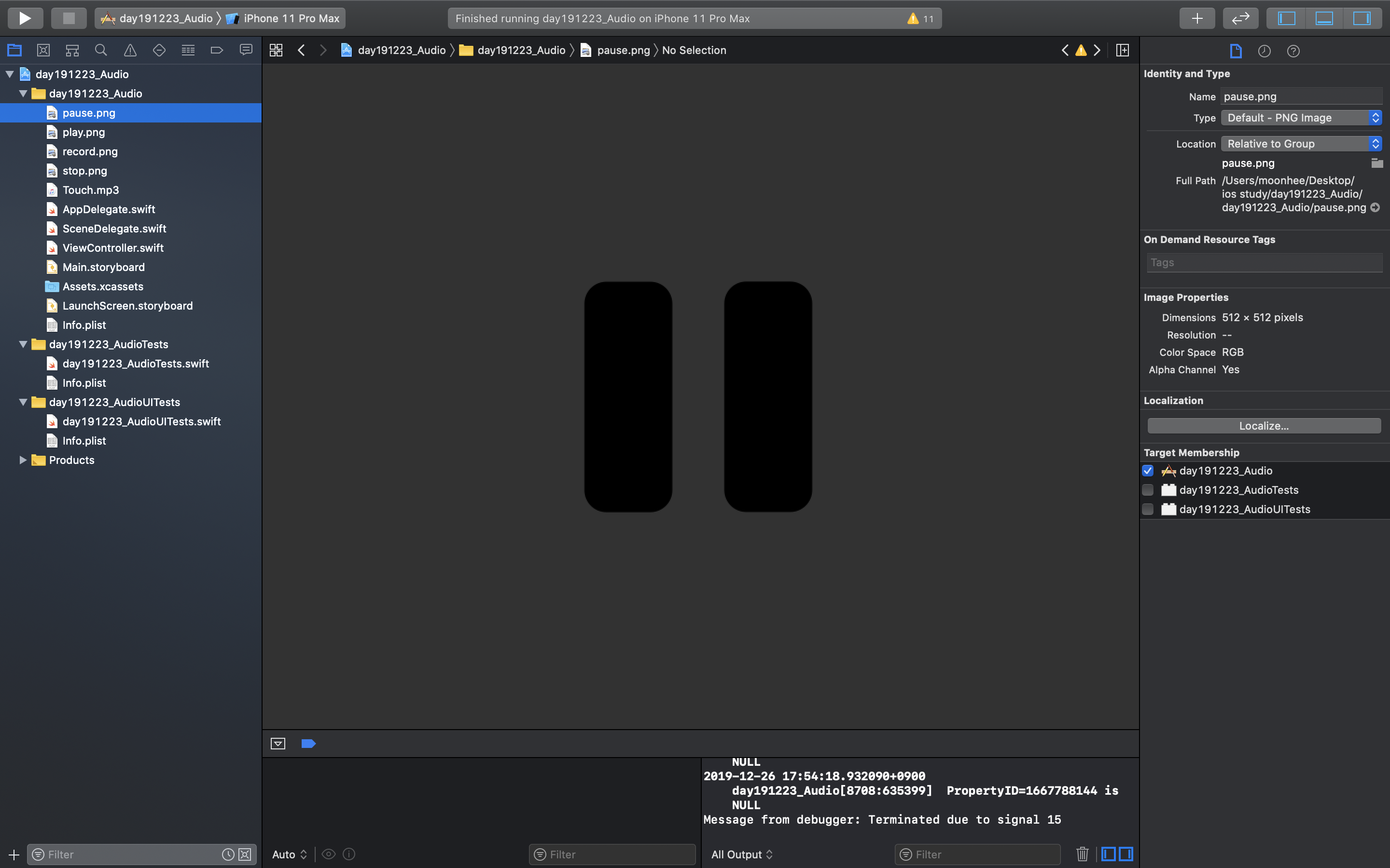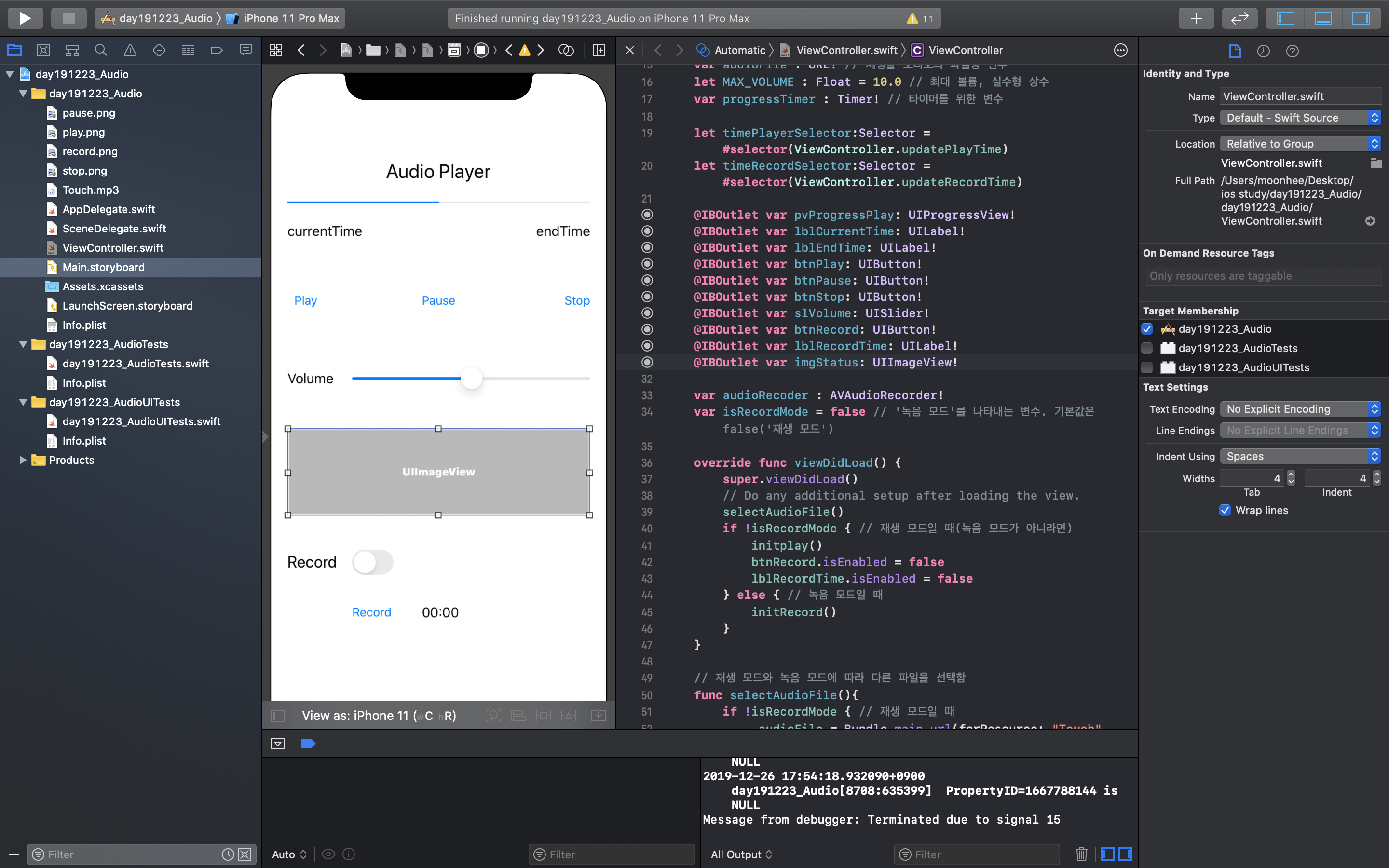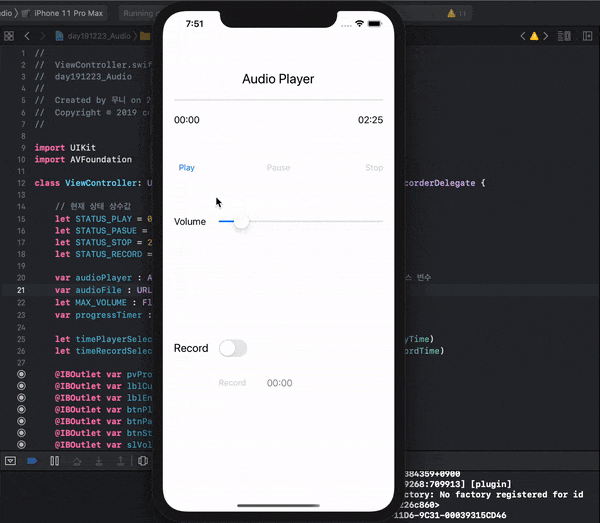 moonibot 2019. 12. 26. 20:02Xcode(버전11.3)를 AVAudioPlayer 음악(오디오) 재생 및 녹음 앱v2을 만든다:)