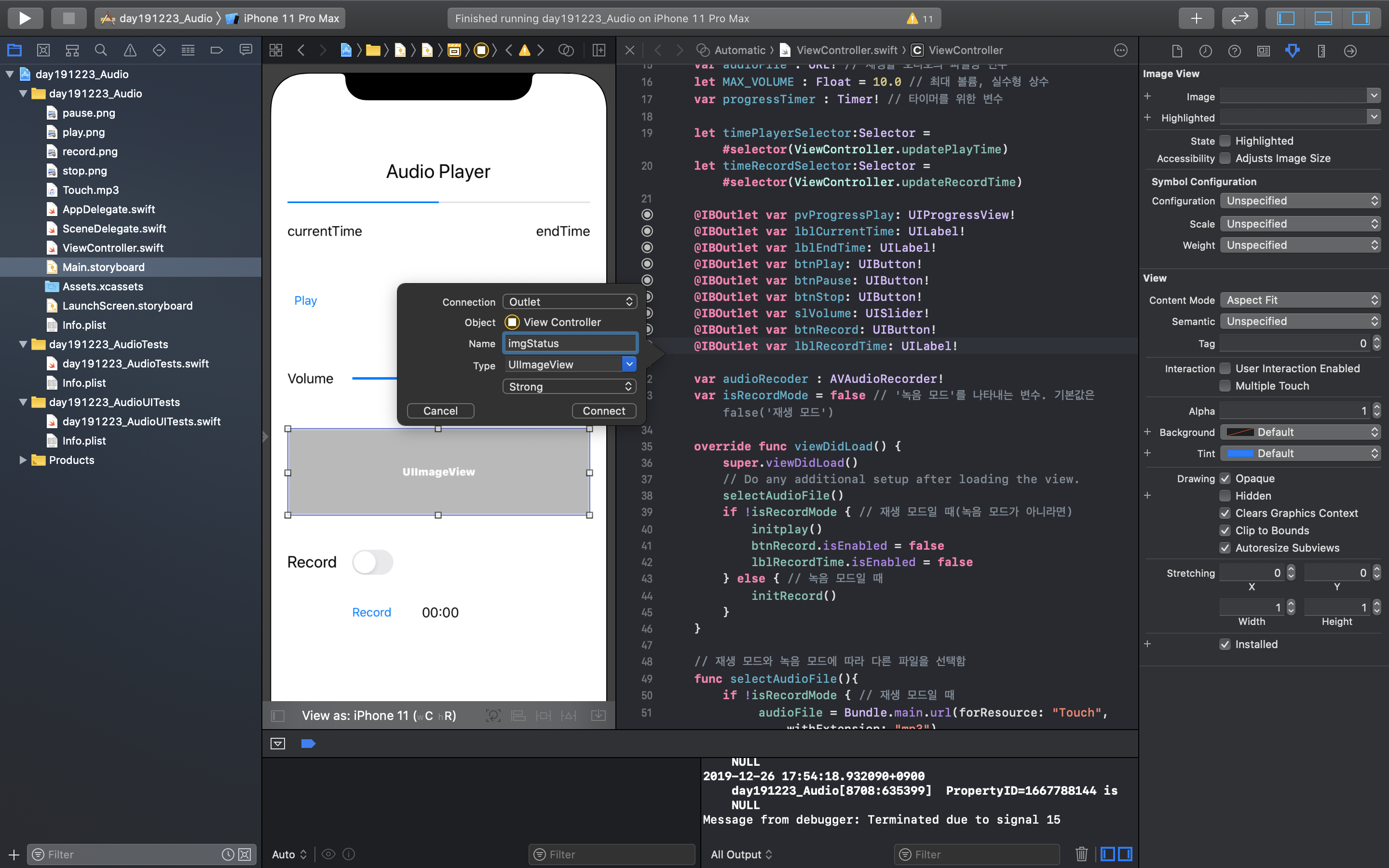 [iOS/swift] AVAudioPlayer 음악(오디오) 재생 및 녹음 앱 v2, 이미지를 보여주는 기능 추가하기