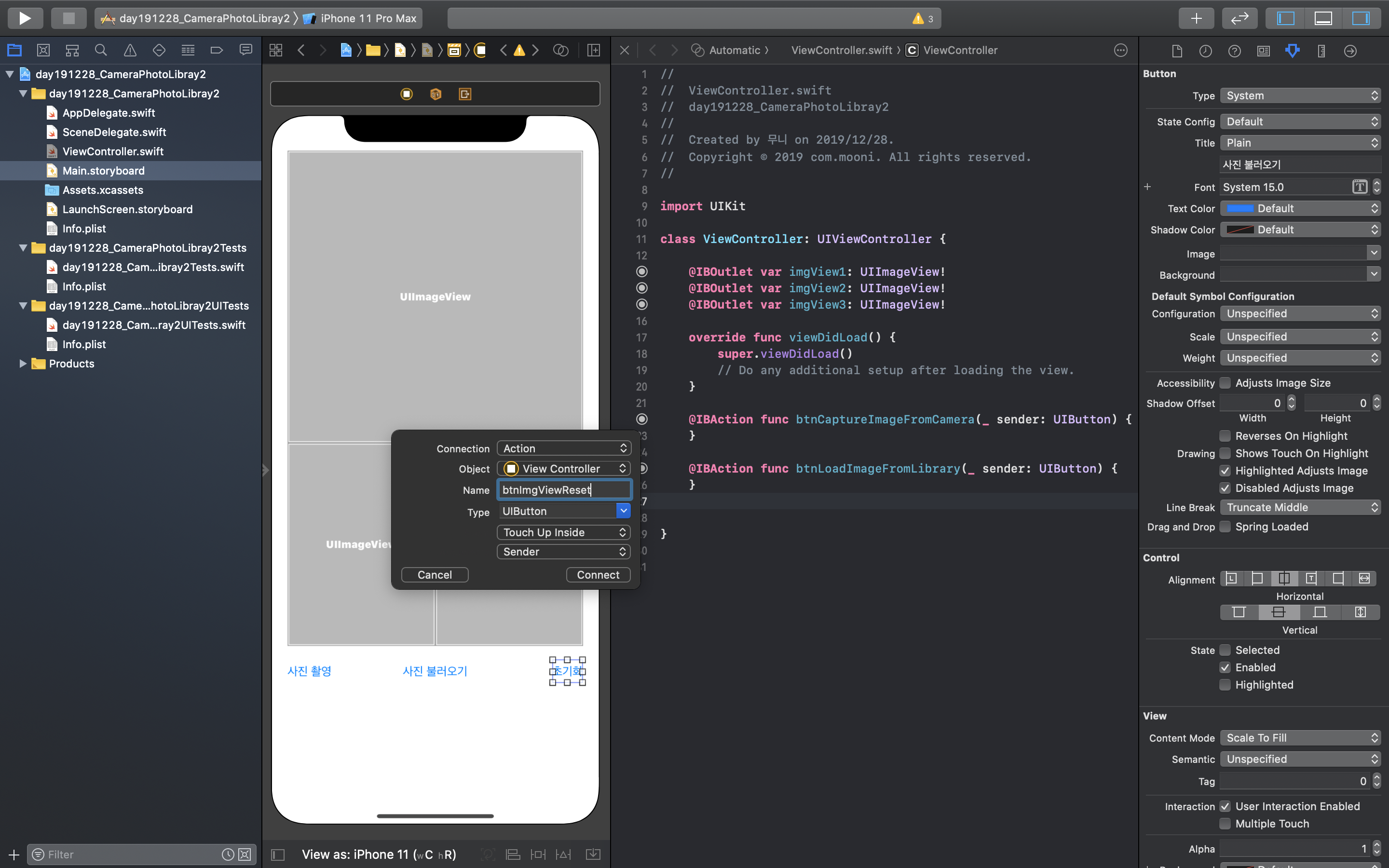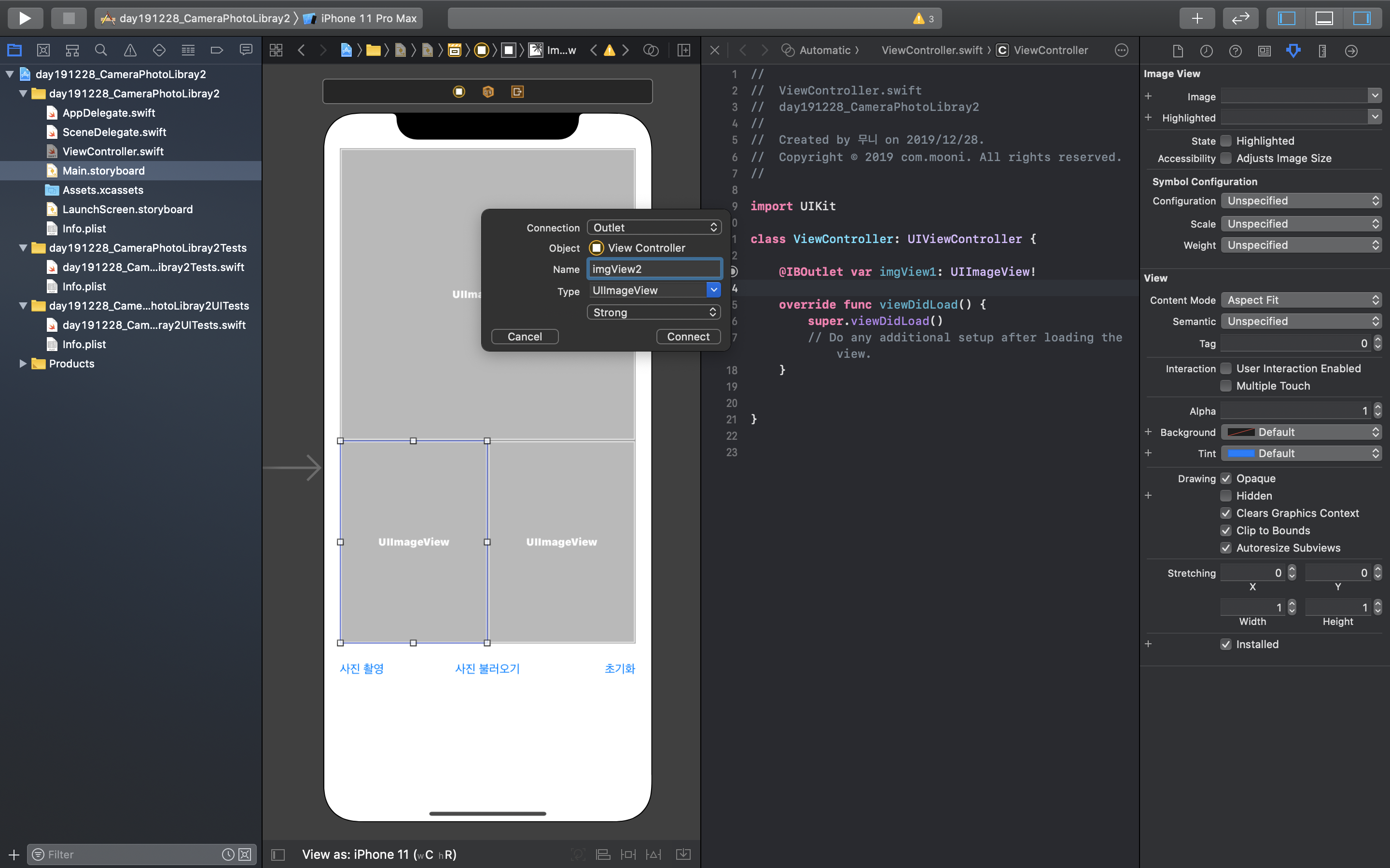 moonibot 2019. 12. 30. 21:31Xcode(버전11.3)를 UIImagePickerController 카메라와 포토 라이브러리 앱v2 만든다:D