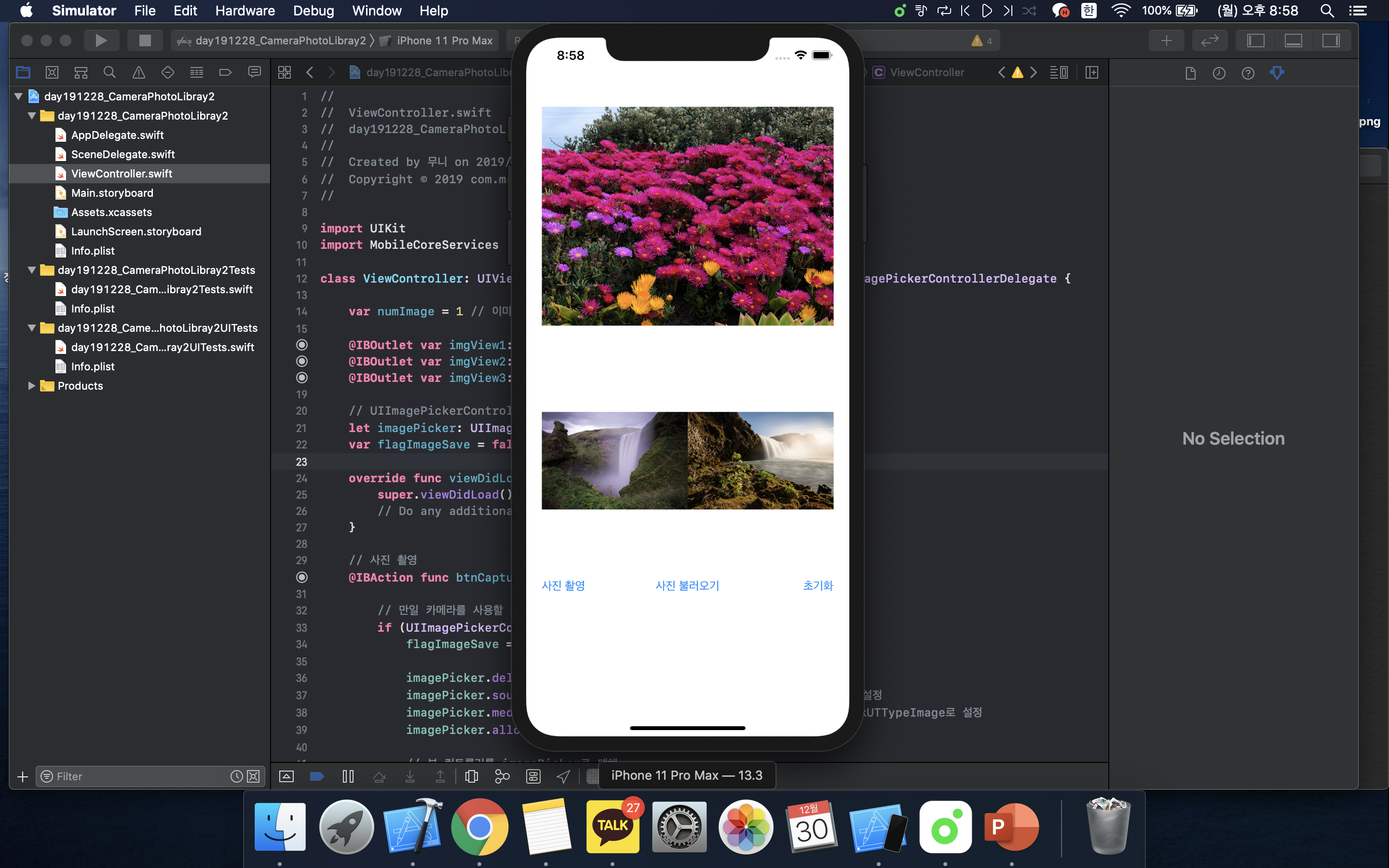 | [iOS/swift] UIImagePickerController 카메라와 포토 라이브러리(사진첩) 앱 만들기 (0) | 2019.12.27 |