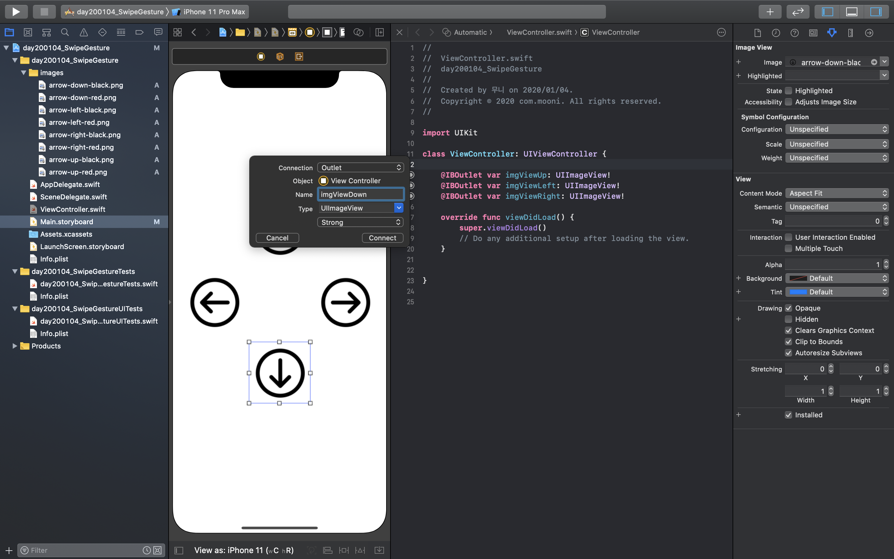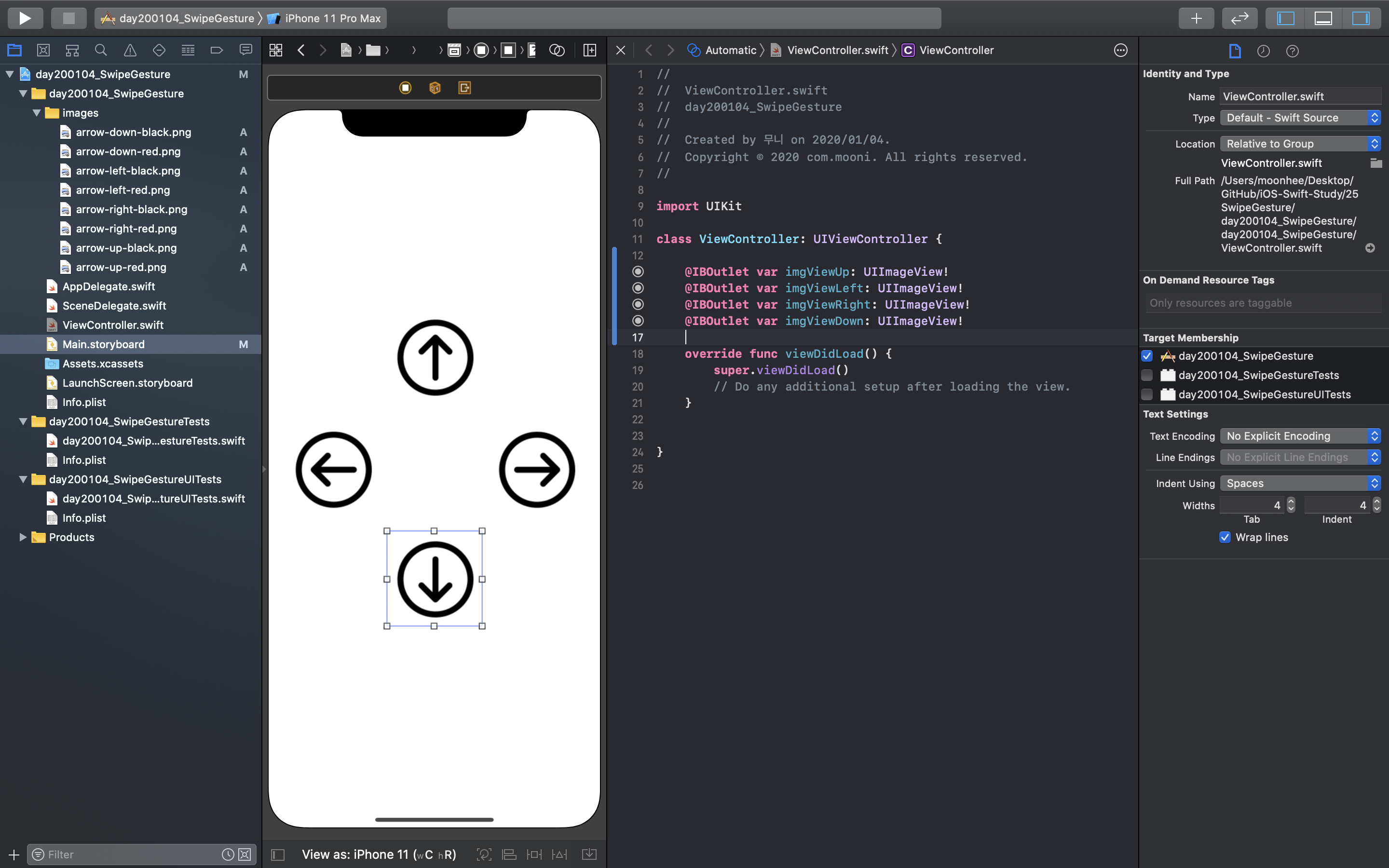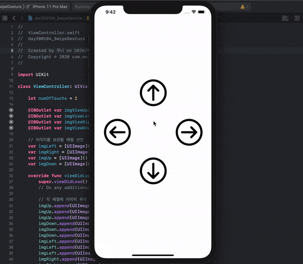 Xcode(버전11.3)를 이용하여 스와이프 제스쳐(Swipe Gesture) 앱을 만든다:D