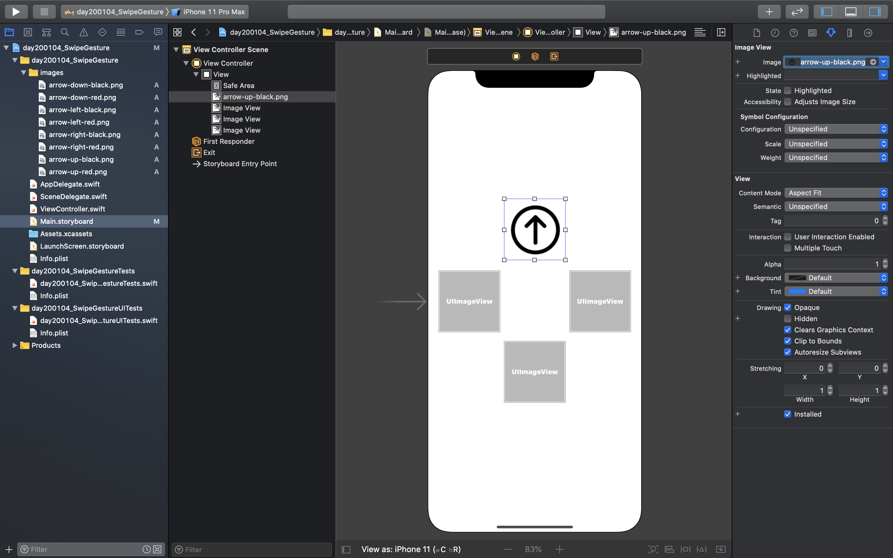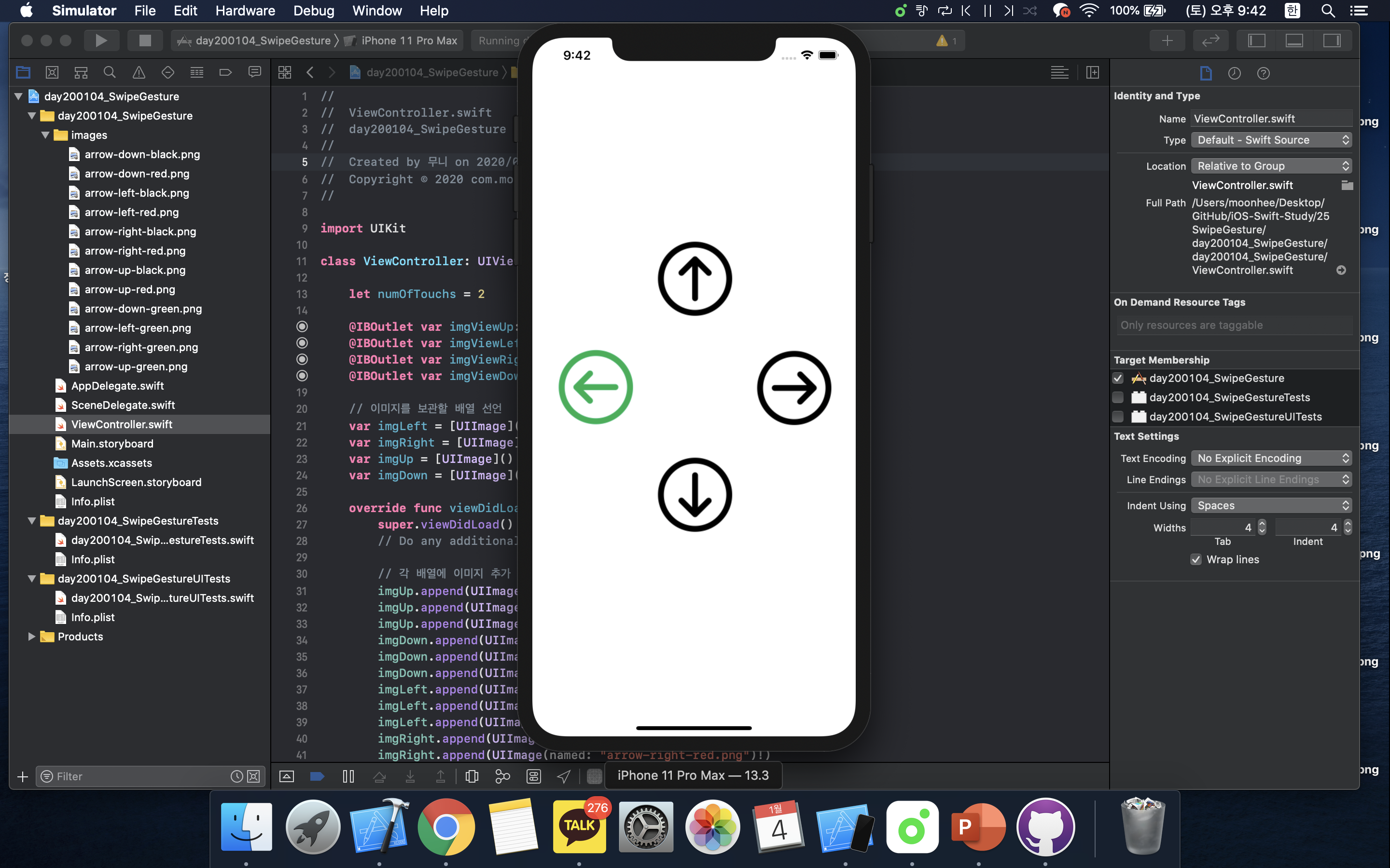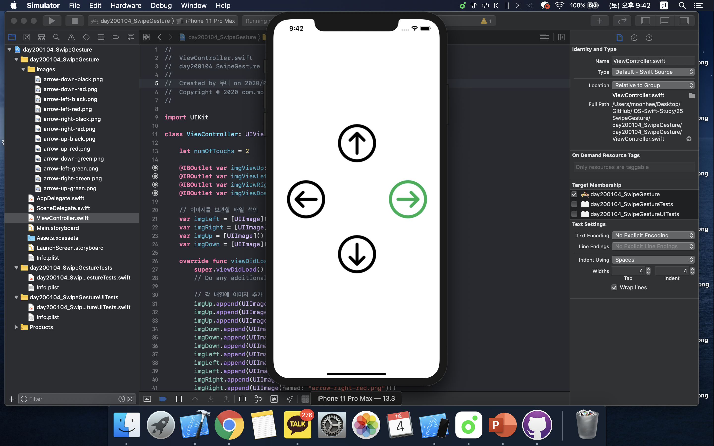 Xcode(버전11.3)를 이용하여 스와이프 제스쳐(Swipe Gesture) 앱을 만든다:D