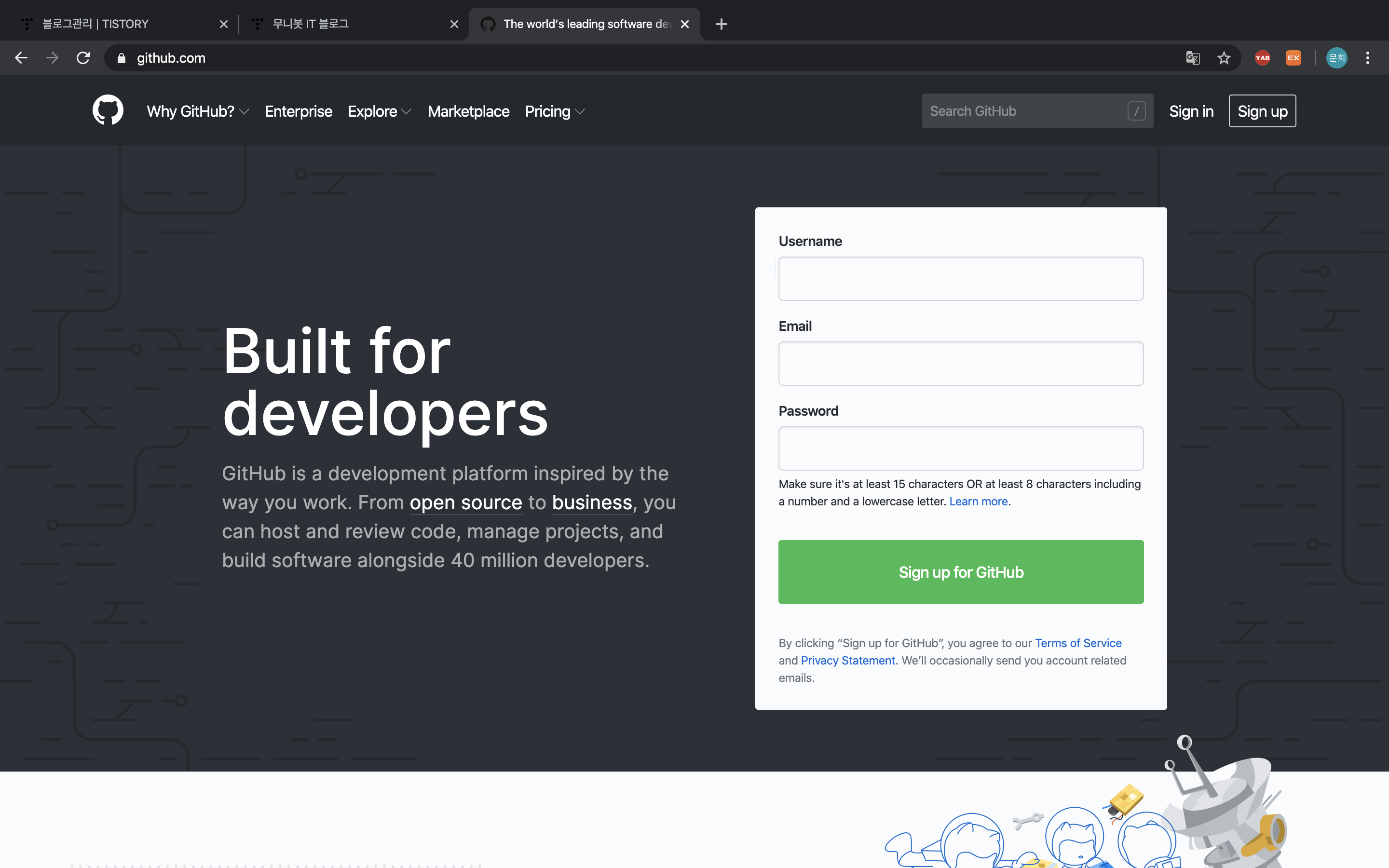 소스를 효율적으로 관리하기 위해 깃허브(GitHub)를 가입했다.