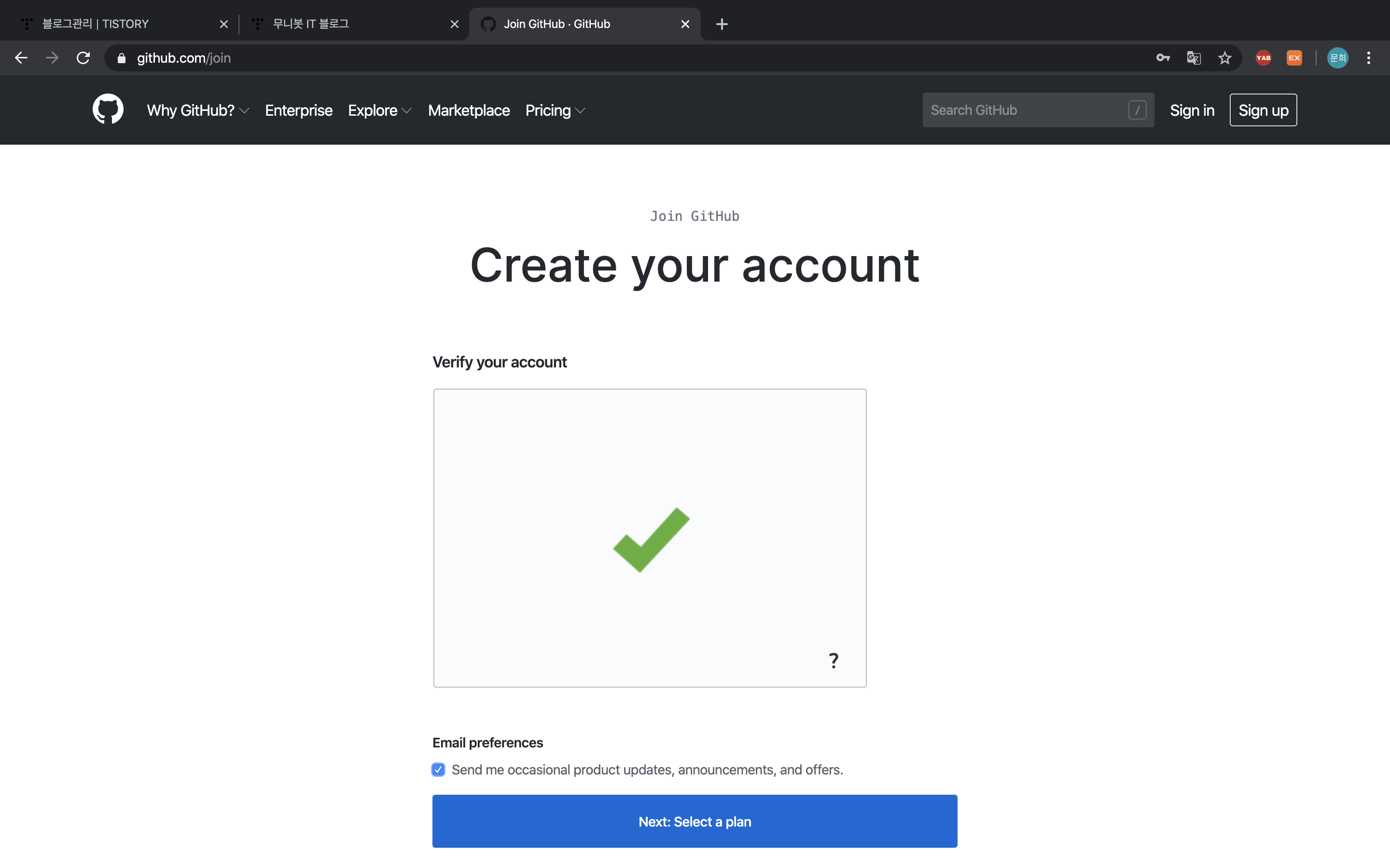확인을 완료한 뒤, Next를 클릭한다. (이메일 수신 관련은 자기 마음대로..)