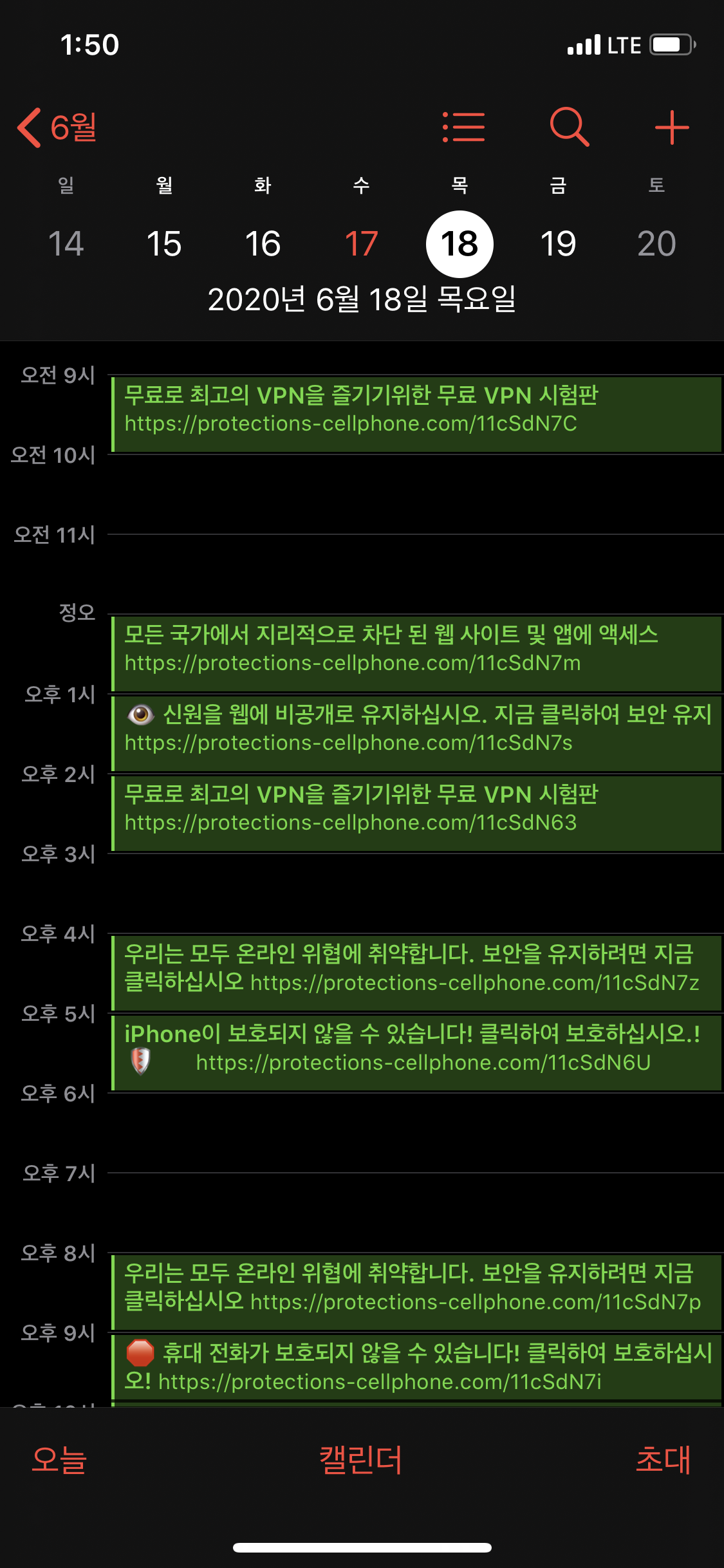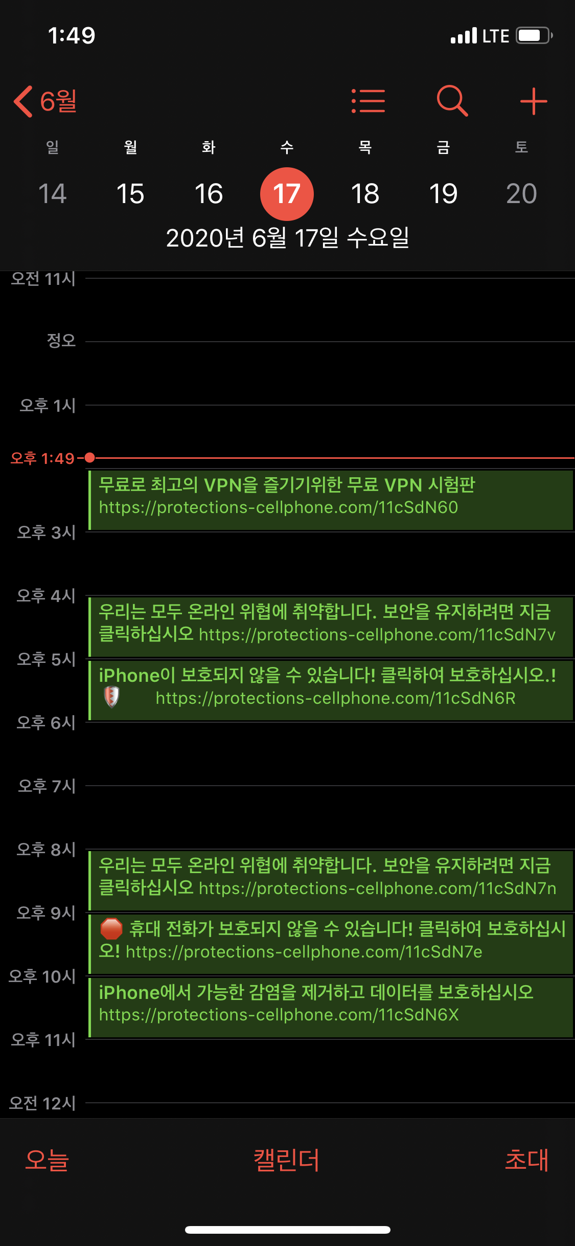 캘린더 앱에 들어가보면 원래 깨끗했던 나의 아이폰 캘린더가 되어있다:)