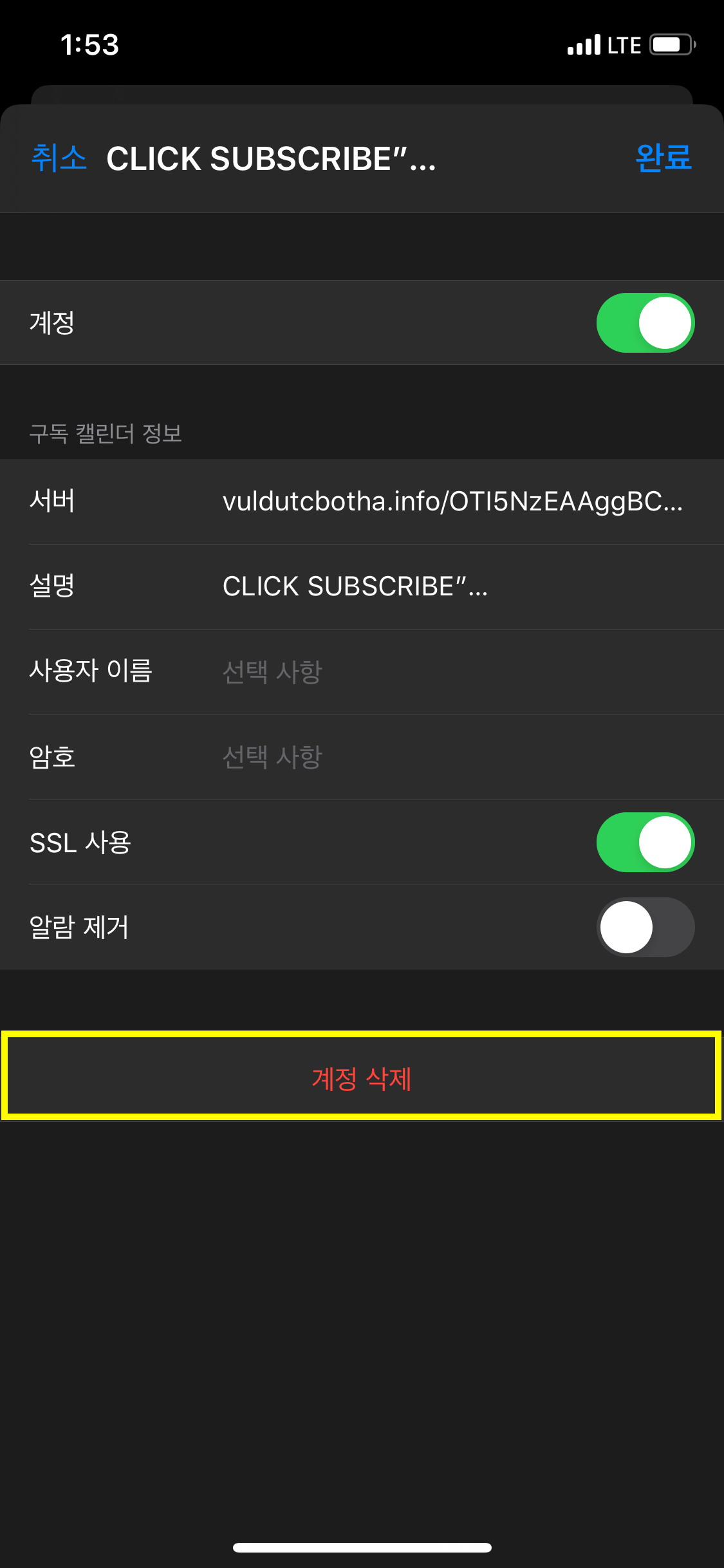 나는 이 캘린더를 구독한 적이 없기 때문에 바로 계정 삭제 한다:)