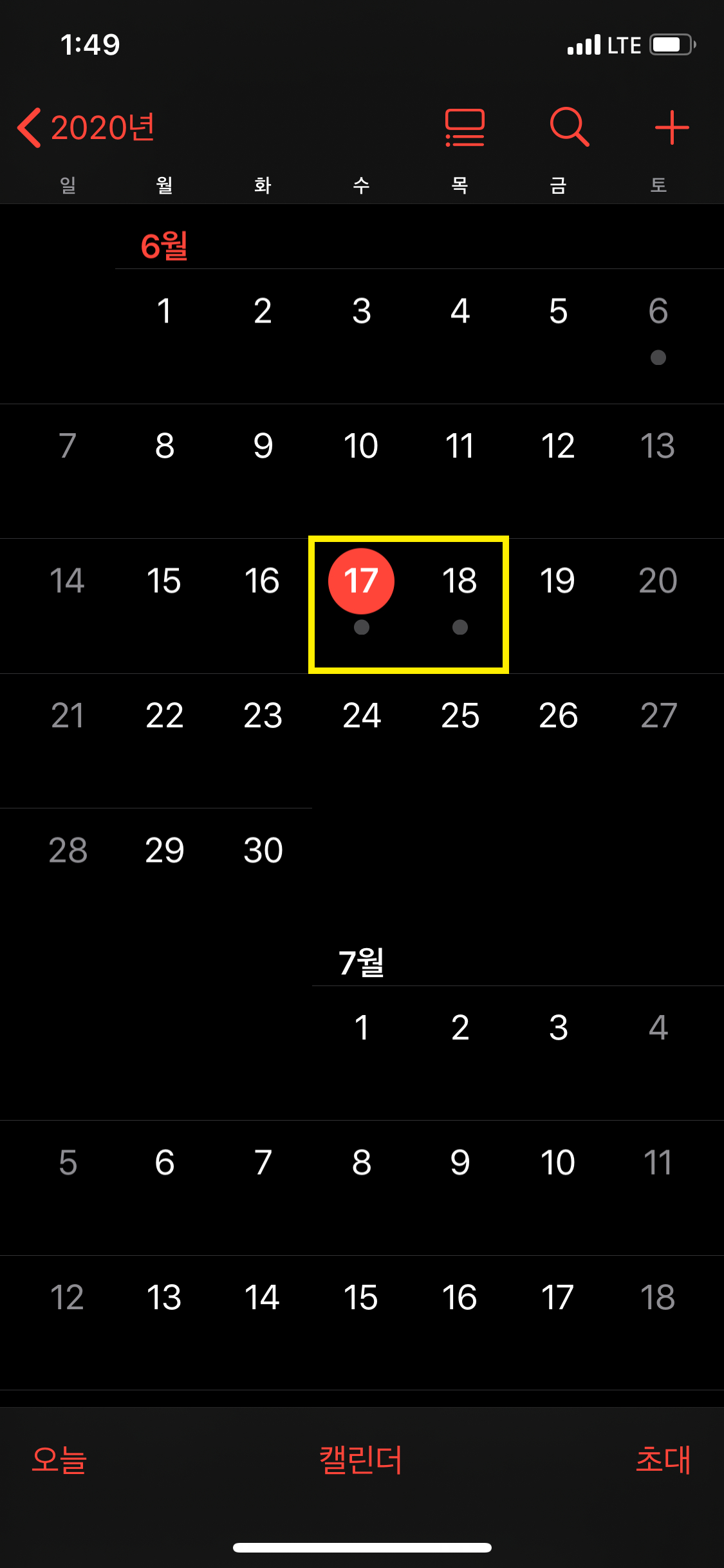 사진을 보면 17일과 18일에 무언가 등록이 되어있다고 뜨는데,